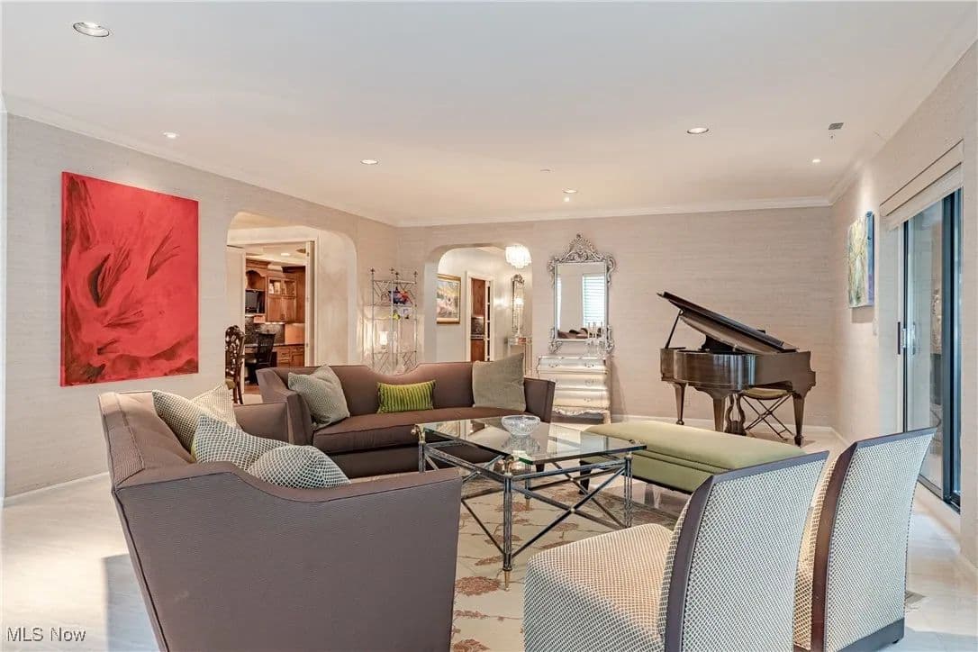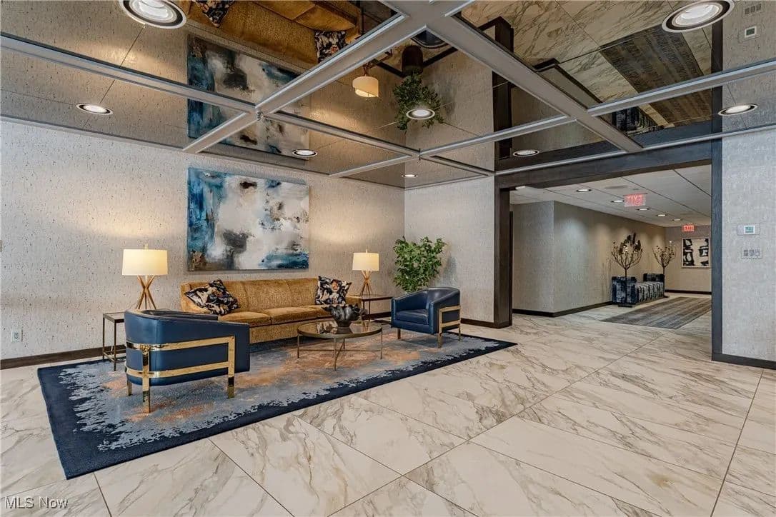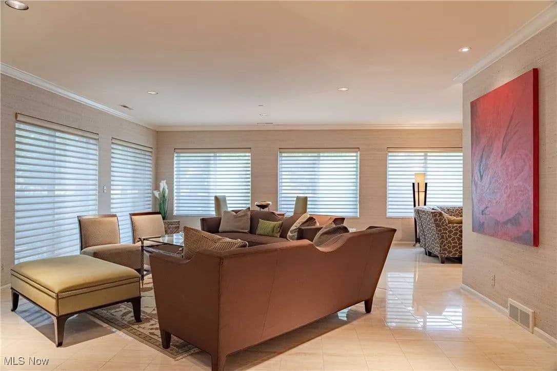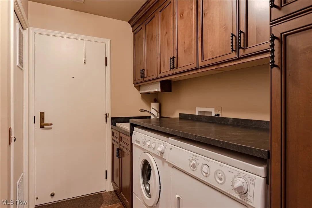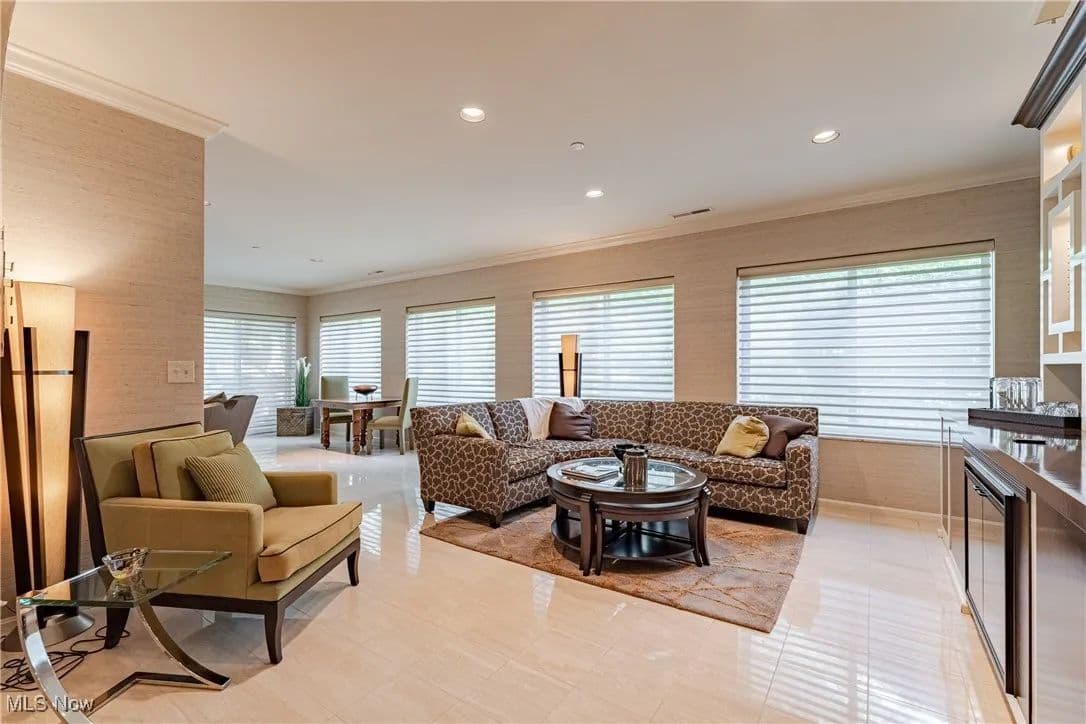 Nestled in one of Cleveland's premier full-service buildings, this exquisite ground-level unit boasts 2 bedrooms, 4 bathrooms, and over 3,100 square feet of luxurious living space. This impressive unit is more expansive than most within the building and features high-end finishes throughout. Upon entering, you are welcomed by a gracious foyer with elegant marble flooring that seamlessly transitions into the spacious living room and formal dining area. The living room is adorned with large windows, built-in shelving designed as a bar, an electric fireplace, and sliding glass doors that lead to a solarium / sunroom, which also grants access to your own private outdoor patio—a rare feature in the building. The living room flows effortlessly into the formal dining room, highlighted by a stunning chandelier that adds a touch of opulence. Venture into the breathtaking kitchen, a space for cooking enthusiasts, complete with stainless steel appliances, a tray ceiling, and granite countertops. Adjacent to the kitchen is a convenient laundry room. Just off the foyer, you'll find a cozy sitting room with beautiful built-in shelving, perfect for entertaining or unwinding. The primary bedroom is generously sized, featuring a spacious walk-in closet, and a recently renovated ensuite full bathroom equipped with a heated towel rack. Completing this premium ground-level suite is a second bedroom and two additional full bathrooms and one half bathroom for added convenience. The unit comes with two assigned parking spaces conveniently located near the parking garage entrance. Point East is renowned for its exceptional service and amenities, including a full-time manager, guard-gated entrance, party room, exercise room, tennis courts, a patio with grills, and an outdoor swimming pool. Prepare to indulge in a life of luxury in this truly unique residence!