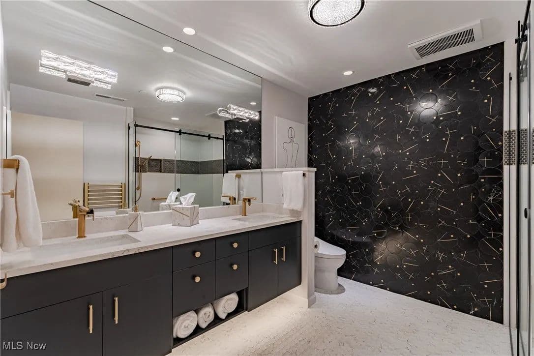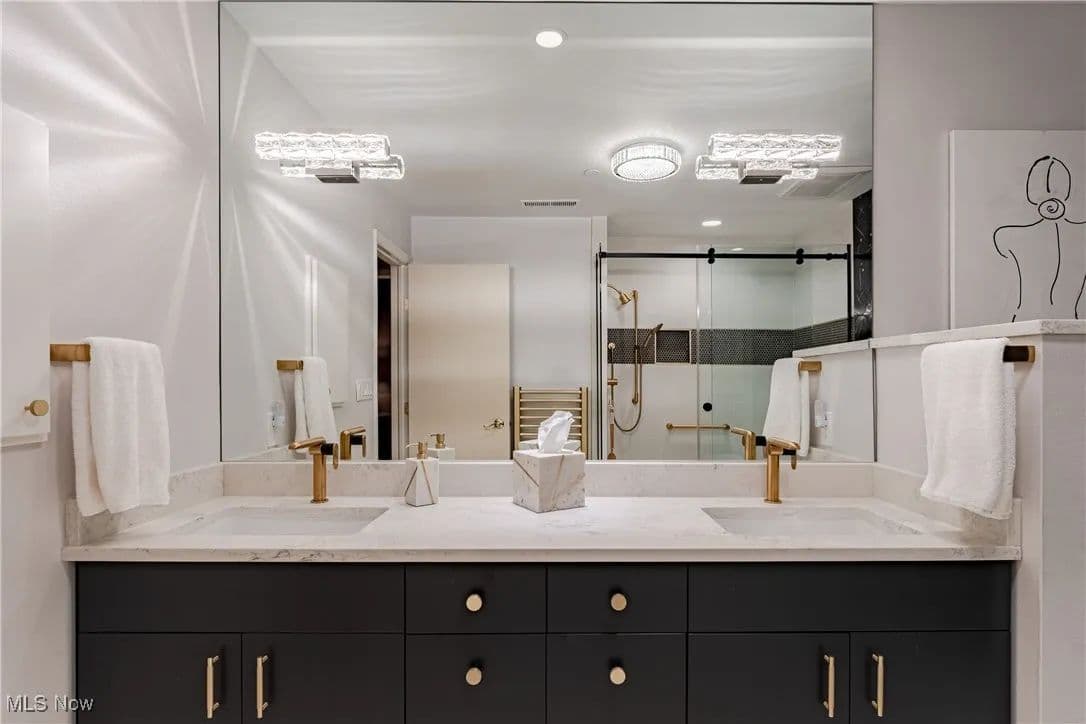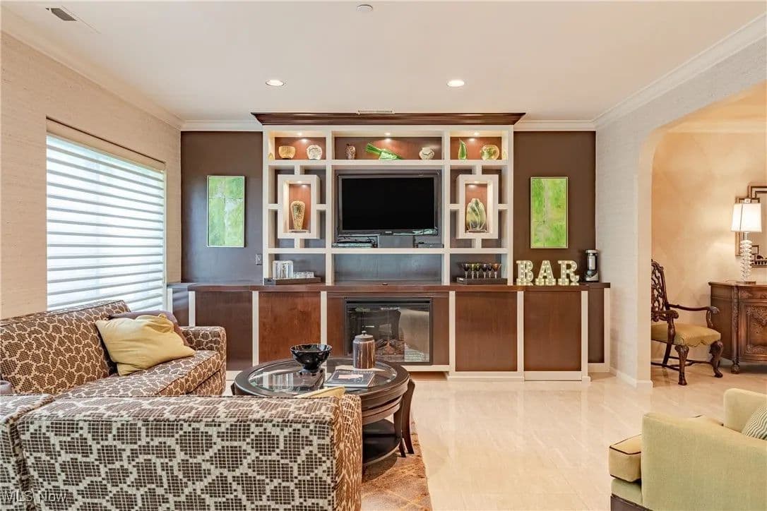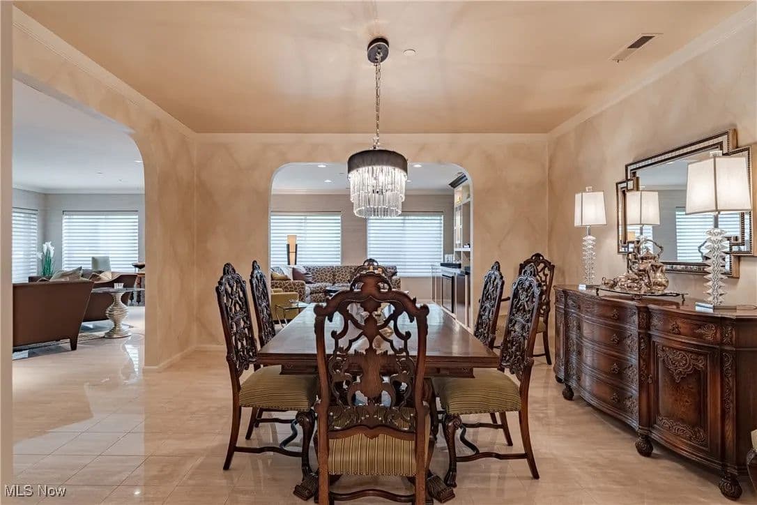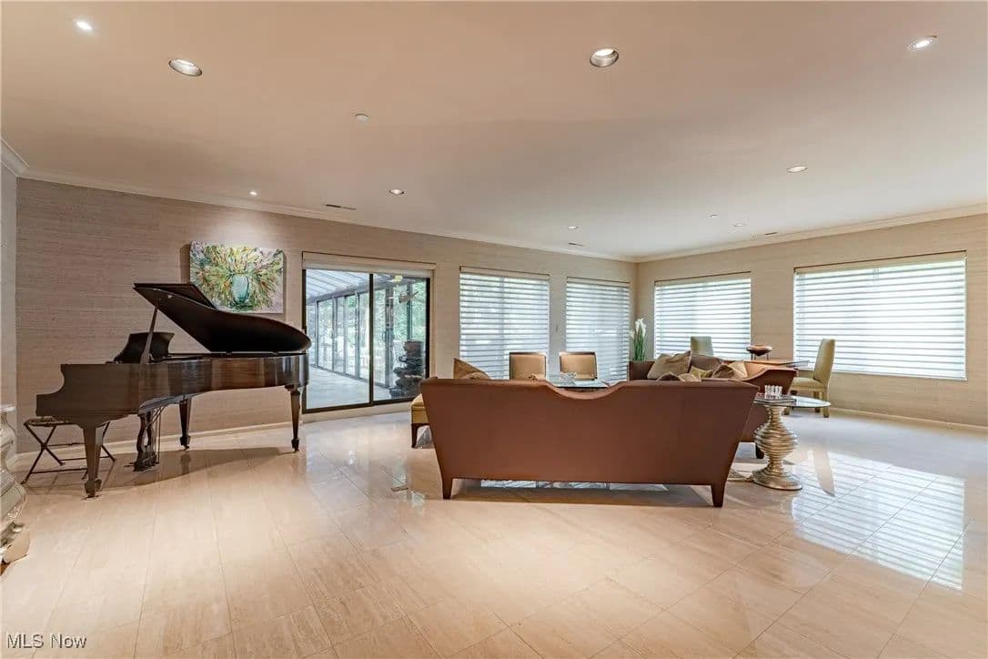 Nestled in one of Cleveland's premier full-service buildings, this exquisite ground-level unit boasts 2 bedrooms, 4 bathrooms, and over 3,100 square feet of luxurious living space. This impressive unit is more expansive than most within the building and features high-end finishes throughout. Upon entering, you are welcomed by a gracious foyer with elegant marble flooring that seamlessly transitions into the spacious living room and formal dining area. The living room is adorned with large windows, built-in shelving designed as a bar, an electric fireplace, and sliding glass doors that lead to a solarium / sunroom, which also grants access to your own private outdoor patio—a rare feature in the building. The living room flows effortlessly into the formal dining room, highlighted by a stunning chandelier that adds a touch of opulence. Venture into the breathtaking kitchen, a space for cooking enthusiasts, complete with stainless steel appliances, a tray ceiling, and granite countertops. Adjacent to the kitchen is a convenient laundry room. Just off the foyer, you'll find a cozy sitting room with beautiful built-in shelving, perfect for entertaining or unwinding. The primary bedroom is generously sized, featuring a spacious walk-in closet, and a recently renovated ensuite full bathroom equipped with a heated towel rack. Completing this premium ground-level suite is a second bedroom and two additional full bathrooms and one half bathroom for added convenience. The unit comes with two assigned parking spaces conveniently located near the parking garage entrance. Point East is renowned for its exceptional service and amenities, including a full-time manager, guard-gated entrance, party room, exercise room, tennis courts, a patio with grills, and an outdoor swimming pool. Prepare to indulge in a life of luxury in this truly unique residence!