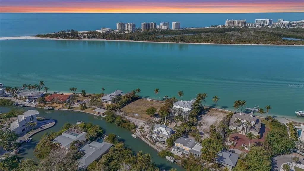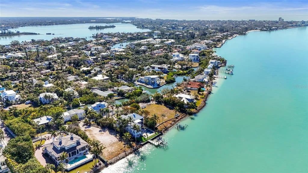 Gorgeous waterfront property offering sweeping views from Big Pass to Bayou Louise. Rarely available, one of only 10 properties with water access on the east and west, sitting on the coveted north end of Siesta Key, this exceptional parcel features 175 feet of water frontage and spans over three quarters of an acre. A property of this caliber is a rarity-don't miss the chance to build your legacy on Sarasota's most exclusive shoreline. With unobstructed access to both Sarasota Bay and the Gulf, this is a premier setting for boating enthusiasts seeking effortless days of fishing, cruising, or island hopping. The panoramic water views from this prestigious North Siesta Key location are truly remarkable, capturing the natural beauty of the coastline from sunrise to sunset. Large waterfront parcels of this scale and frontage are increasingly rare, offering both privacy and the opportunity to create a legacy estate in one of Sarasota's most desirable coastal enclaves. Whether you envision designing a custom waterfront retreat tailored to your lifestyle or securing a prime land investment for the future, this property presents exceptional flexibility. The lot is available as vacant land (MLS #A4682294) or as a residential offering (MLS #A4682295) featuring a proposed custom home designed by award winning Konstant Architecture (plans complete and available). Buyers may purchase the land independently or move forward with a luxury designed new construction project with plans and permitting already in place. Located just moments from the beach, waterfront dining, and Sarasota's vibrant cultural and entertainment scene, this property delivers an extraordinary opportunity to create your own Siesta Key masterpiece.