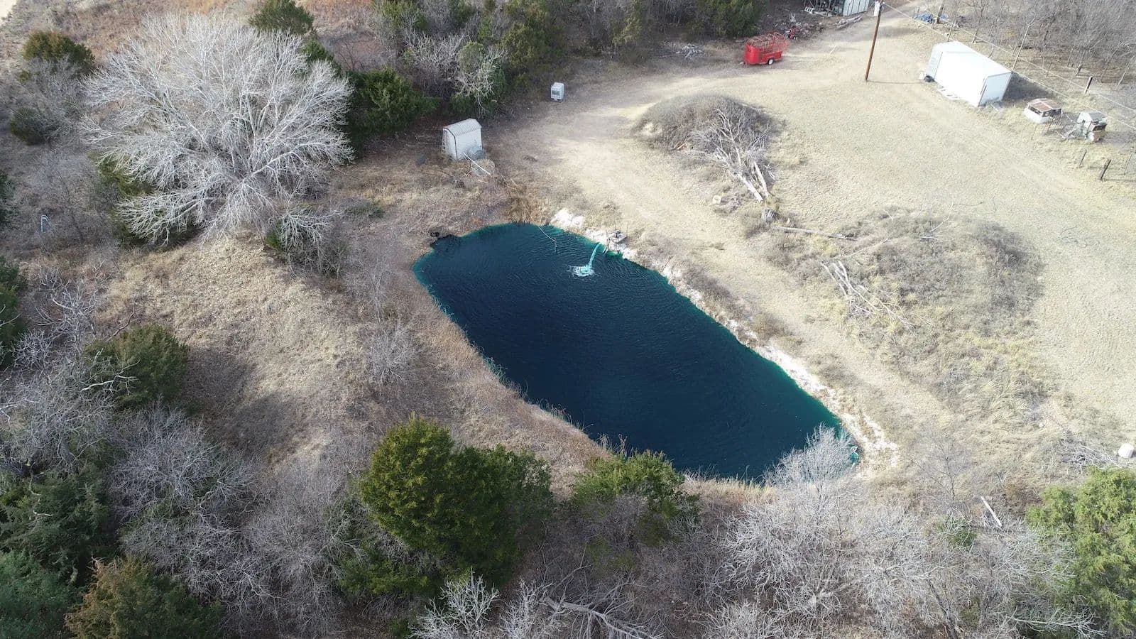 WATER: The water well is a free-flowing Artesian well with a traditional submersible pump and pressure tank system to provide water to the house. Excess water from the Artesian well flows into a fish pond stocked with bluegill and catfish.