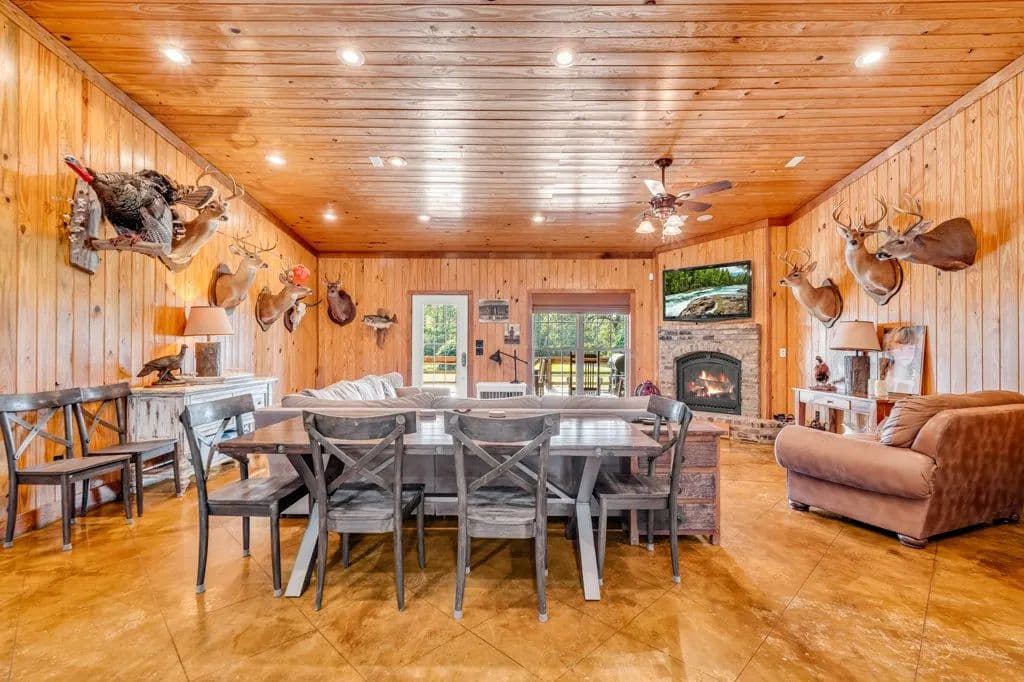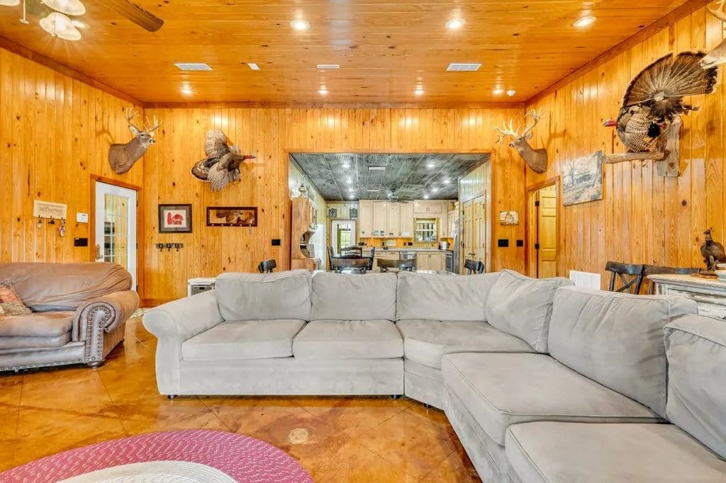 At the heart of the property is a beautifully finished, fully furnished 5-bedroom, 3-bath main home, offering comfort, style, and functionality. Designed with both family living and guest hosting in mind, this spacious residence features a 4-car garage and an additional 2-car storage area, ideal for housing all your hunting gear, tools, and recreational equipment. The home also produces approximately $25,000/year in VRBO rental income, making it not only a luxurious retreat but also a smart investment. This is truly a home where you can live, play, and earn—all in one place.