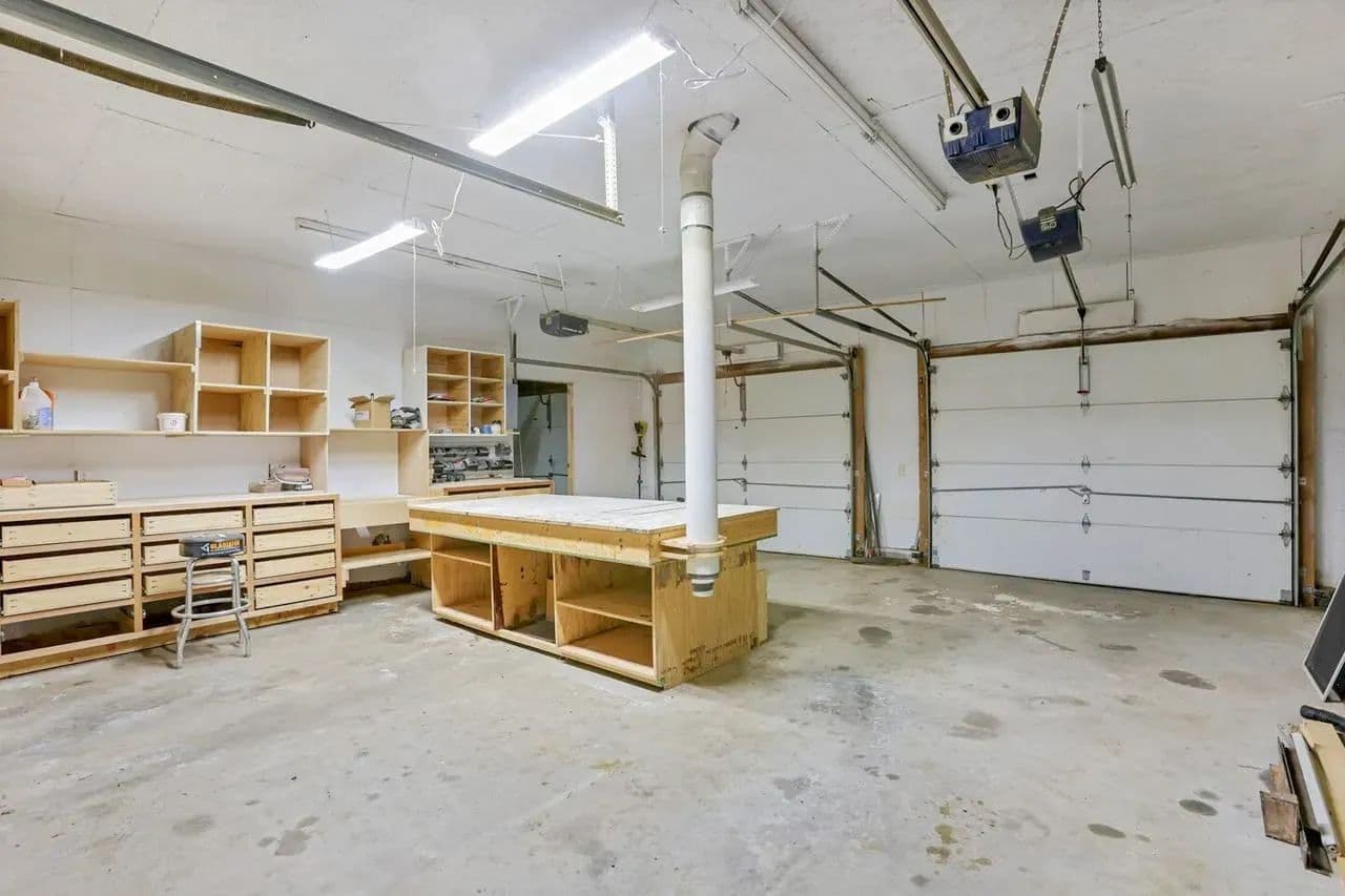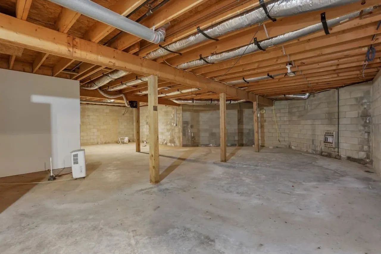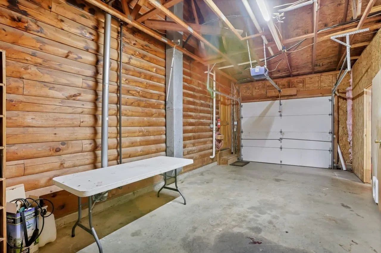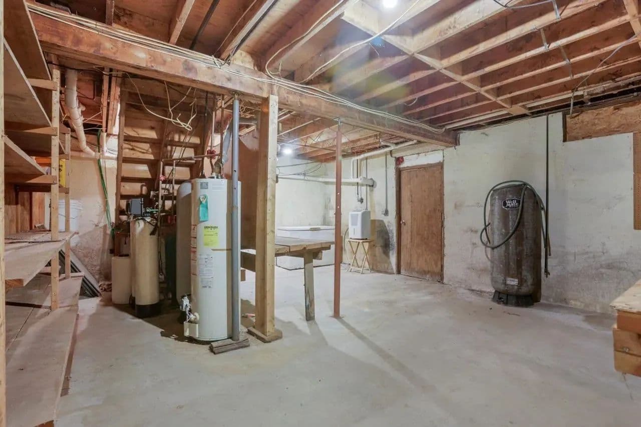 Full basement with desk, office area, and meat processing room with stainless steel sink