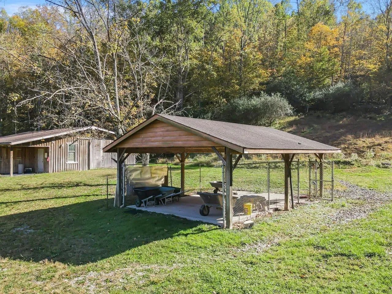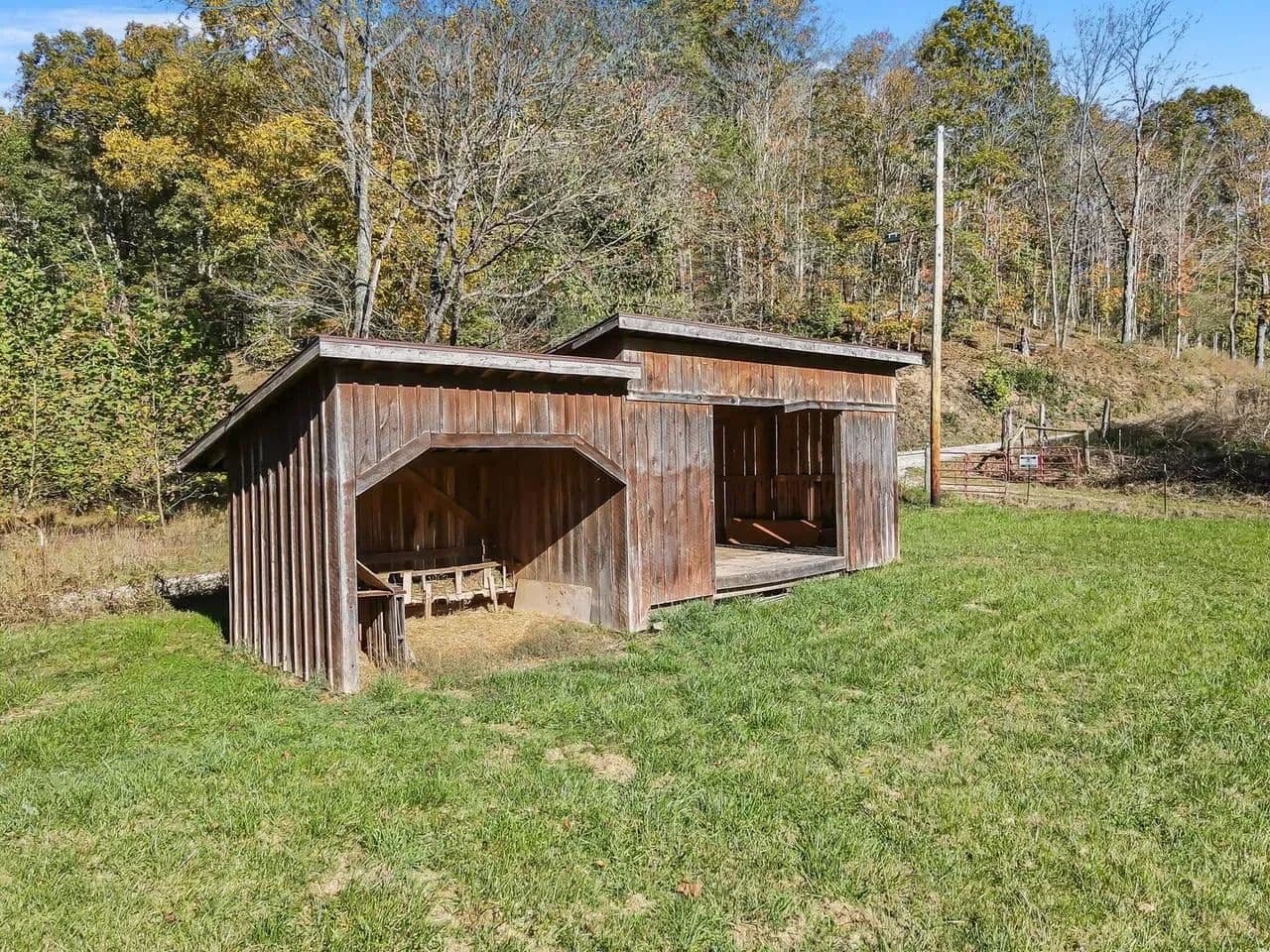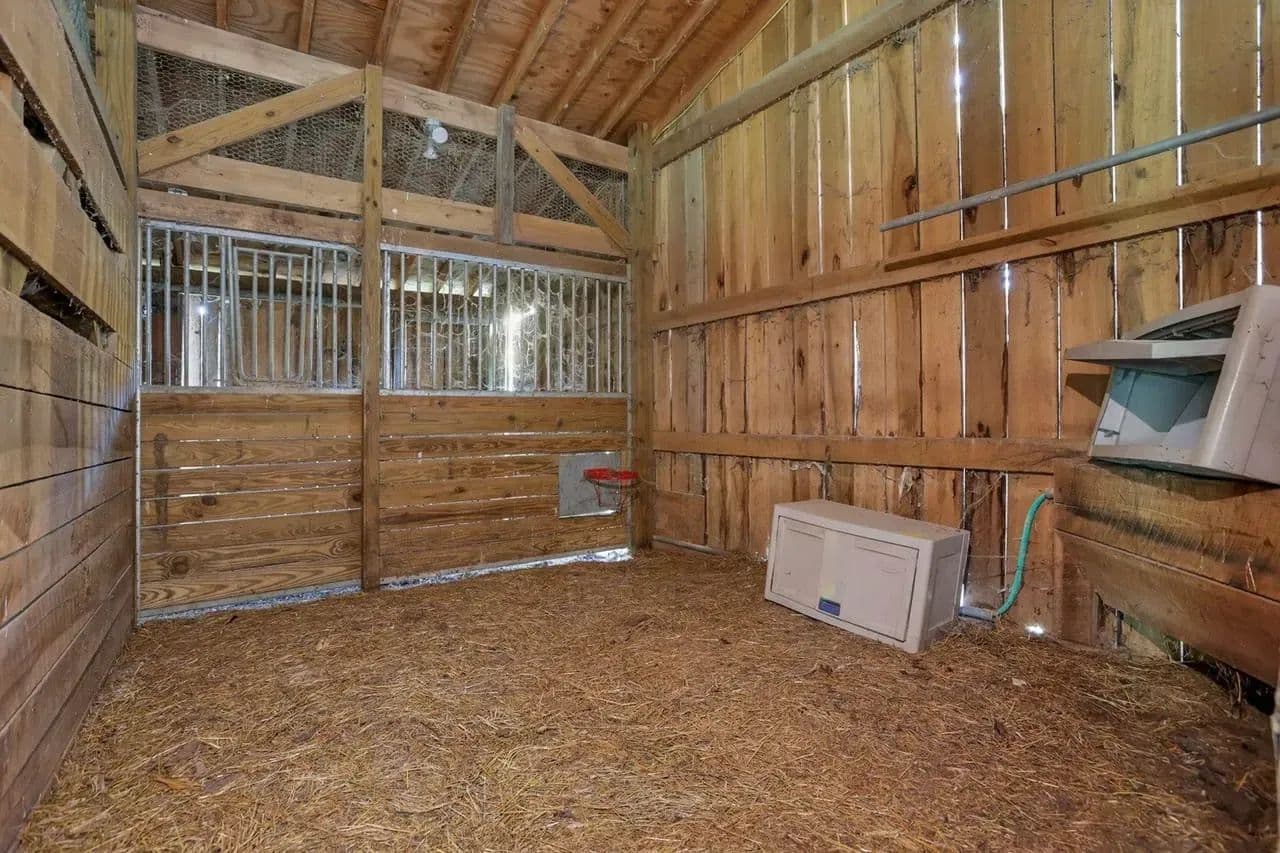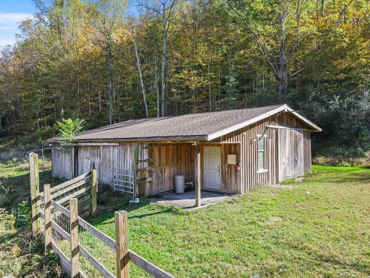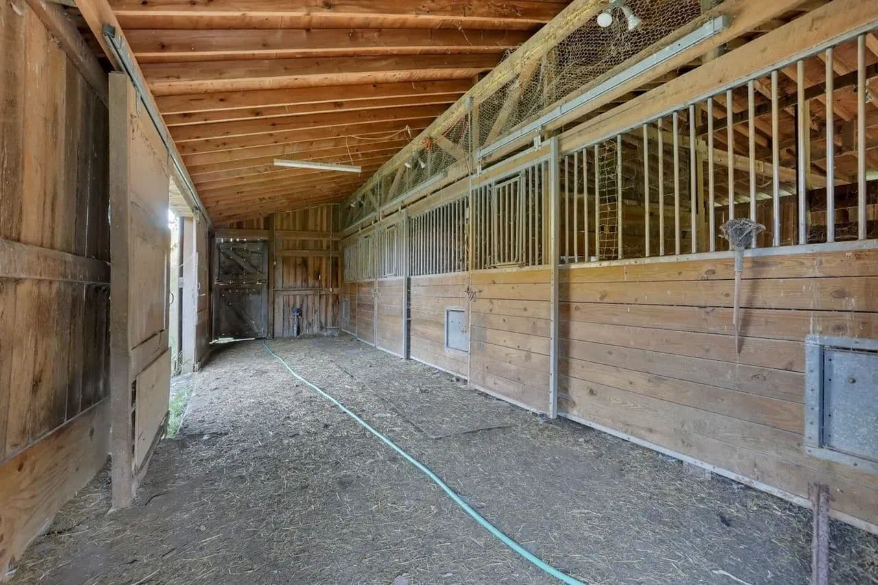 Horse barn with tack room/office, multiple stalls, water, electric, and some fenced pasture