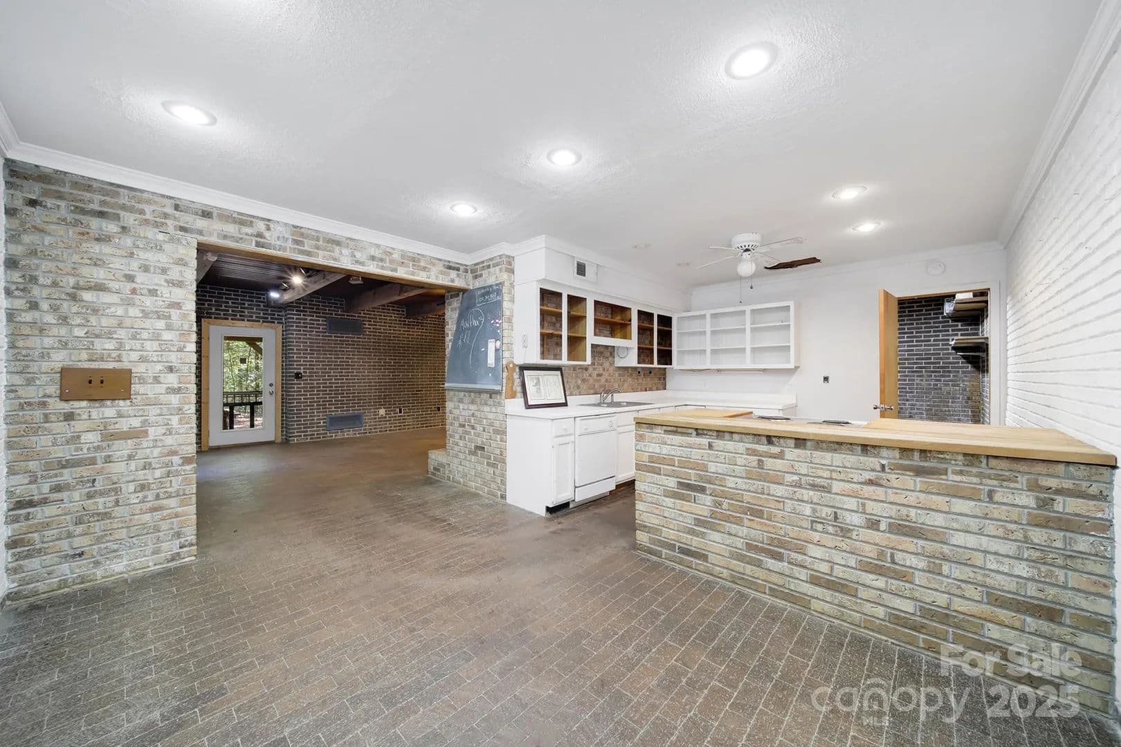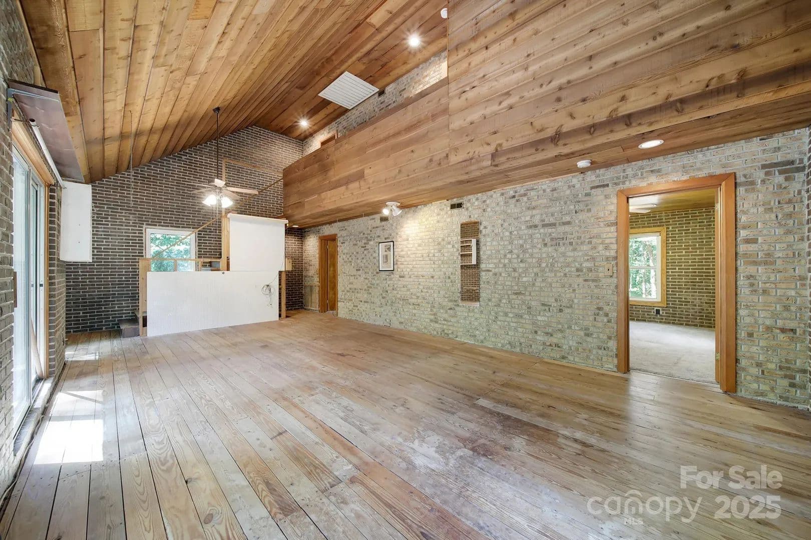 Here’s your shot at something rare. 12+ acres and a full-brick custom home that doesn’t just blend into the crowd. Built with passive-solar design in mind, this 2.5-story home has the soul of a rustic cabin. The driveway winds through the trees, delivering you to a massive deck overlooking the beautiful woods. Step inside to a living room with natural wood beams and a wood-burning fireplace, then swing around to a kitchen with a large island, dining area, and walk-in pantry/laundry room. Head upstairs and you’ll find another living space with a shiplap vaulted ceiling and windows galore that make the outdoors part of the décor. Two bedrooms share a bath on this level, and another set of stairs takes you up to the loft with two more bedrooms and a full bath.
