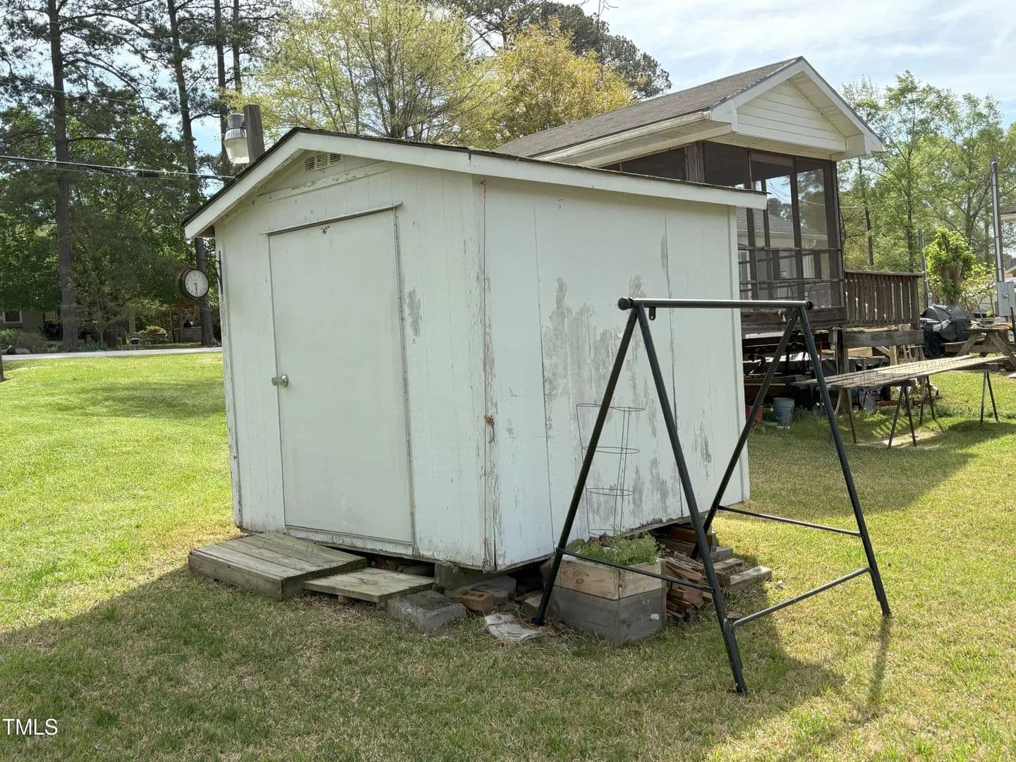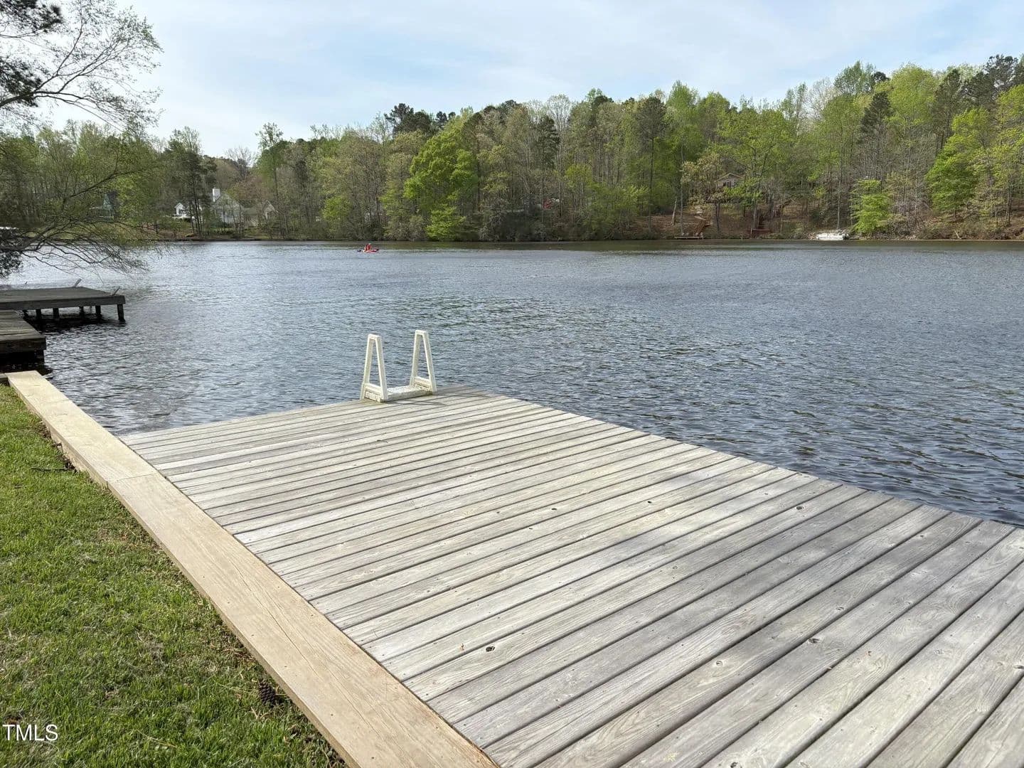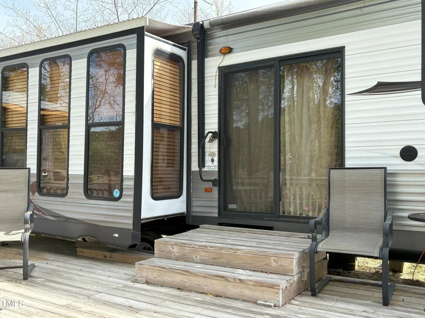 Waterfront Lot with 39' Forest River Camper - Lake Royale. Don't miss this must-see waterfront lot located in the beautiful, gatedcommunity of Lake Royale. The property includes a 2014 Forest River 39-foot destination camper, fully hooked up to water, electricity, and septic for ultimate convenience. Enjoy stunning water views from the large attached deck, perfect for watching evening sunsets. Thelot also features a private dock with a boat slip and a shed for extra storage. Lake Royale offers an abundance of amenities, including: Two beaches, Clubhouse and pavilionGolf coursePickleball, tennis, basketball, and volleyball courts. Whether you're looking for an activelifestyle or a peaceful retreat by the water, this property offers the best of both worlds. Seller will consider owner financing.