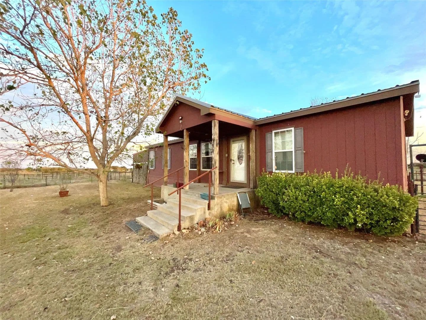 Great horse property hard to find within 25 minutes of the Cowboy Capital of Texas, Stephenville! Spacious 2013 3 bedroom 2 bath doublewide in very good condition with a metal roof and a large covered concrete back porch to enjoy the peace and quiet of your own 30 acre piece of Texas. Also there are no known restrictions so you're the boss here. Make your own rules! This property boasts a 72' x 55' pull through metal barn with four 15' wide stalls and a tack room with electric and water as well as several loafing sheds. This property also boasts four 5-acre traps with freeze proof faucets to water your horses, cattle, goats, or whatever you've got. Also has a nice size stock tank for your animals which adds a ton of value. There is an irrigation well in the front pasture with its own entryway with it's own meter loop that could be used for a second residence or mother in law quarters. Motivated seller, don't hesitate to set up your showing today before rates drop and prices go up!