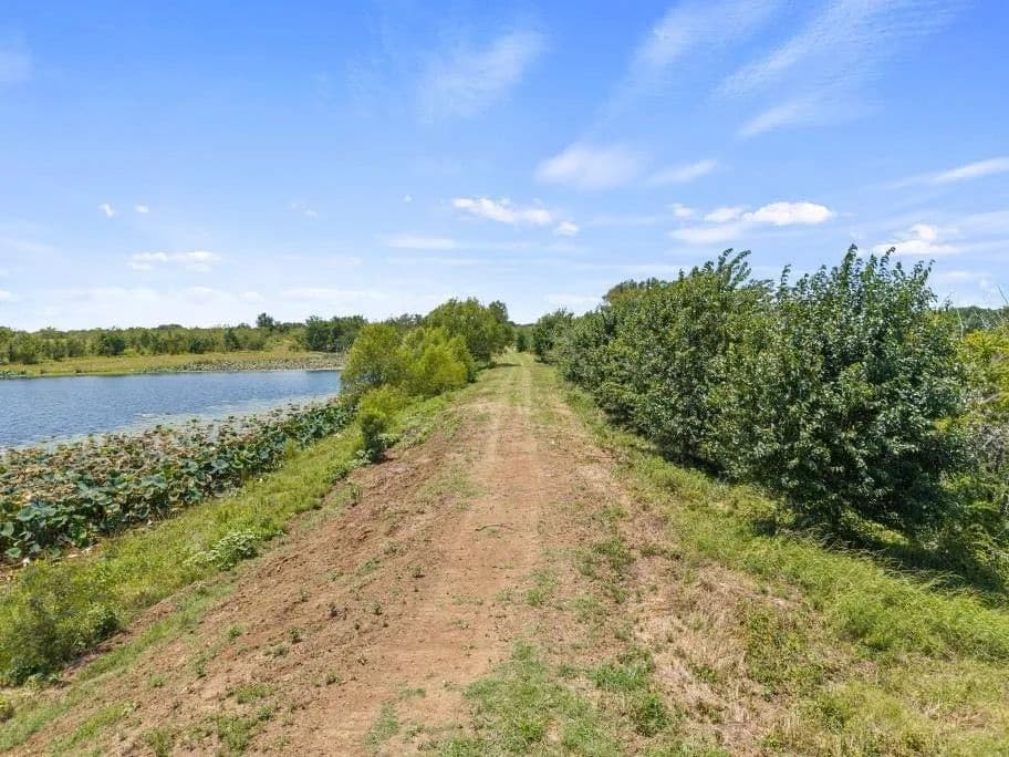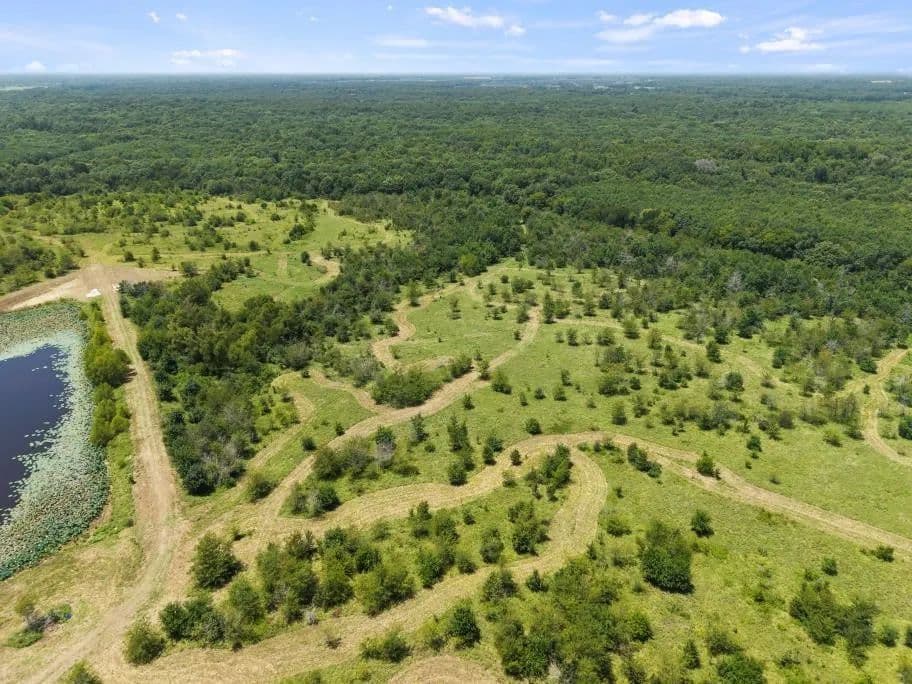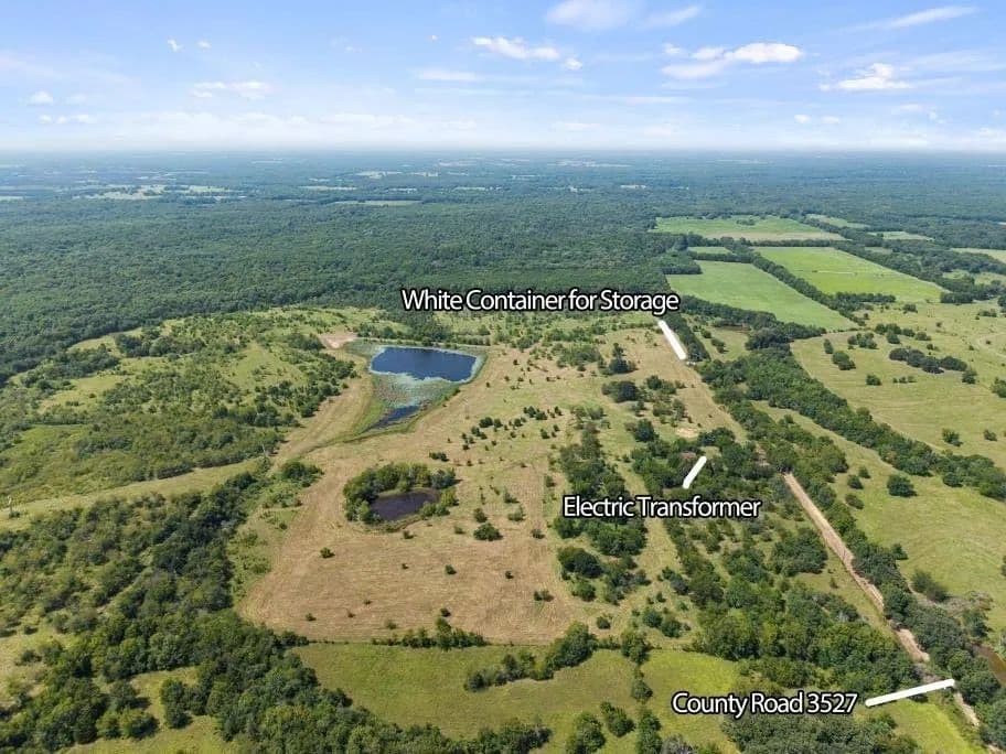 A network of freshly mowed trails provides excellent access throughout the property, and two new culverts have been installed near the lake for easier crossing and improved functionality. Overhead electricity is in place with a transformer near the Rustic Livestock Shade Shelter, and a secure storage container northeast of the entrance is ideal for storing gear and equipment. Water is available nearby but will require a line extension.