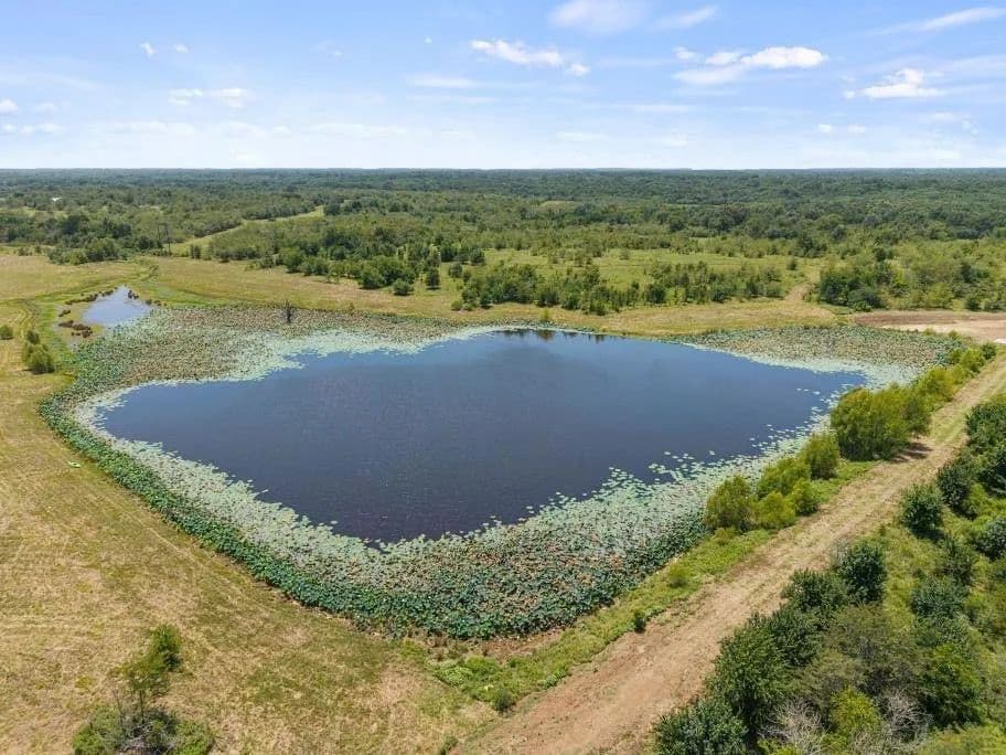White Oak Creek runs through the land, complemented by a scenic 6-acre private lake and six additional ponds. The property supports diverse wildlife including ducks, deer, turkey, hogs, and fish, making it well-suited for hunting and year-round recreation. Climate-42inches RAINFALL. Three quarters of the property is in FEMA floodplain.