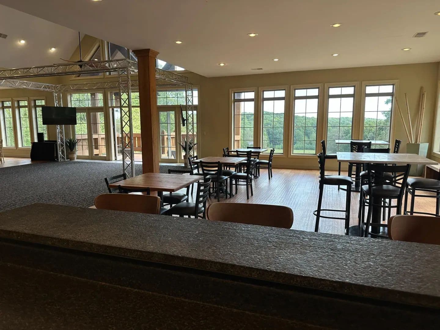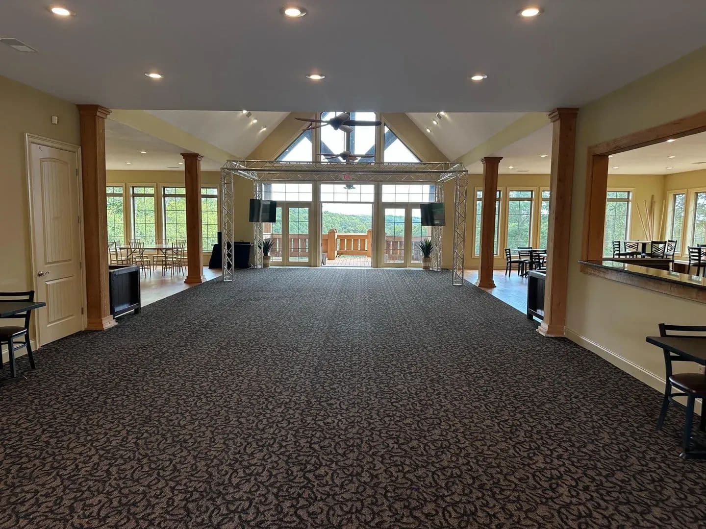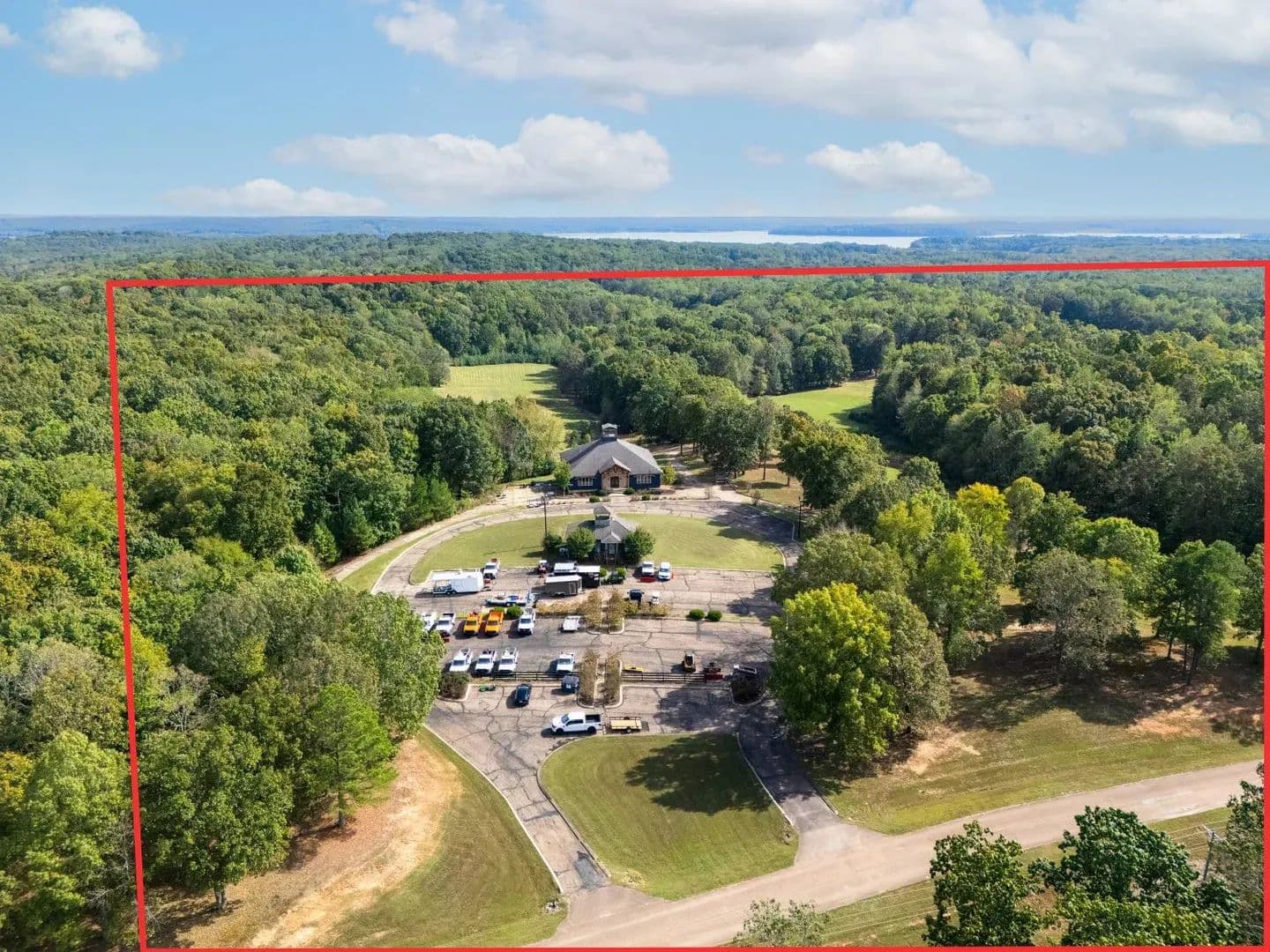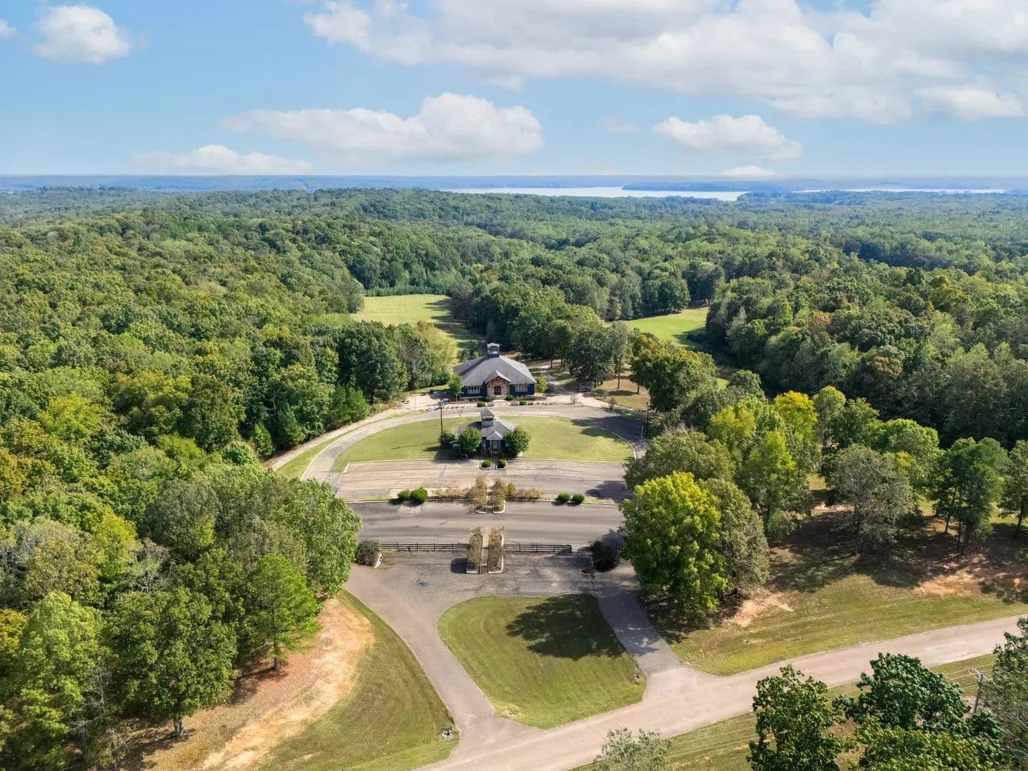 Improvements A winding drive leads to the impressive centerpiece of the property, a 6,000+/- square-foot clubhouse majestically positioned, featuring floor-to-ceiling windows flooding the interior with natural light, plus showcasing million-dollar panoramic views of the surrounding landscape and nearby Kentucky Lake. The warm wood flooring, two well-appointed bathrooms, and open layout make this an ideal setting for a private residence, wedding and event venue, or weekend retreat.