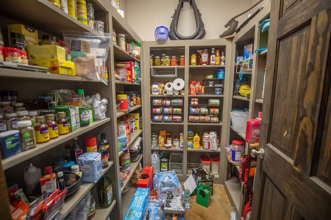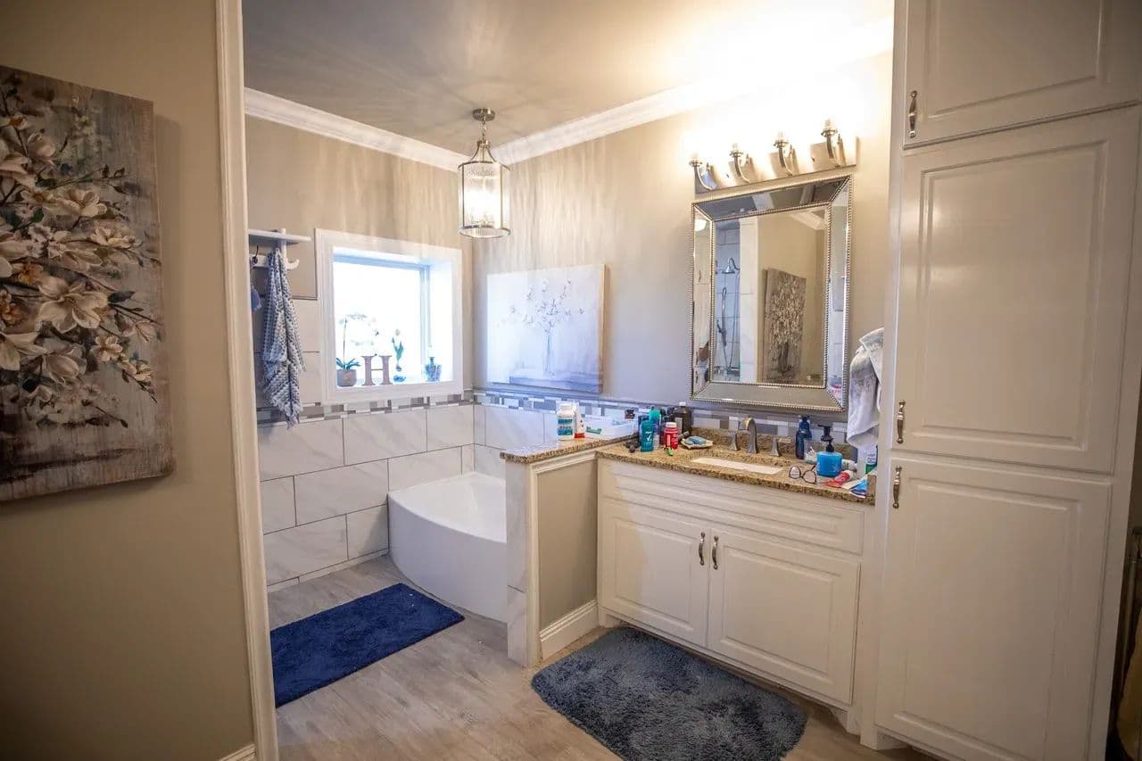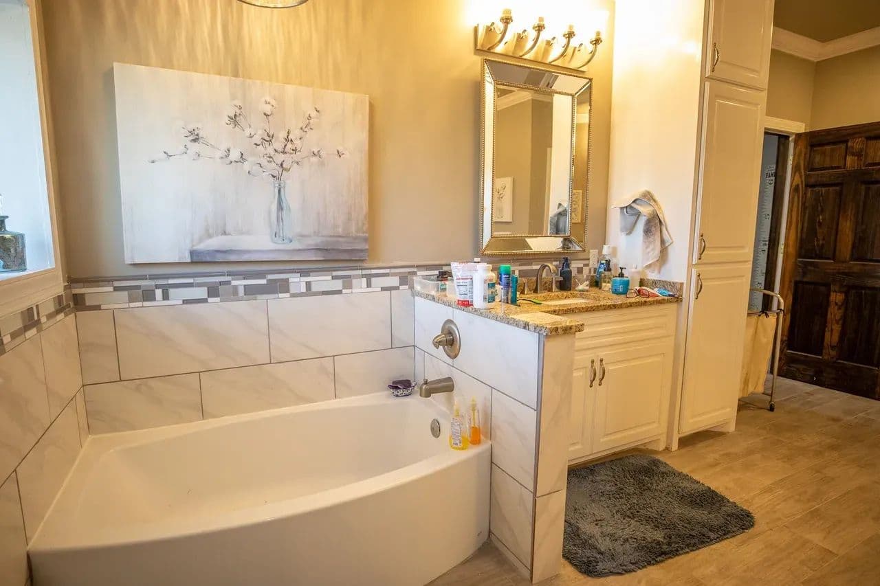 Marble countertops, wood cabinets, and pine trim harvested from the property