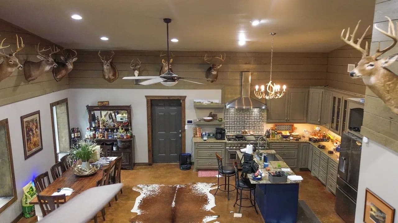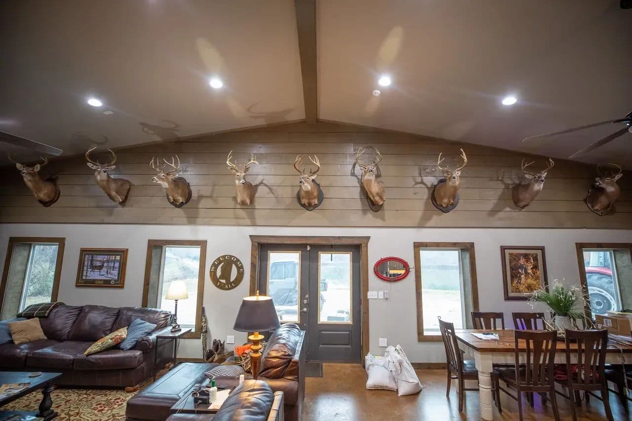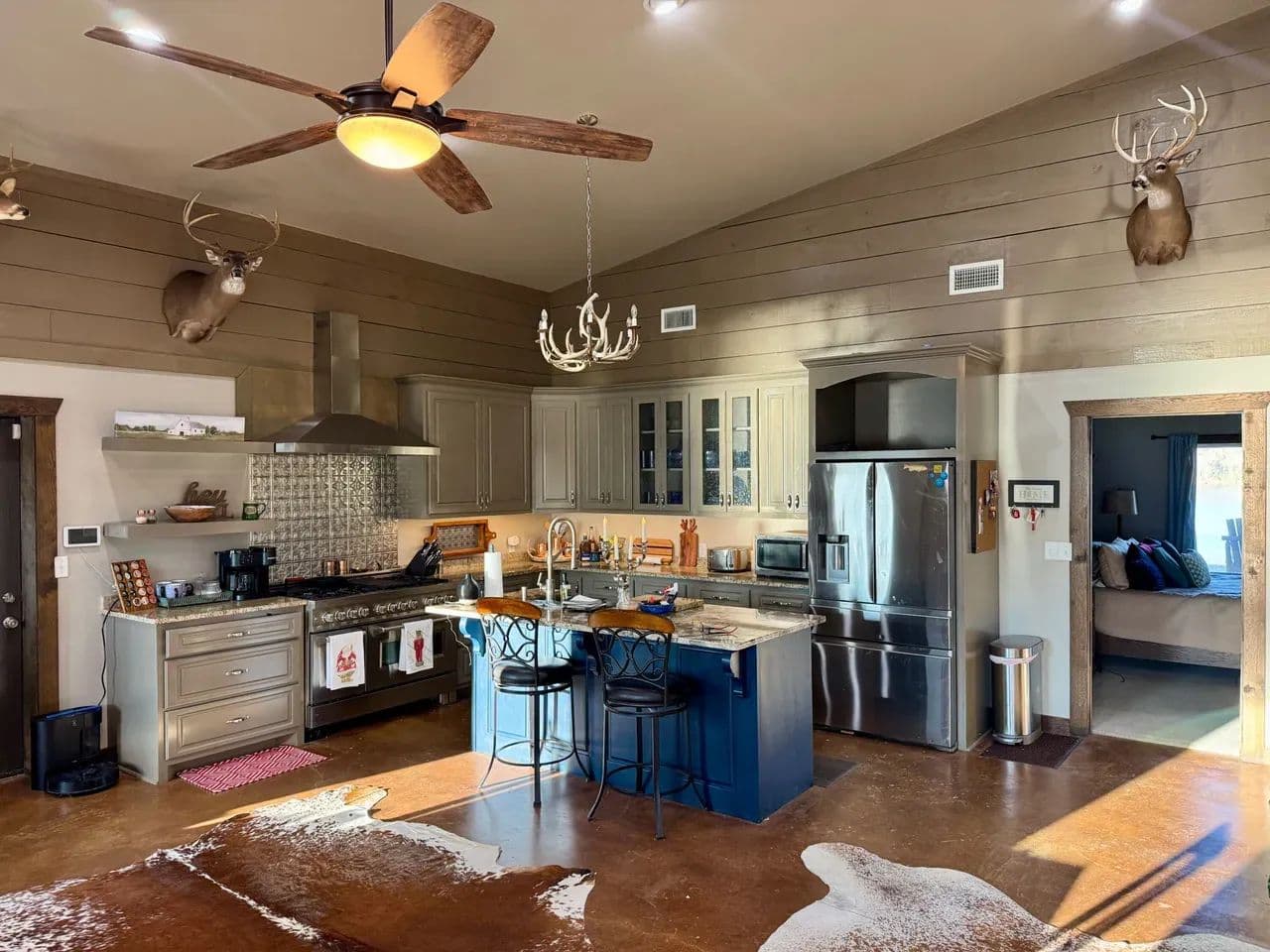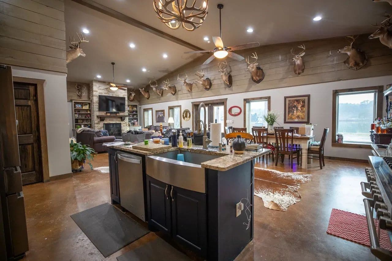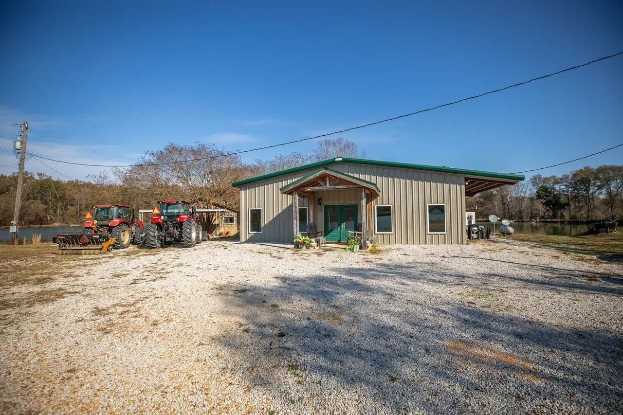 The 1,600 sq. ft. barndominium serves as a beautiful primary home with beautiful views overlooking the ponds and features:
