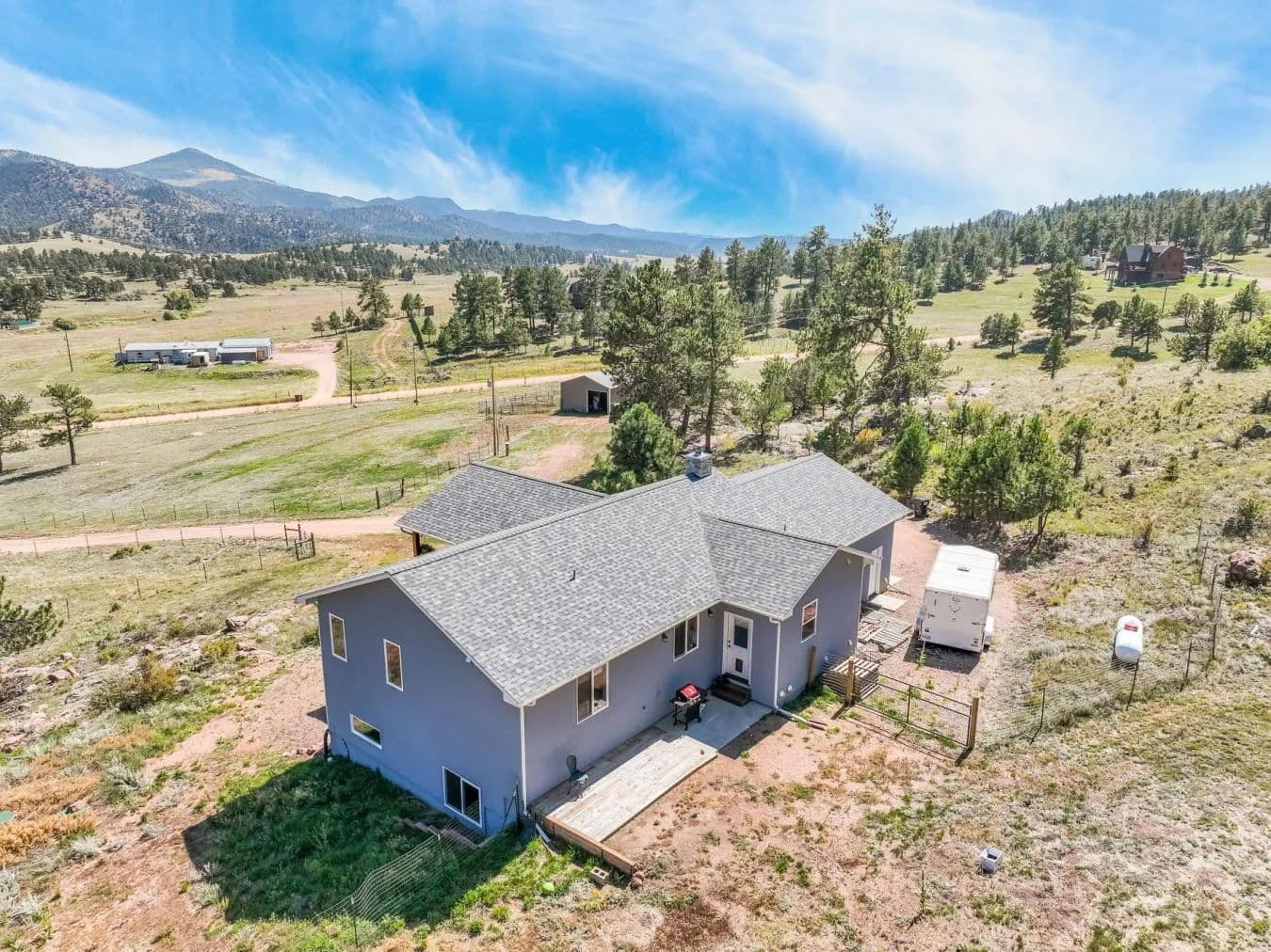 Experience the essence of mountain living in this custom-built ranch-style home on 11.8 picturesque acres in Florissant, CO. Designed with comfort mountain style, this stucco home combines elegance with rugged beauty, perfectly complementing the natural surroundings. As you approach, you'll be captivated by sweeping views of the iconic Pikes Peak and the striking rock outcroppings scattered across the property. The expansive acreage offers ample space for both leisure and livestock, complete with a barn featuring 2 stalls and multiple fenced pastures, ideal for equestrian enthusiasts or those seeking a hobby farm. Inside, the home boasts a seamless blend of rustic charm and modern sophistication. The heart of the home is its open concept great room and the kitchen is a chef's dream outfitted with top-of-the-line appliances, sleek finishes, and ample storage. Whether preparing gourmet meals or hosting friends and family, this kitchen ensures effortless functionality and style. The raised ranch layout provides ease of living, with spacious living areas and picture windows that open to breathtaking outdoor vistas, filling the home with natural light and creating an inviting atmosphere. Enjoy the best of indoor-outdoor living as you relax on the porch, savoring the crisp mountain air and panoramic views that stretch across the horizon. With endless possibilities for recreation and serene privacy, this property offers a rare combination of luxury, comfort, and the beauty of Colorado's high country. Whether you're looking for a peaceful retreat or a full-time residence, this property offers a truly unique mountain lifestyle.