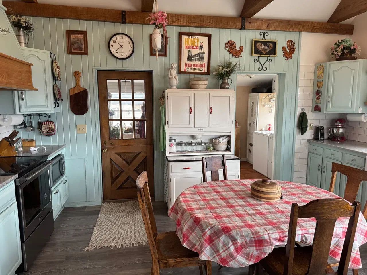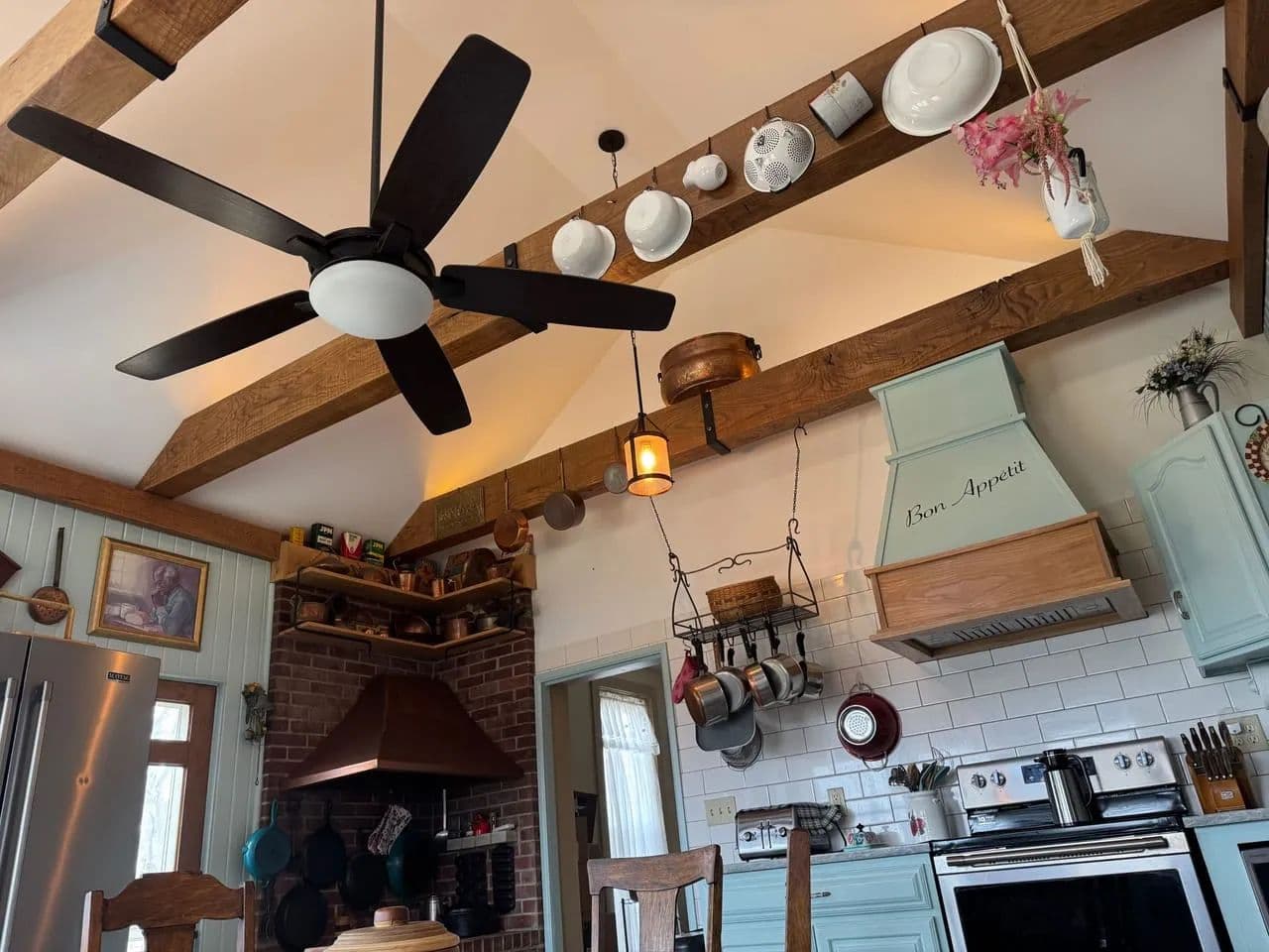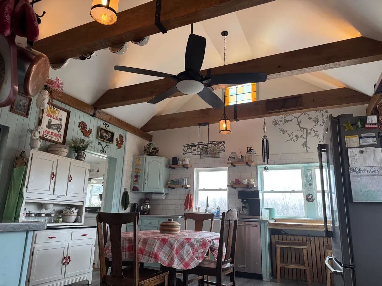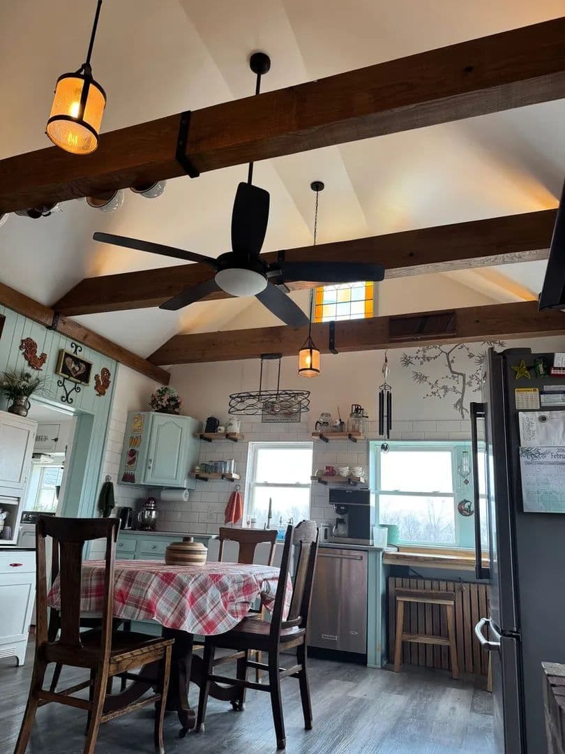 Stunning, light-filled kitchen with exposed wooden beams, blending rustic character with functionality