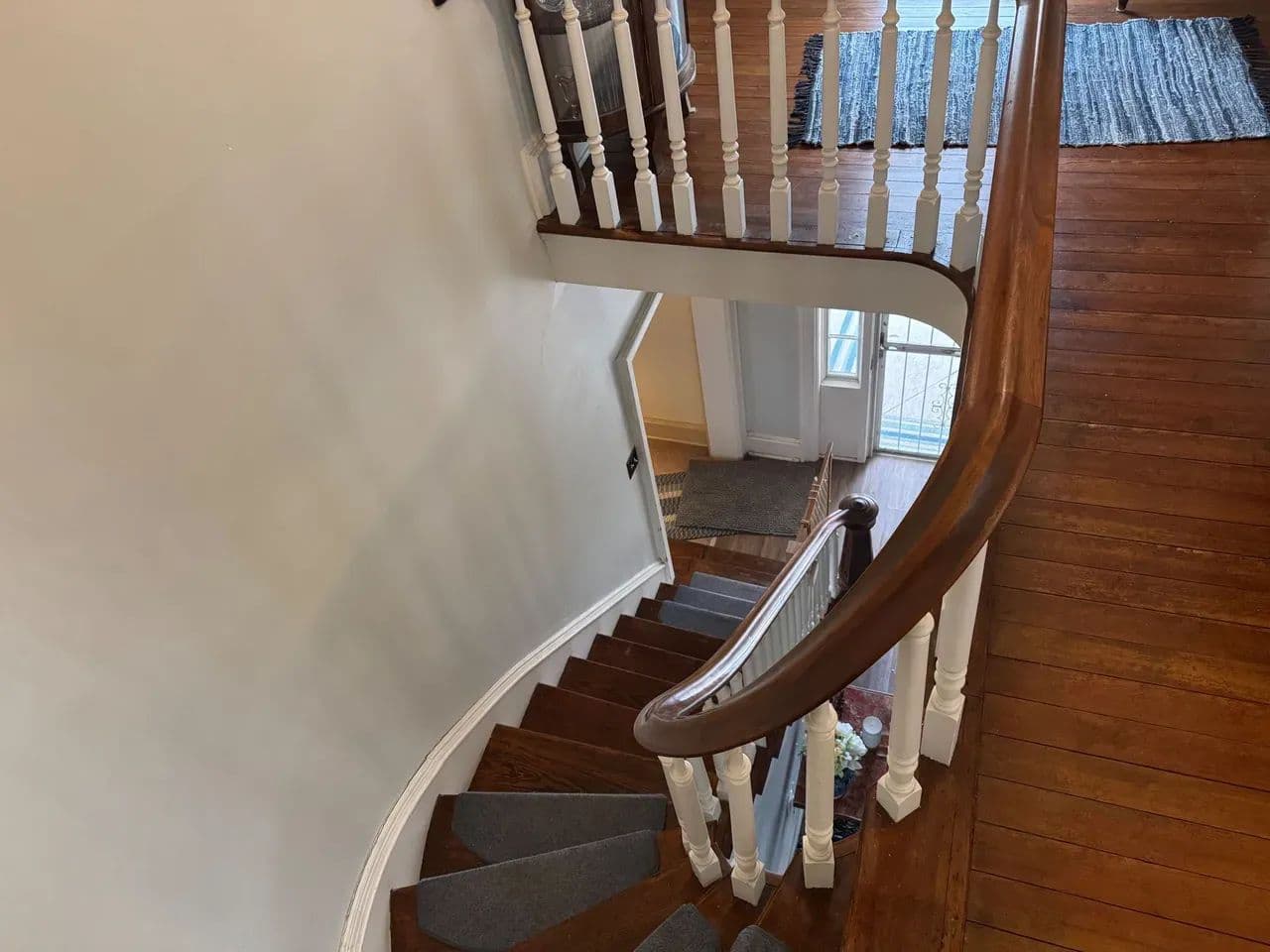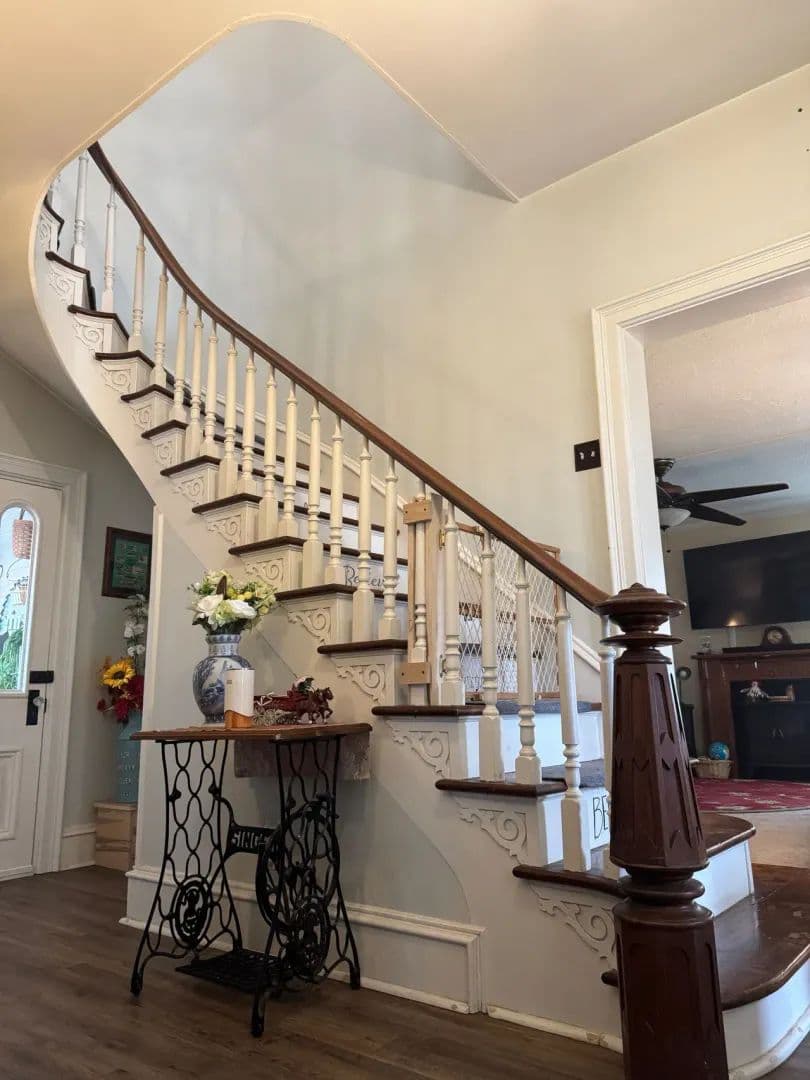 Beautiful curved staircase that serves as a timeless architectural focal point
