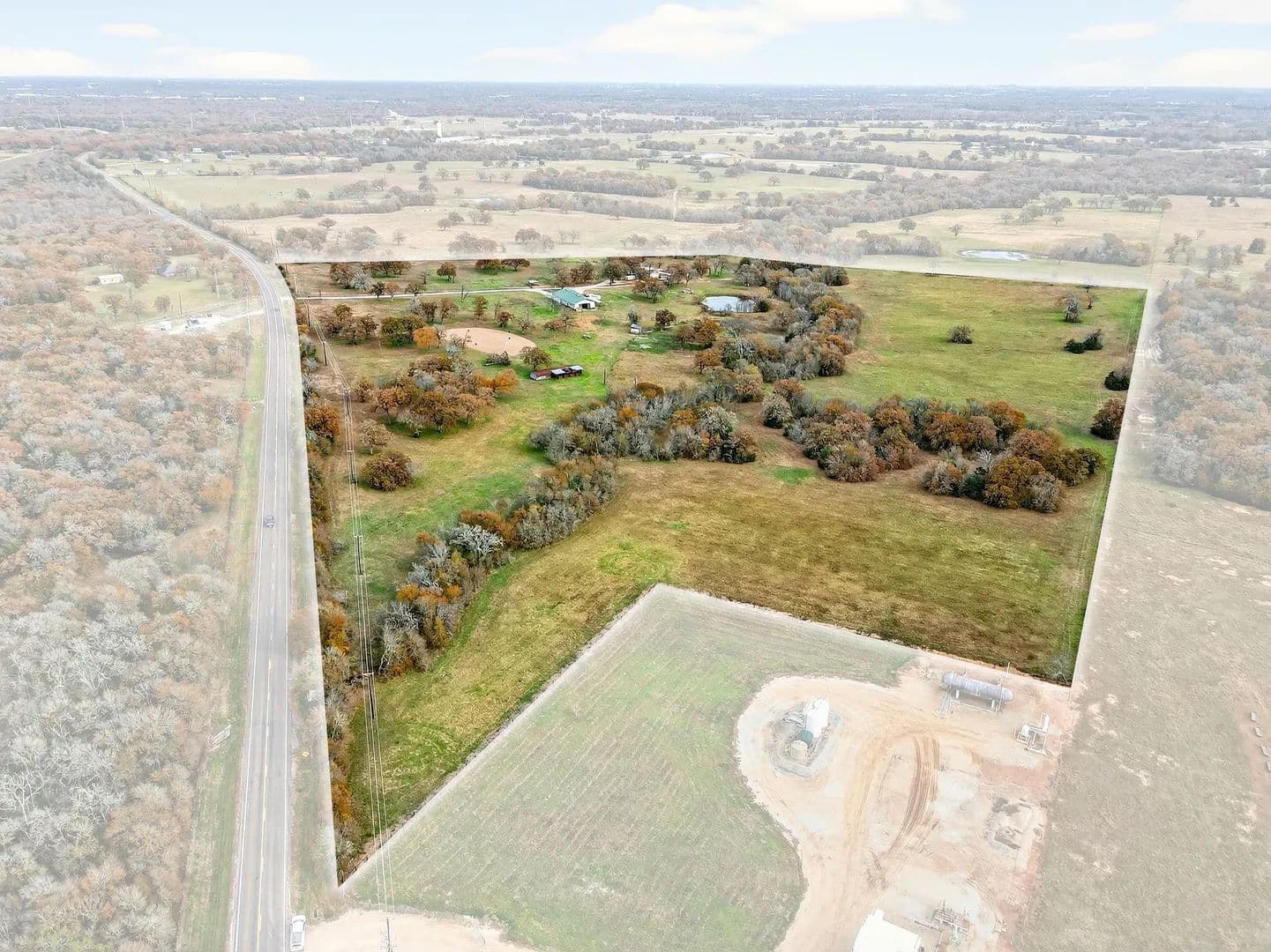 The epitome of country living awaits you on this 48 acre property in Bryan, TX. Nestled on expansive acreage, this unrestricted enchanting estate offers a perfect blend of tranquility and convenience. Access to Hwy 21 is minutes away. There are several structures on the property. The 7 stall horse barn includes 599 square feet of living quarters that is currently leased for $900 per month. The mobile home is 2549sf and is currently leased at $2500 per month. The expansive acreage is perfectly suited for your future homestead estate, development or agricultural pursuits. This property site embodies the heart of country living while offering convenience to city amenities. Don't miss this rare opportunity to own a piece of paradise in Bryan, Texas.