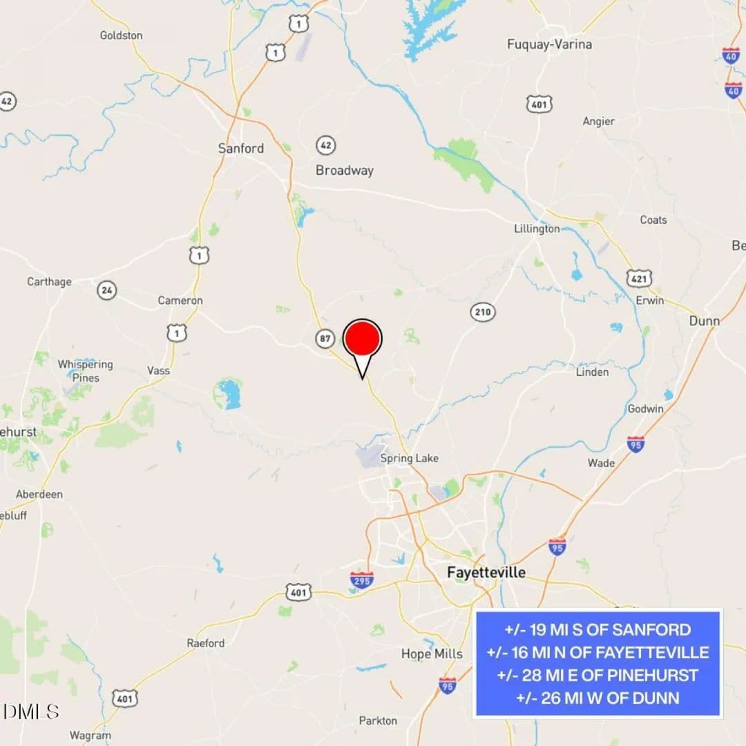 Commercially zoned ±1.97-acre tract located in Spout Springs, Harnett County, along a busy corridor between Sanford and Fayetteville. This stretch of road serves as a major commuter route and sees heavy daily traffic. 2023 traffic counts average approximately 42, 500 vehicles per day, giving the property strong visibility and easy exposure to both local and pass-through traffic. County water, sewer, and fiber are available, and the site is already zoned commercial, allowing a wide range of potential uses. There are several older structures on the property that do not add value and would likely be removed for redevelopment. The surrounding area continues to see residential growth, creating demand for retail, office, medical, and service-based businesses. The location benefits from proximity to Fort Bragg and nearby employment centers, making it a solid option for commercial users or investors looking for a high-traffic site in a growing part of Harnett County. Quick Highlights ±1.97 acres Zoned commercial County water, sewer, and fiber available ±42, 500 ADT (2023) High-traffic corridor between Sanford and Fayetteville Older structures of no contributory value Growing Spout Springs area Near Fort Bragg