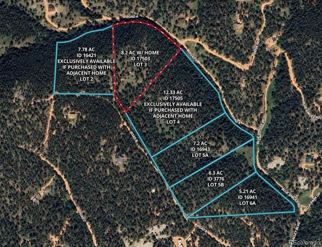 Choice vacant land lot in tranquil subdivision of Hidden Valley Ranches in Pine Co. This 7.2-acre lot offers the ideal setting for your dream home or weekend getaway. Surrounded by towering pines and rock outcroppings gives way to a sloped terrain - great for a home site can offer elevated view of Staunton State Park to the east where you can enjoy year-round outdoor recreation. Conveniently located within easy reach of HWY 285 while still embracing the tranquility of mountain living. Unwind with the drive through the peaceful Hidden Valley Ranch meadow with grazing animals and stunning mountain views on your way to your new home! Lots 5A (MLS#2959102), 5B (MLS#4111163)& 6A (MLS#2389036) are available. Additionally Lot 3 with home is available (MLS#4788431) and Lots 2 and/or 4 may be purchased solely in conjunction with purchase of the home until sold. Hidden Valley Blvd is maintained by private road association +-$300/yr; Road B is maintained by those living upon and using it.