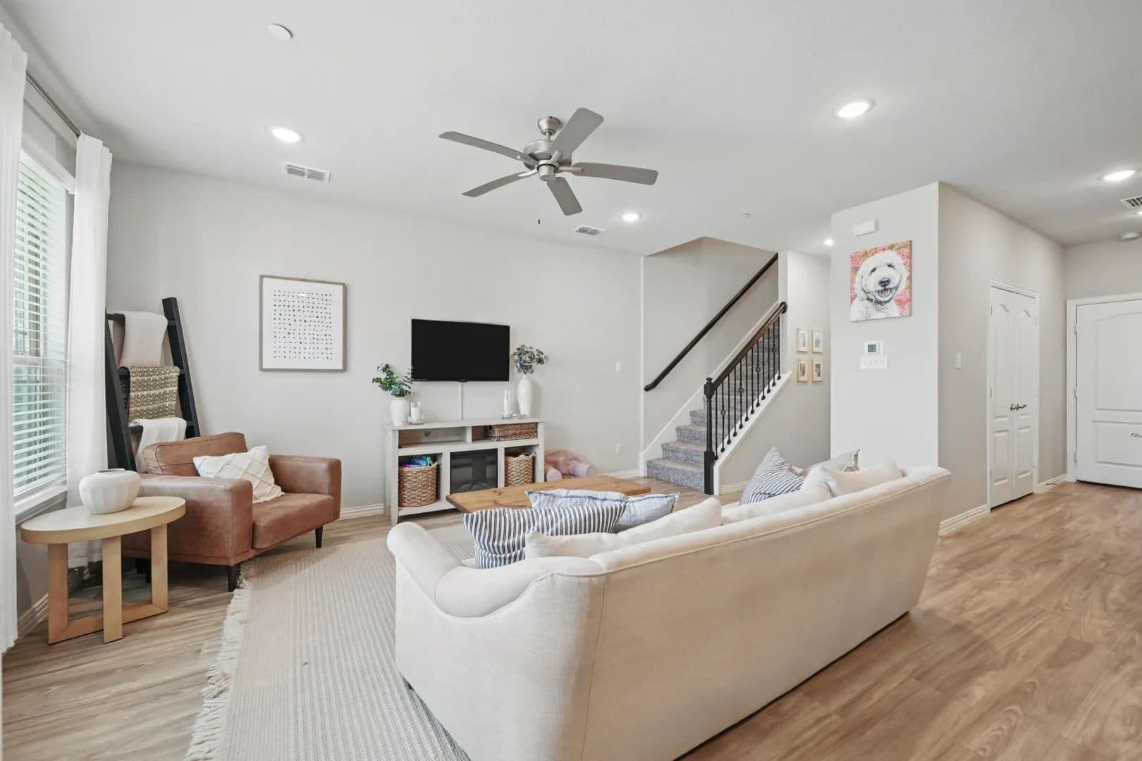 Welcome to this 3-bedroom, 2.5-bathroom townhome in the Brentwood Place community of Denton, TX. The home features an open layout with a comfortable living area and a kitchen equipped with modern appliances, plenty of cabinet space, and a breakfast bar. Upstairs, all three bedrooms are spacious and cozy—each with its own walk-in closet. The primary suite also includes a private bathroom for added comfort. An attached rear-entry garage provides convenient parking and additional storage. Located just minutes from the University of North Texas, Texas Woman’s University, and downtown Denton, this home offers easy access to shopping, dining, parks, and major roads. Brentwood Place is a quiet, well-located neighborhood that puts you close to everything Denton has to offer!