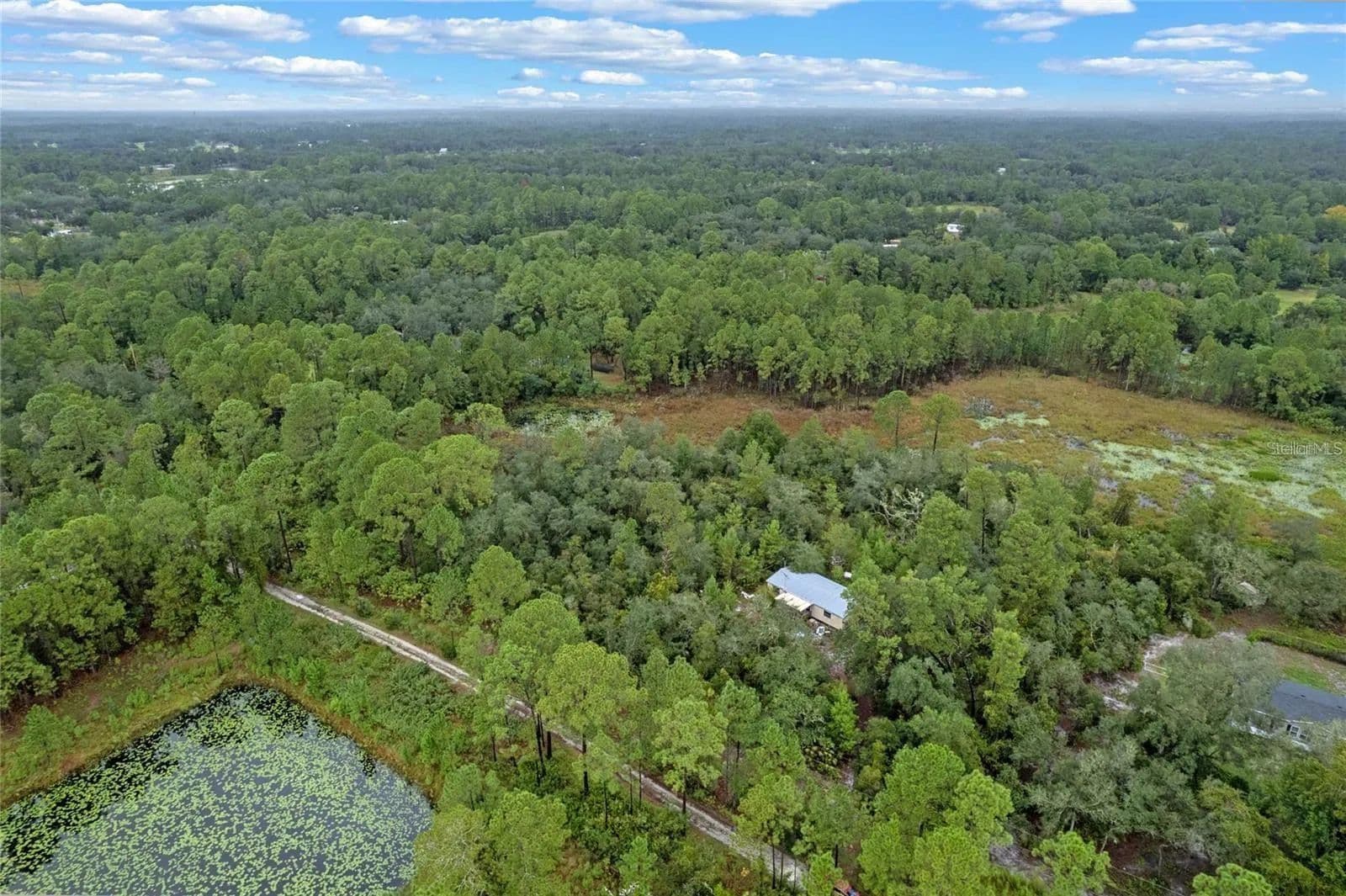 Discover a rare opportunity to own 5 acres of peaceful Florida countryside just minutes from the natural beauty of Lower Wekiva River Preserve State Park. This property features approximately 3 acres of buildable land in sought-after Flood Zone X, offering development flexibility, complemented by 2 acres of wetlands that create added privacy, natural beauty, and a peaceful setting. The property has been partially cleared and includes existing well, septic system, and electrical service; however, the property has been unoccupied and not maintained since the last tenant vacated in 2020, and the current condition of the well and septic is . Spectrum internet has recently been extended to the area, providing modern connectivity. Impact fees have been partially paid, helping streamline future development. An older mobile home and three vehicles remain on site and will require removal. Zoned Agricultural, the property allows for horses and livestock, making it well-suited for a rural homestead, small farm, or private retreat. The adjacent 10-acre parcel has been cleared and developed, demonstrating the potential of this land. Access is via Blackwater Oaks, a quiet dirt road voluntarily maintained by neighboring owners. With nearby growth and improvements already underway, this property offers excellent potential for those looking to build, place a new mobile home, or invest in land with long-term upside