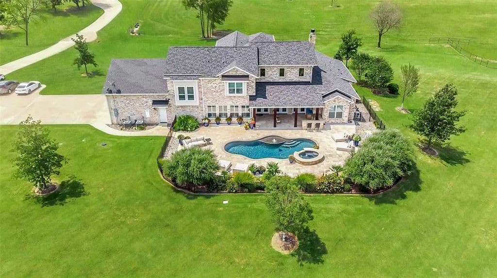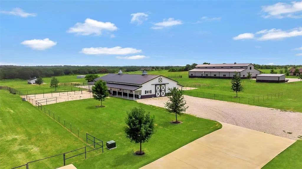 NORTEX RANCH - You won't want to miss the opportunity to see this incredible one-of-a-kind property. Come explore the rolling hills of this 40+ acre estate with an expansive dream home, 6,158 sqft of living space, sparking pool, impressive barns & barndominium guest suites just waiting for you to call HOME. Stunning vaulted ceilings, rich hardwood accents, abundant natural light, backyard oasis and open concept living makes this a show stopper for entertaining. This great home boasts too many features and upgrades to list- you simply must experience it for yourself. The potential opportunities for this unique property are endless. Come see this AMAZING PROPERTY Today!!