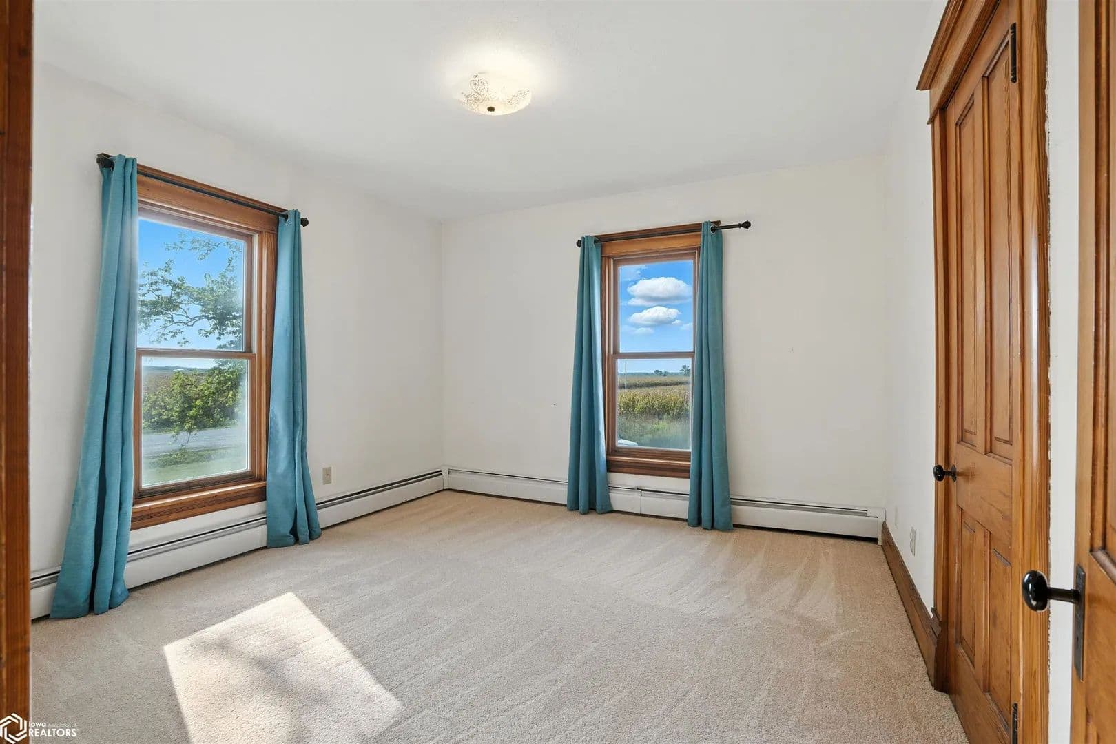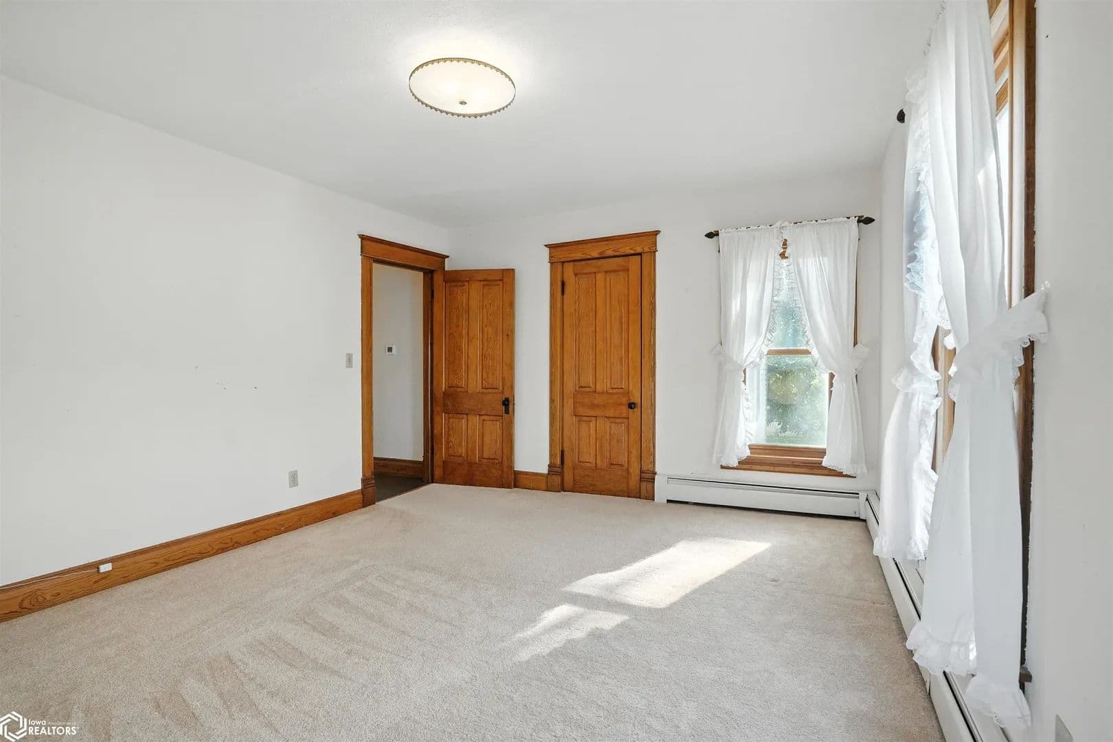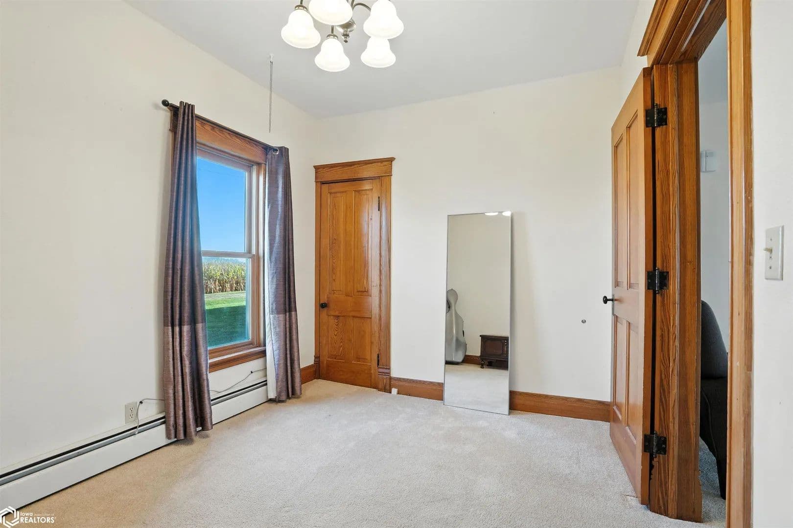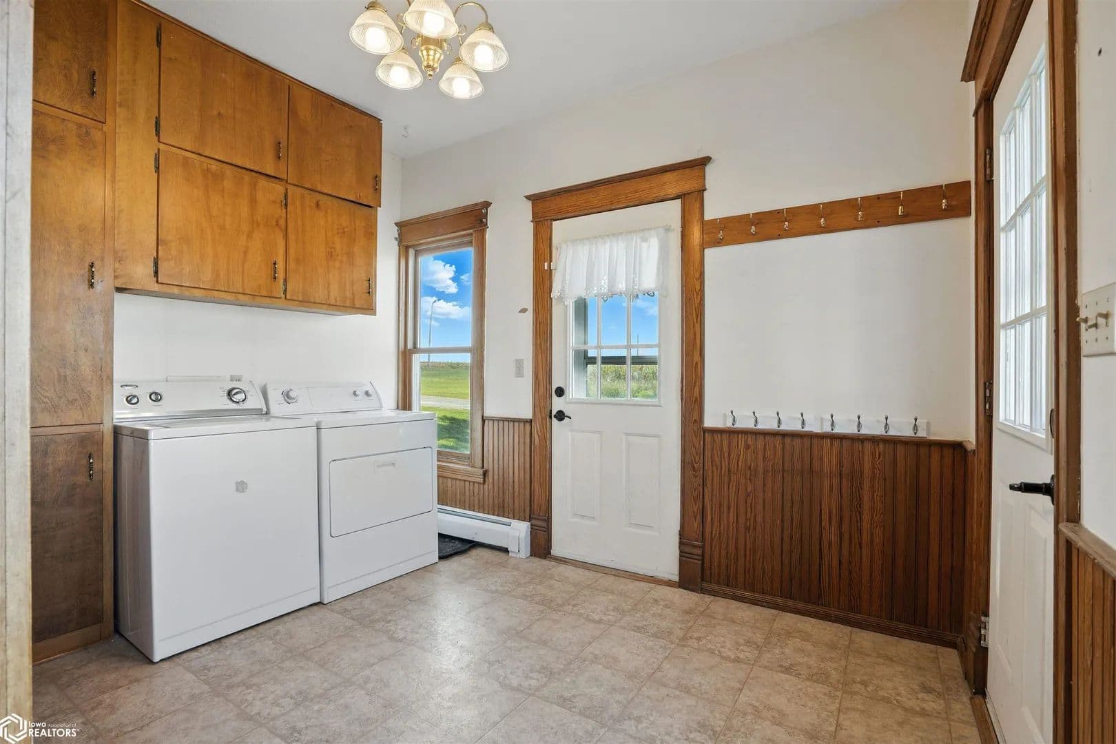 A little slice of heaven on the outskirts of Mt. Pleasant. This acreage features a charming 3-4 bedroom 2 bath farmhouse. Check out the unique curved front patio/porch to spend time soaking in the beauty all around you. Gorgeous mature trees give off shade throughout the day. This home has had many updates and upgrades. Beautiful original woodwork, stained glass and French doors. There is a brick fireplace in the living room. The living room could also be turned into the dining room instead. Currently the formal dining room is used as a music room/library with a fun little reading nook window seat. Custom made cabinets in the eat-in kitchen with loads of counterspace and storage. Mud room/laundry room also has additional storage cabinets. The Main floor bedroom could be used as an office. Front and back stairs lead up to 3 bedrooms and the 2nd bathroom. Plus there is a large storage closet at the top of the back stairs for storing seasonal decor or clothes. Outside you will find that there is a fenced in area for the kids to play or for the pets. The oversized 2 car garage has individual doors so each car has it's own spot (30X24). There is also a newer additional storage shed plus a garden area. There is newer metal roof on both the house and the garage, boiler for the heat, water heater and stainless steel chimney liner. Well is 358' deep, septic was new in 2020. Less than 7/10 mile of gravel. This ready to move in farmhouse is calling your name.