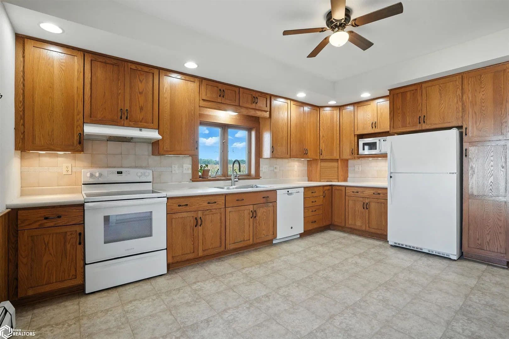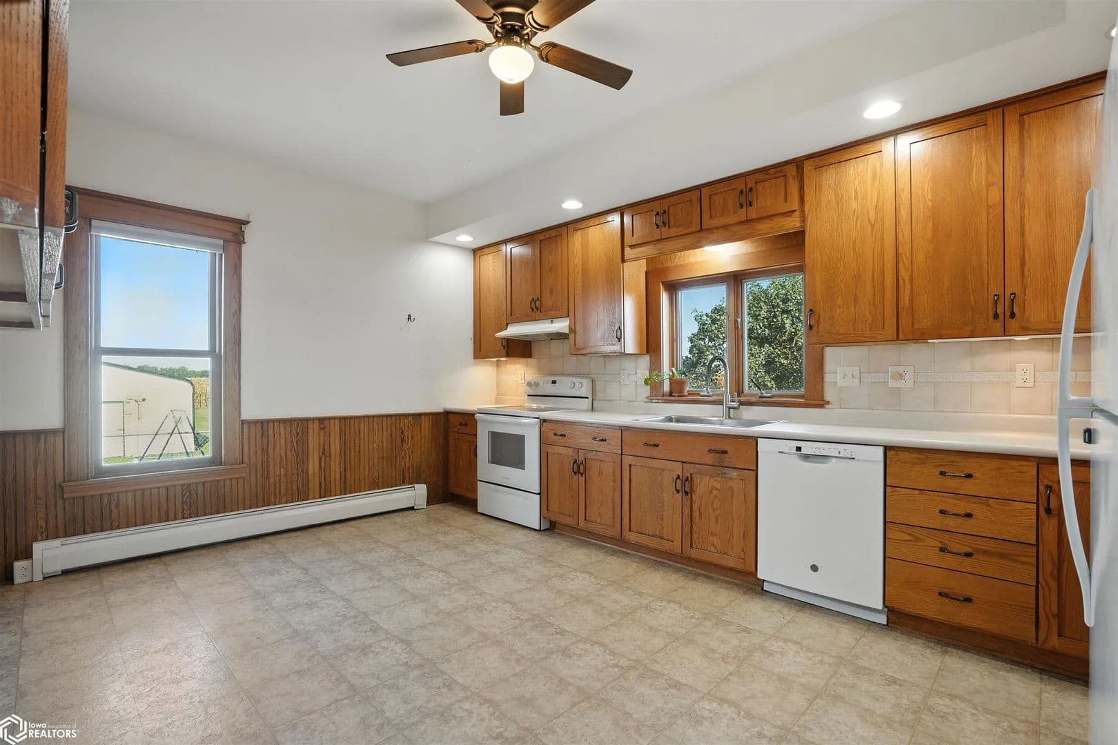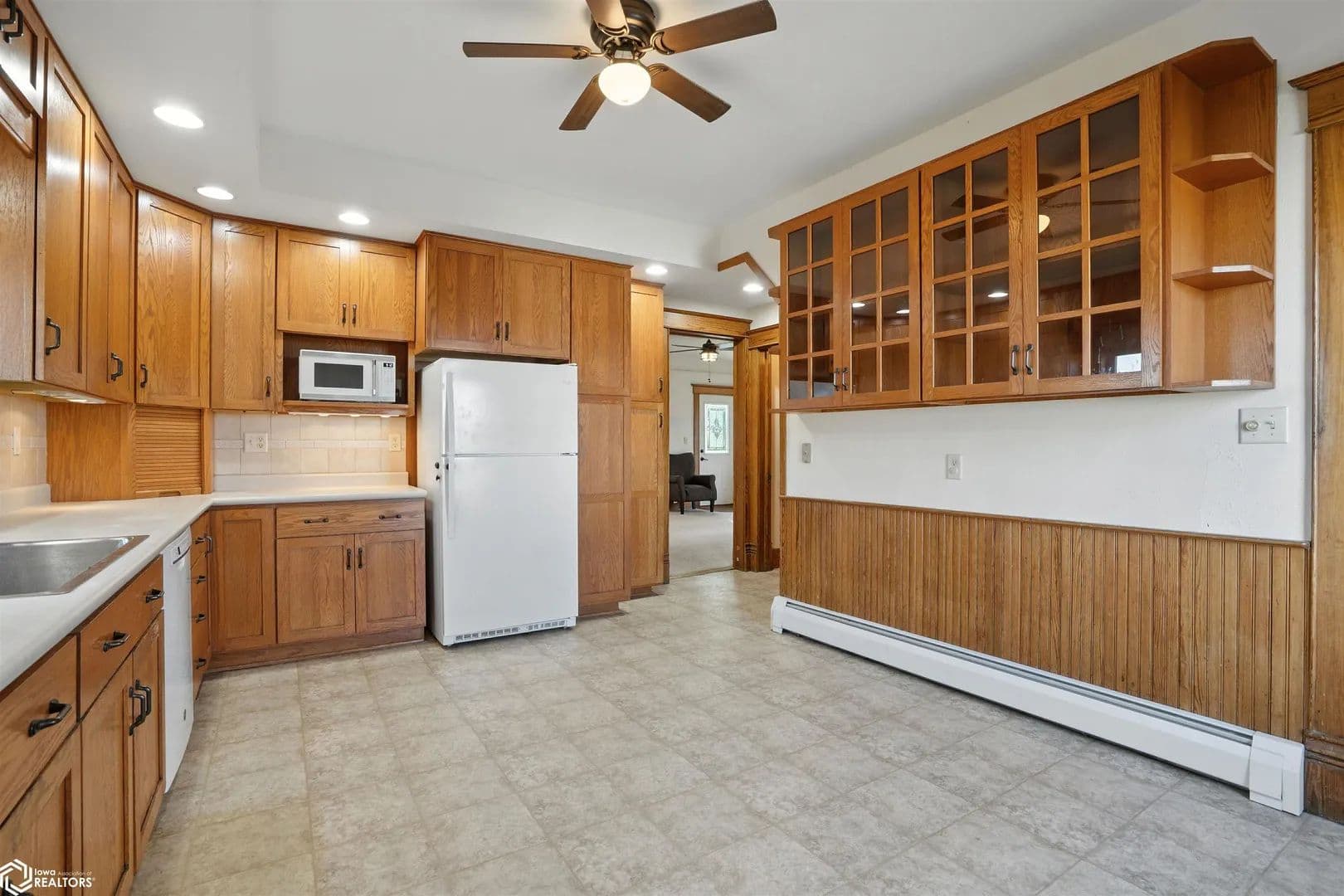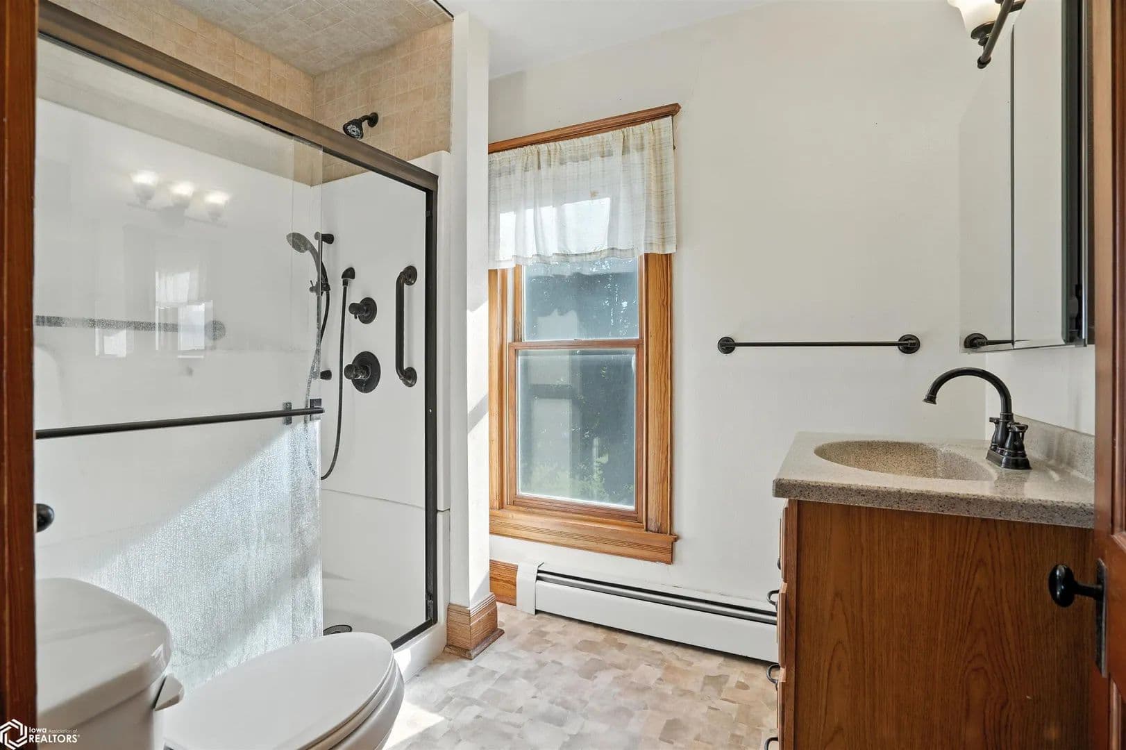 A little slice of heaven on the outskirts of Mt. Pleasant. This acreage features a charming 3-4 bedroom 2 bath farmhouse. Check out the unique curved front patio/porch to spend time soaking in the beauty all around you. Gorgeous mature trees give off shade throughout the day. This home has had many updates and upgrades. Beautiful original woodwork, stained glass and French doors. There is a brick fireplace in the living room. The living room could also be turned into the dining room instead. Currently the formal dining room is used as a music room/library with a fun little reading nook window seat. Custom made cabinets in the eat-in kitchen with loads of counterspace and storage. Mud room/laundry room also has additional storage cabinets. The Main floor bedroom could be used as an office. Front and back stairs lead up to 3 bedrooms and the 2nd bathroom. Plus there is a large storage closet at the top of the back stairs for storing seasonal decor or clothes. Outside you will find that there is a fenced in area for the kids to play or for the pets. The oversized 2 car garage has individual doors so each car has it's own spot (30X24). There is also a newer additional storage shed plus a garden area. There is newer metal roof on both the house and the garage, boiler for the heat, water heater and stainless steel chimney liner. Well is 358' deep, septic was new in 2020. Less than 7/10 mile of gravel. This ready to move in farmhouse is calling your name.