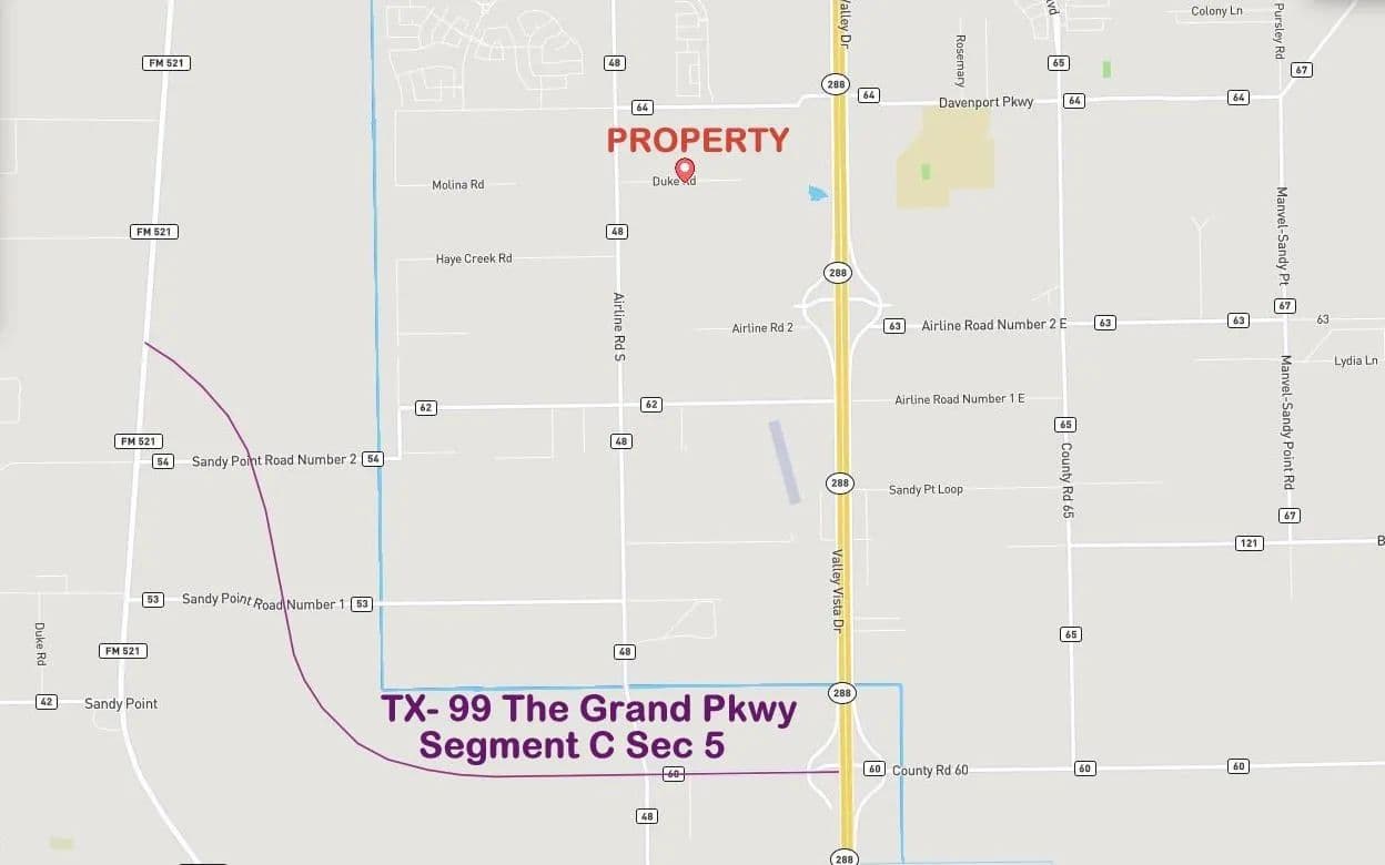 Rosharon 9-Acre Residential Development Site Located In Fast-Growing Corridor Near The Major SH 288 & SH 99 Interchange! This versatile property features 371 feet of frontage on CR 758, offering diverse potential for housing, agriculture, or equestrian facilities, pending buyer verification. Its strategic location provides seamless access to SH 6, SH 288, SH 35, I-45, & future SH 99, connecting to Pearland, Manvel, The Medical Center, Hobby Airport, Downtown Houston & several universities. Strong connectivity to employment centers (Freeport, Houston) drives future value. A flexible investment for strong returns, this site is perfectly suited for a village of rental homes, a single-family home neighborhood, dog kennels, horse-boarding stables, condos, townhomes, or apartments. The 180-mile SH 99 will encircle Houston, touching 7 counties. Currently, the undeveloped segments C & B are slated to extend SH 99 from Sugar Land to I-45 in League City, with Segment C crossing SH 288 at CR 60.