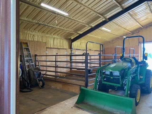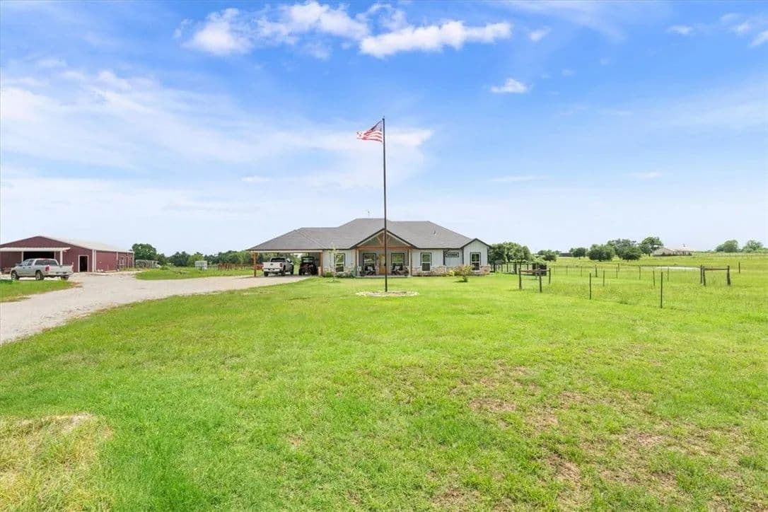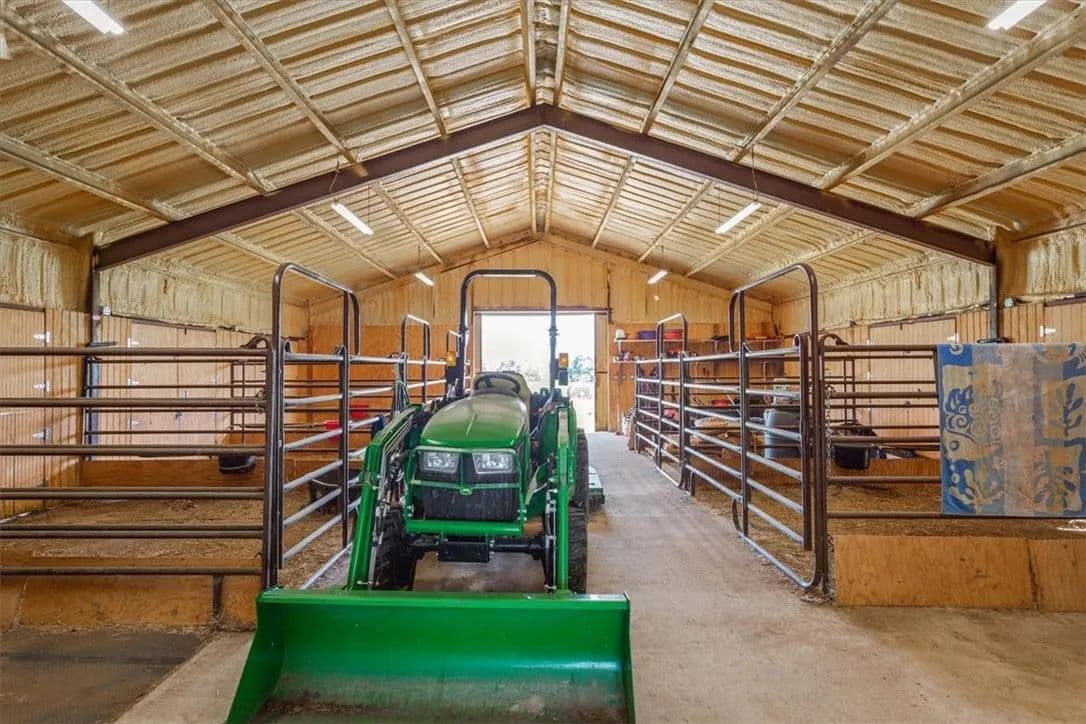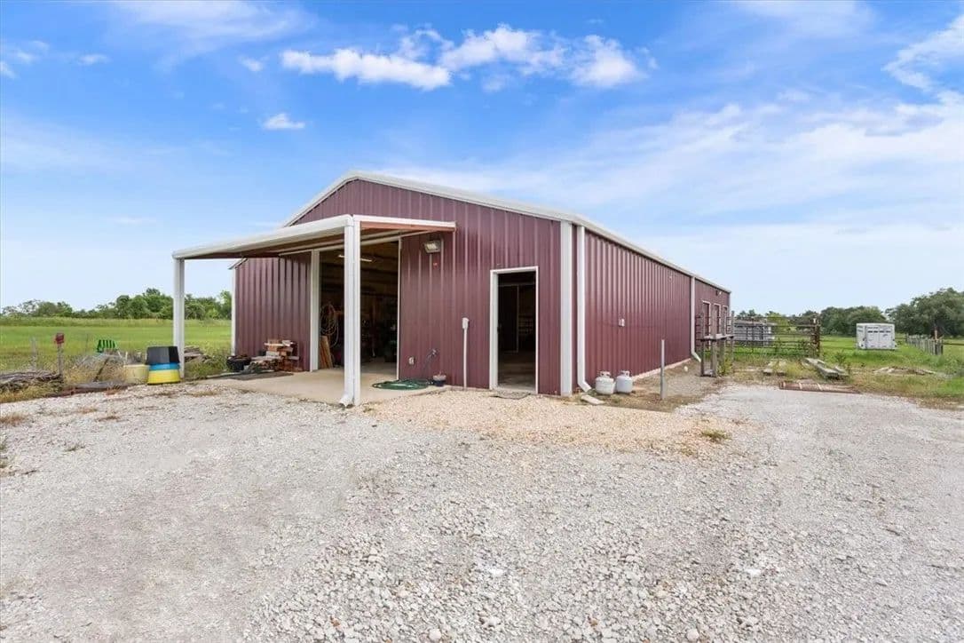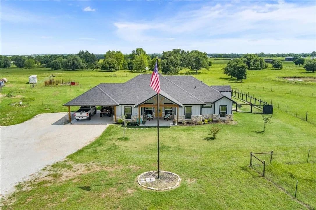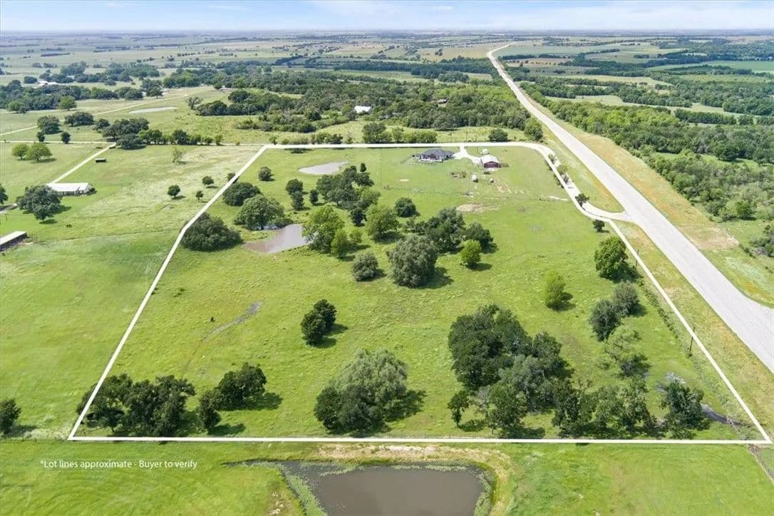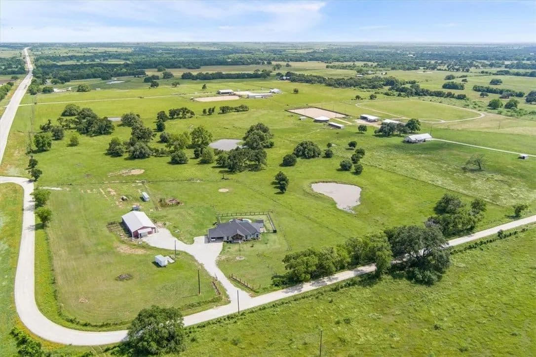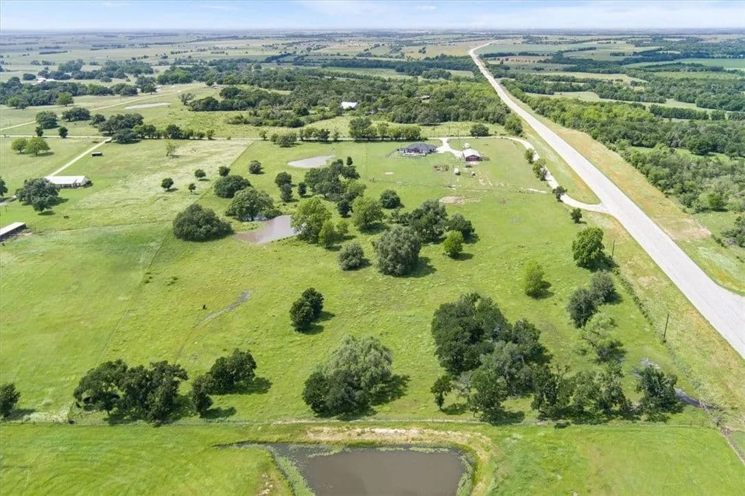 Situated virtually equidistant between Waco and Temple on US 77 is a modern rustic house on approximately 20 acres near Chilton, Texas. Completed in 2022 the interior features an open plan great room (combined living room, kitchen, and dining area) with a view of mature trees and gently rolling pasture land. Inside, the split floor plan separates the primary ensuite from the secondary bedrooms and bath providing privacy and comfort for both residents and guests. This tract is currently operating as a ranch raising registered black angus and includes a barn with six stalls, a wash rack and grooming stall, and a shop with a full bath. The property is fully fenced (combination of smooth wire and cross field fence with barbed wire on top) and has two stock ponds. The land is lightly wooded with a mixture of live oak, pecan, post oak, and mesquite. The lush pasture is coastal grass on a mixture of sandy loam and black land prairie soil.