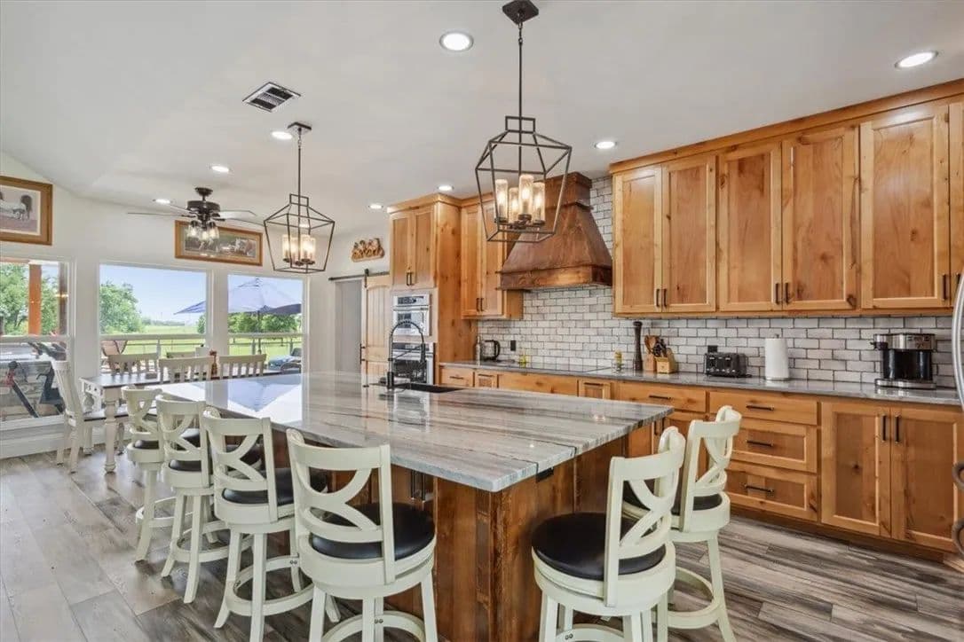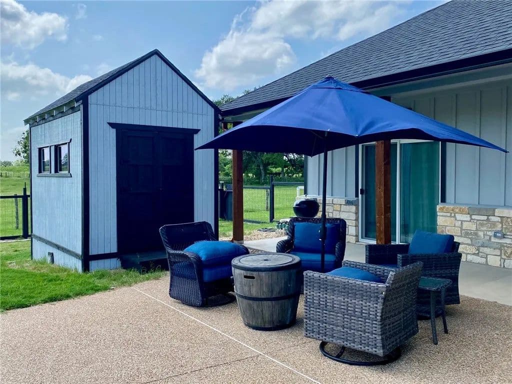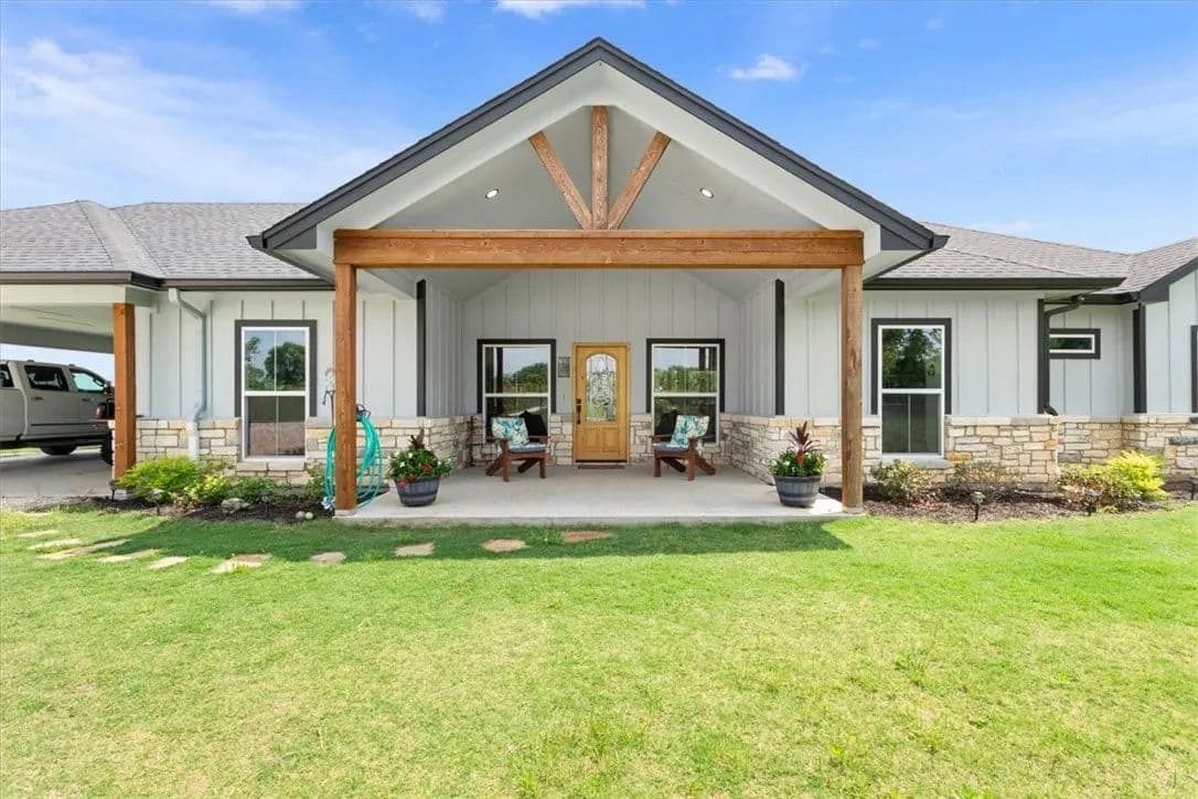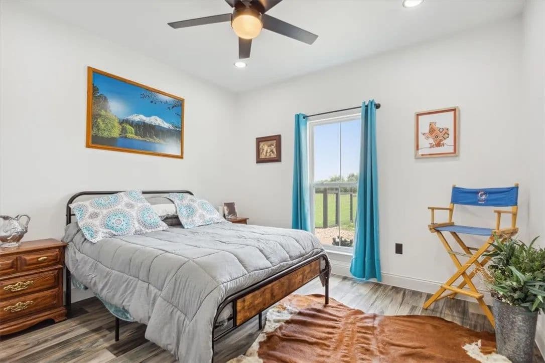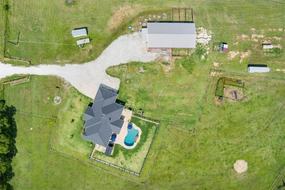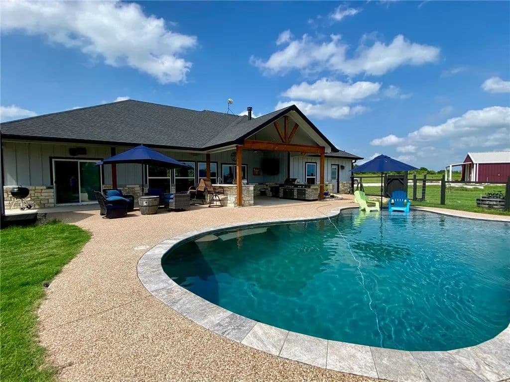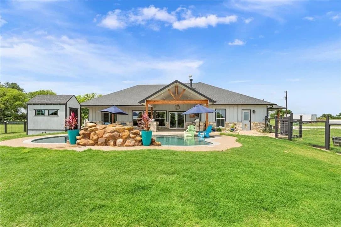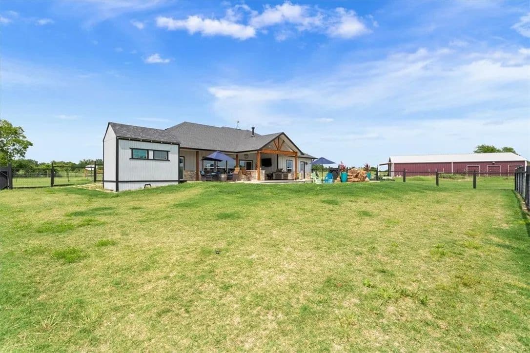 Situated virtually equidistant between Waco and Temple on US 77 is a modern rustic house on approximately 20 acres near Chilton, Texas. Completed in 2022 the interior features an open plan great room (combined living room, kitchen, and dining area) with a view of mature trees and gently rolling pasture land. Inside, the split floor plan separates the primary ensuite from the secondary bedrooms and bath providing privacy and comfort for both residents and guests. This tract is currently operating as a ranch raising registered black angus and includes a barn with six stalls, a wash rack and grooming stall, and a shop with a full bath. The property is fully fenced (combination of smooth wire and cross field fence with barbed wire on top) and has two stock ponds. The land is lightly wooded with a mixture of live oak, pecan, post oak, and mesquite. The lush pasture is coastal grass on a mixture of sandy loam and black land prairie soil.