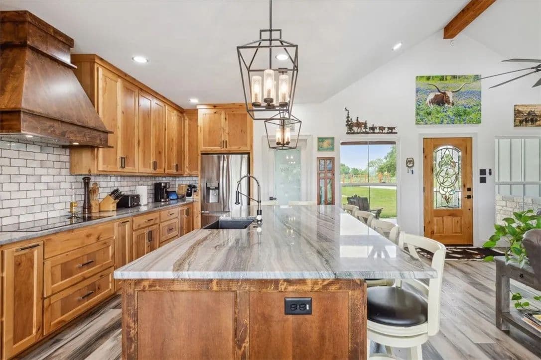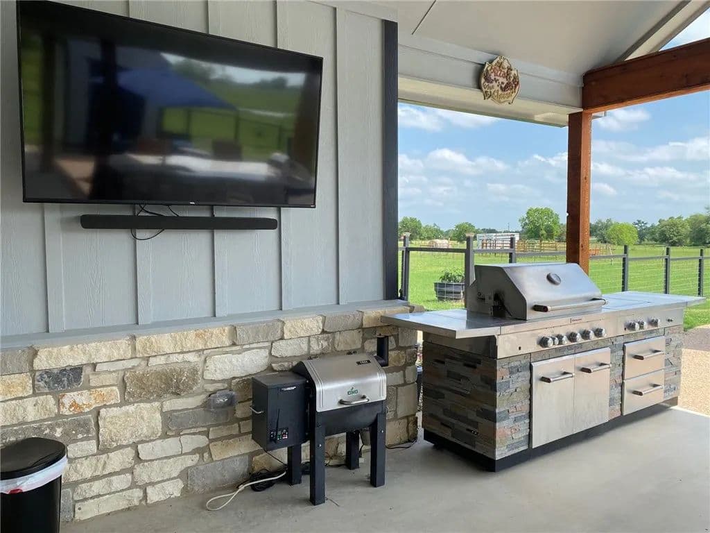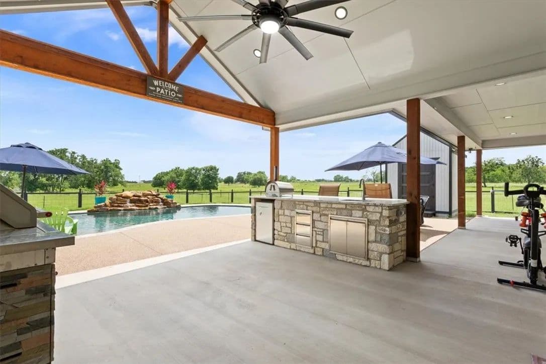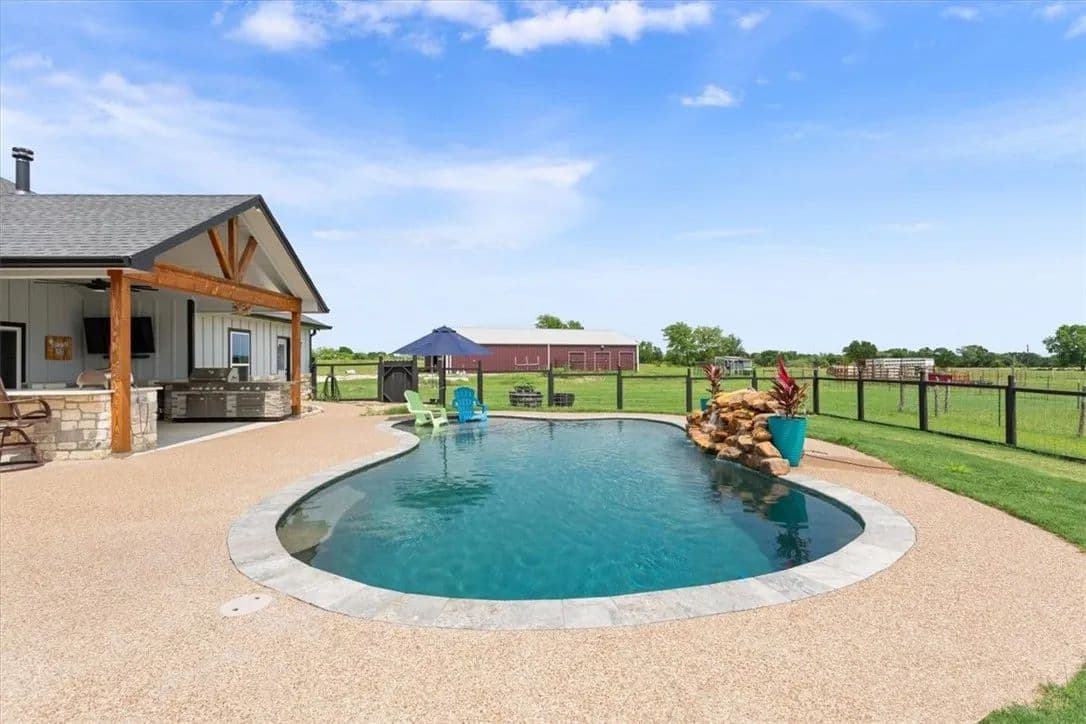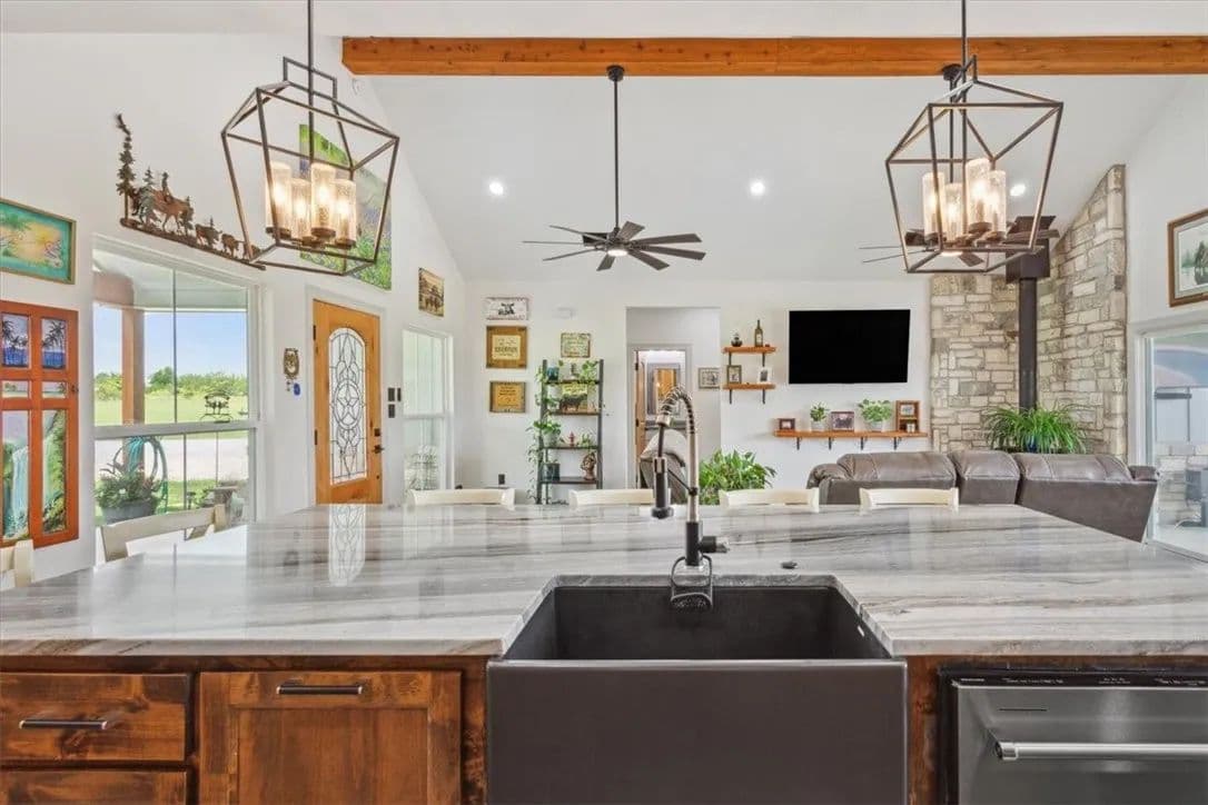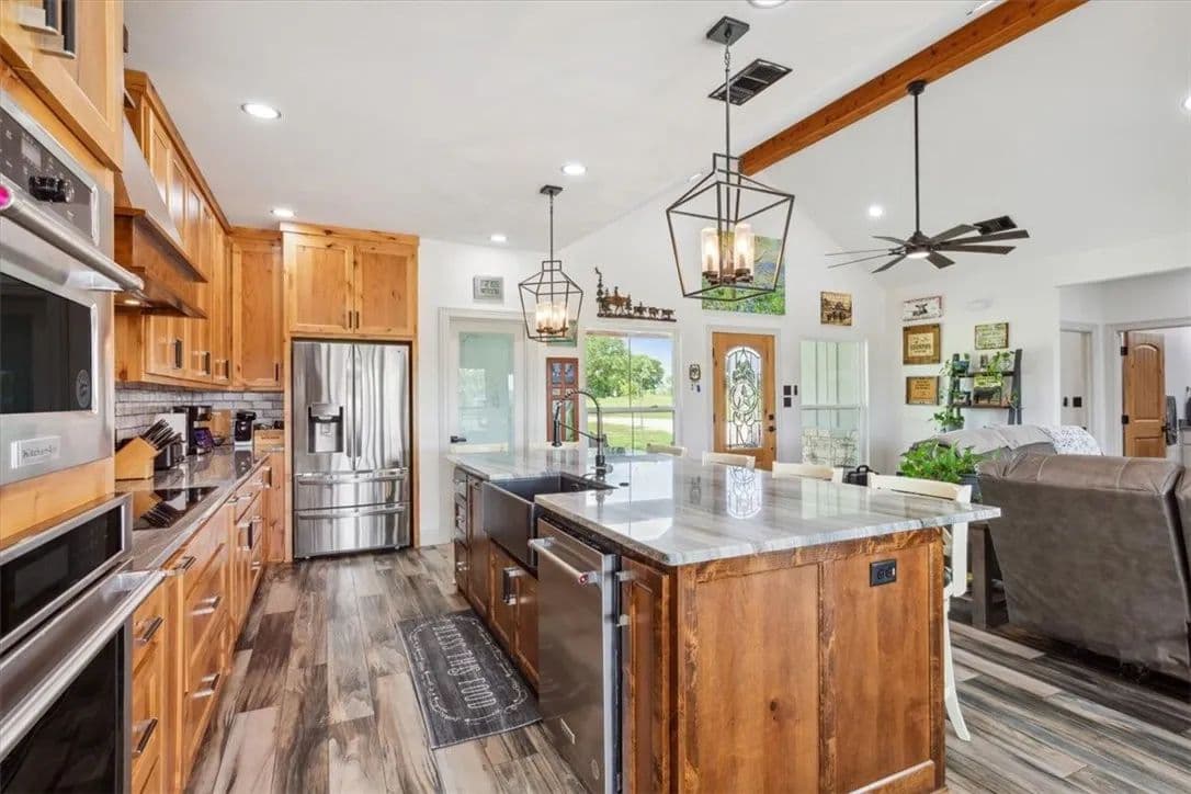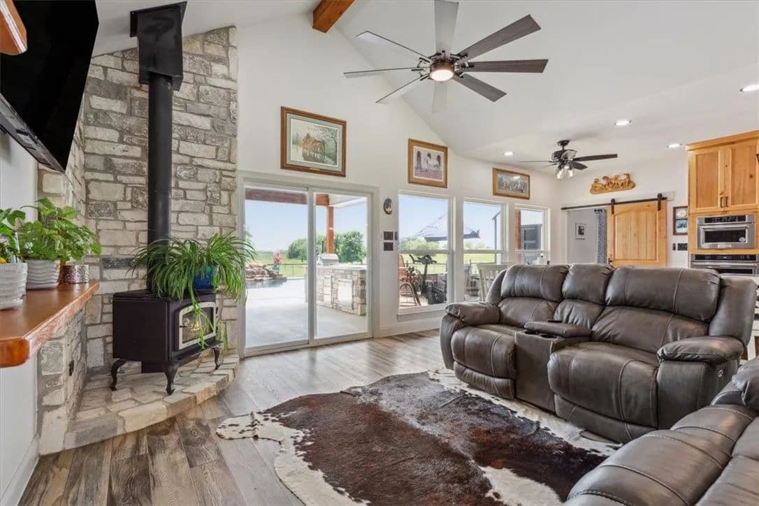 Situated virtually equidistant between Waco and Temple on US 77 is a modern rustic house on approximately 20 acres near Chilton, Texas. Completed in 2022 the interior features an open plan great room (combined living room, kitchen, and dining area) with a view of mature trees and gently rolling pasture land. Inside, the split floor plan separates the primary ensuite from the secondary bedrooms and bath providing privacy and comfort for both residents and guests. This tract is currently operating as a ranch raising registered black angus and includes a barn with six stalls, a wash rack and grooming stall, and a shop with a full bath. The property is fully fenced (combination of smooth wire and cross field fence with barbed wire on top) and has two stock ponds. The land is lightly wooded with a mixture of live oak, pecan, post oak, and mesquite. The lush pasture is coastal grass on a mixture of sandy loam and black land prairie soil.