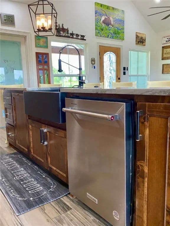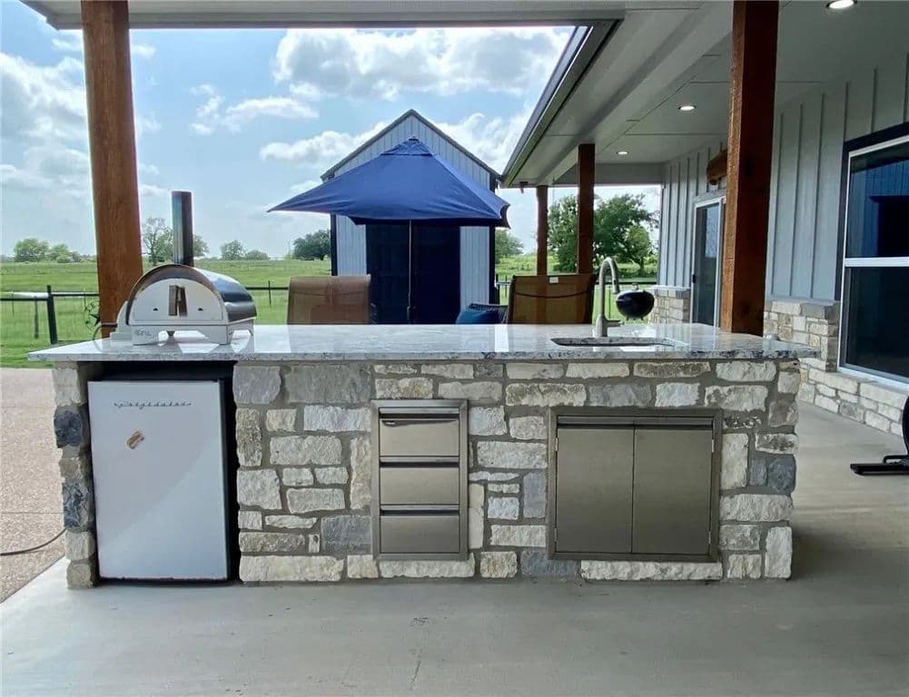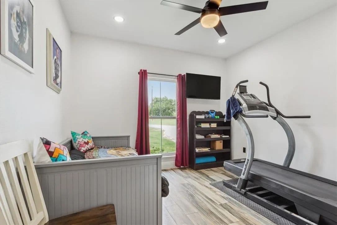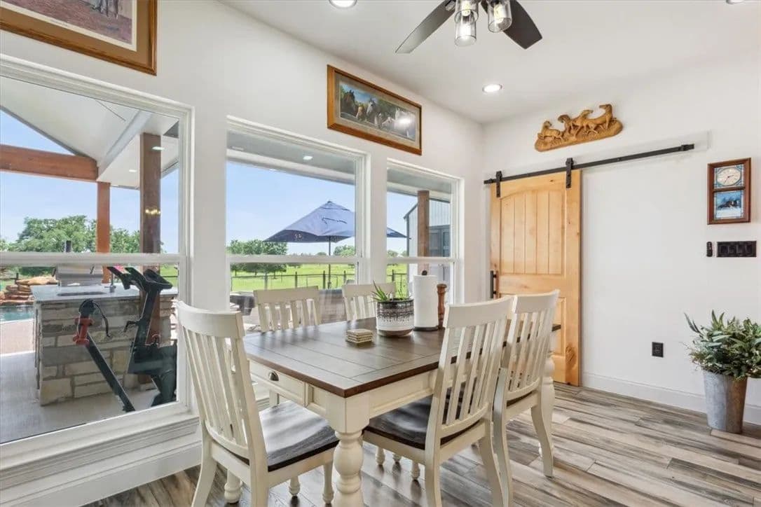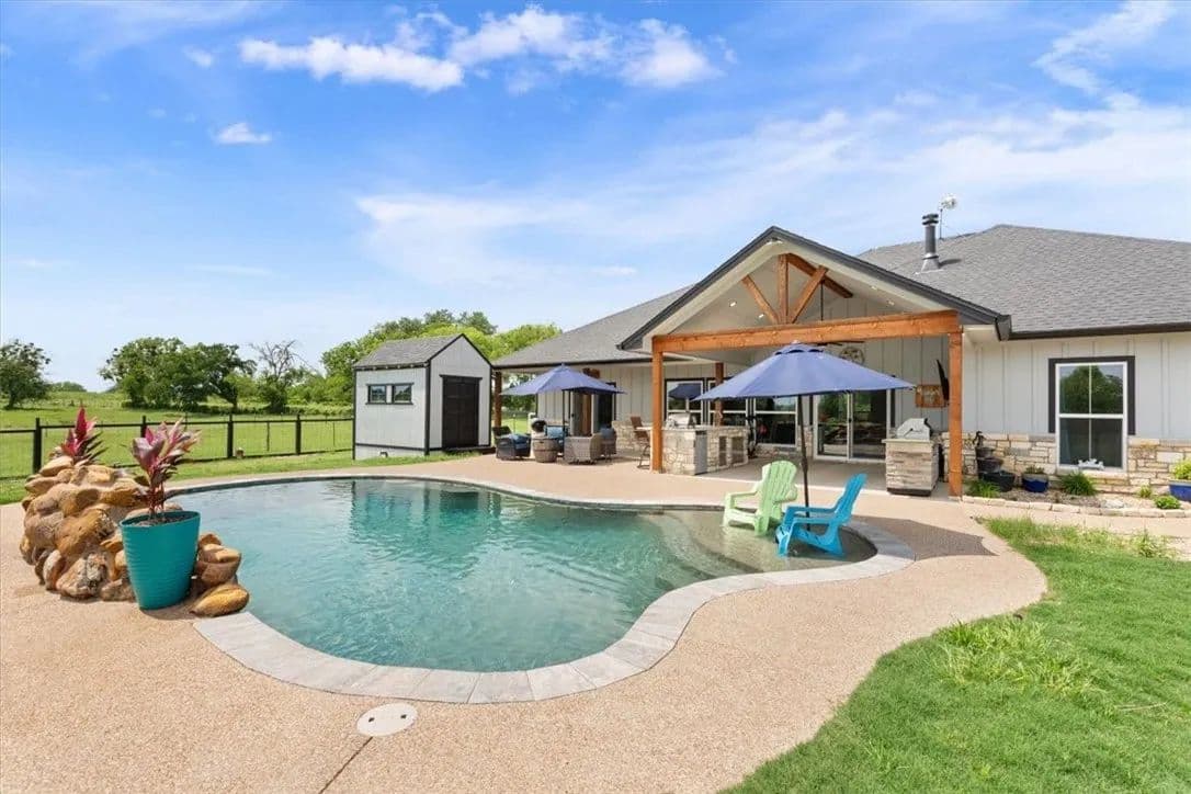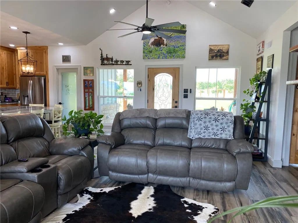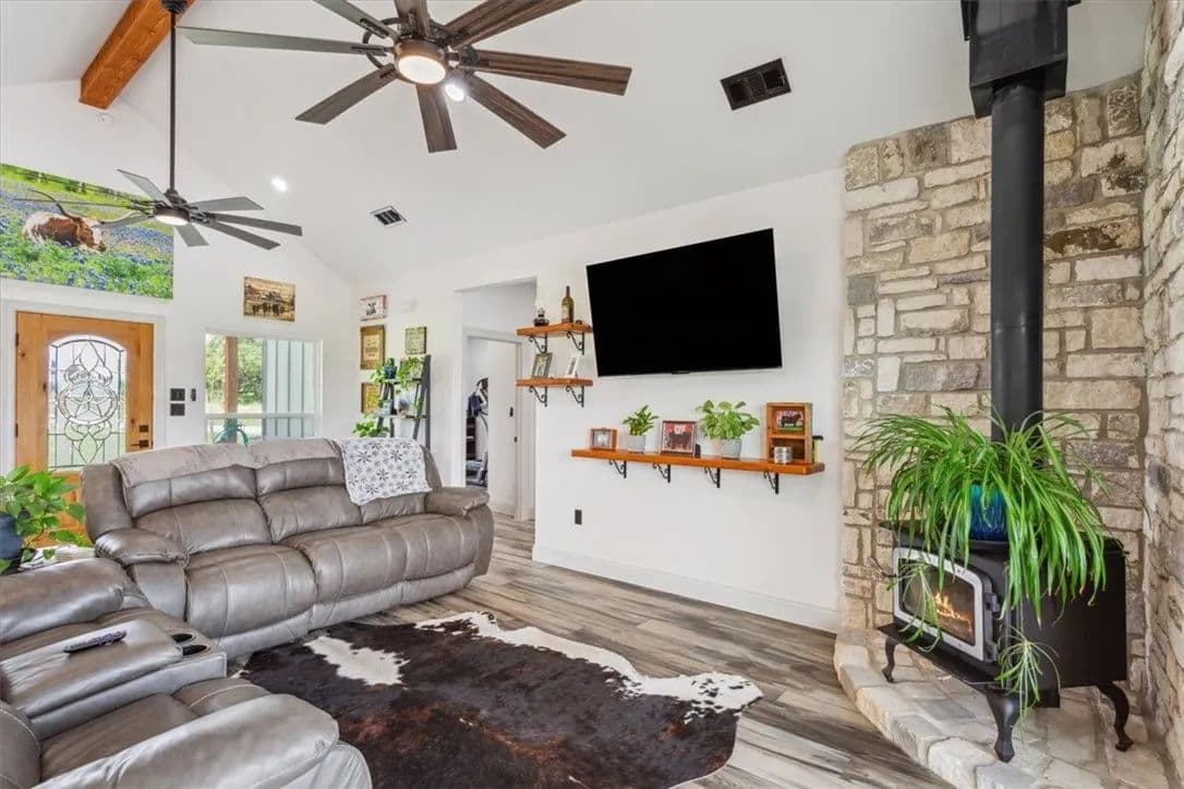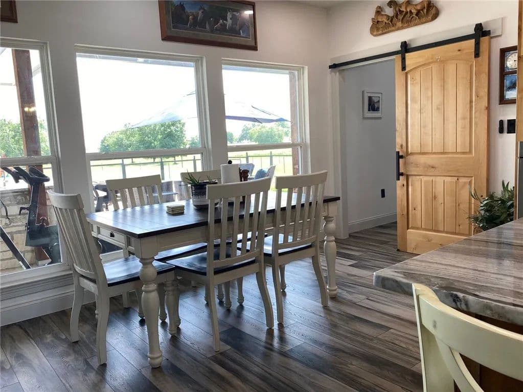 Situated virtually equidistant between Waco and Temple on US 77 is a modern rustic house on approximately 20 acres near Chilton, Texas. Completed in 2022 the interior features an open plan great room (combined living room, kitchen, and dining area) with a view of mature trees and gently rolling pasture land. Inside, the split floor plan separates the primary ensuite from the secondary bedrooms and bath providing privacy and comfort for both residents and guests. This tract is currently operating as a ranch raising registered black angus and includes a barn with six stalls, a wash rack and grooming stall, and a shop with a full bath. The property is fully fenced (combination of smooth wire and cross field fence with barbed wire on top) and has two stock ponds. The land is lightly wooded with a mixture of live oak, pecan, post oak, and mesquite. The lush pasture is coastal grass on a mixture of sandy loam and black land prairie soil.