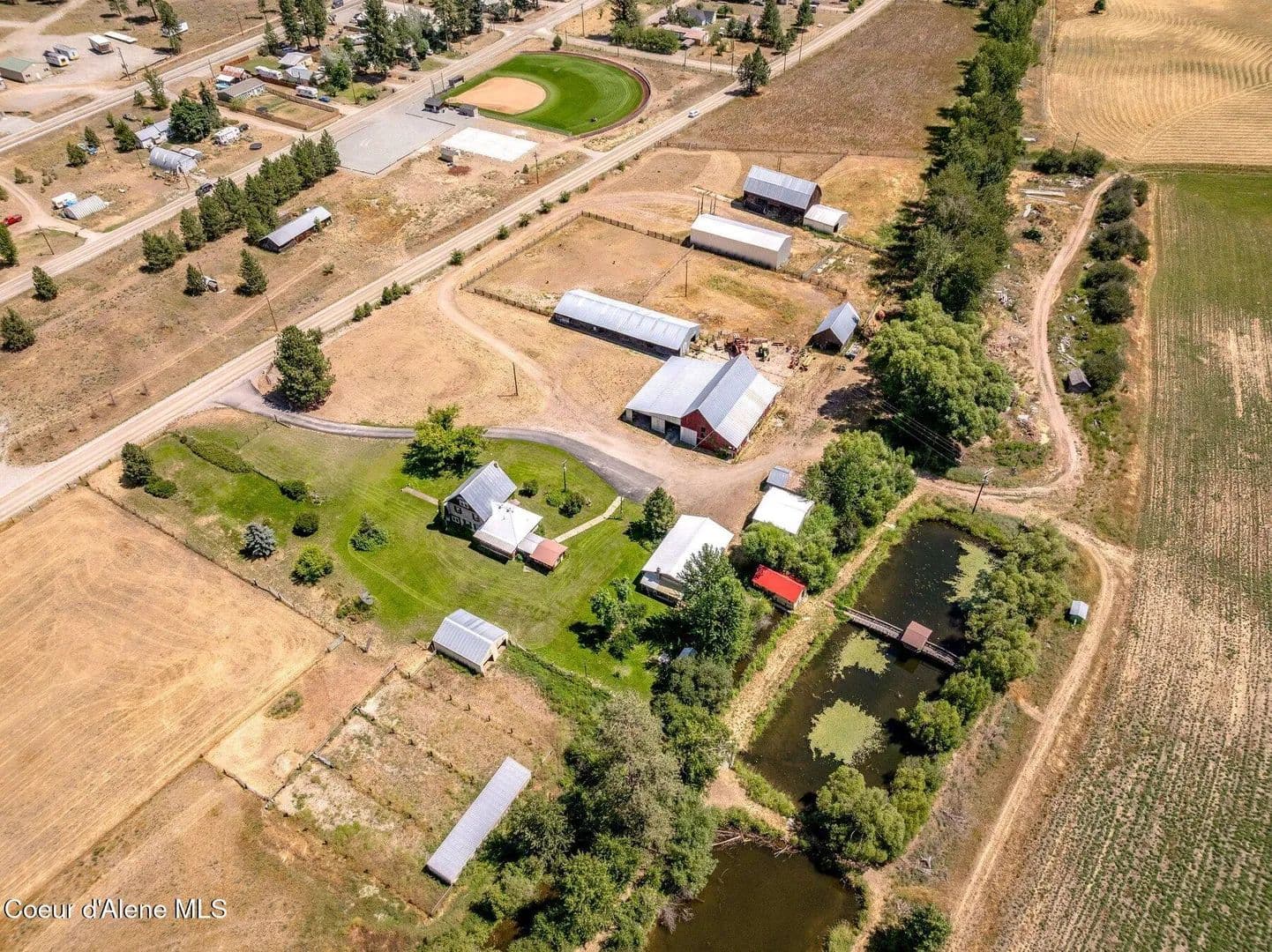 The setting captures panoramic views of Mount Spokane and Hoodoo Mountain, with expansive skies and pastoral serenity in every direction. Fourteen outbuildingsincluding barns, garages, a machine shop, loafing shed, hay barns, and a well houseprovide substantial infrastructure for agricultural operations, equipment storage, livestock, events, or agritourism ventures. With no CCRs or HOAs, your vision remains unrestricted.