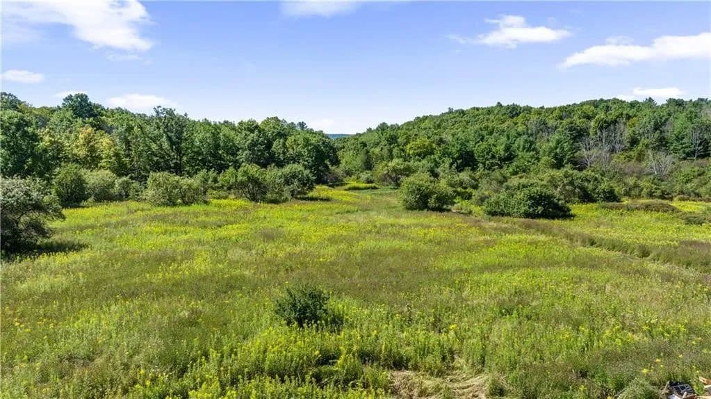 Here is your chance to own 20 Acres of peaceful and private land with unmatched panoramic views of the Bristol Hills. Scenic trails wind throughout large grassy meadows and a creek flows in the lower part of the property with multiple waterfalls making this a nature lover’s paradise. Check out the camping spot where you can sit by a fire while you listen to the waterfall! On top of the charm this property has a connection for public water, has had a perc test approving a conventional septic system, and a 25’x30’ garage providing ample storage. The building features high ceilings, wide access doors, and electric. This property offers a rare opportunity to own a treasured piece the Finger Lakes where your opportunities are endless! Debris piles will be removed prior to closing!