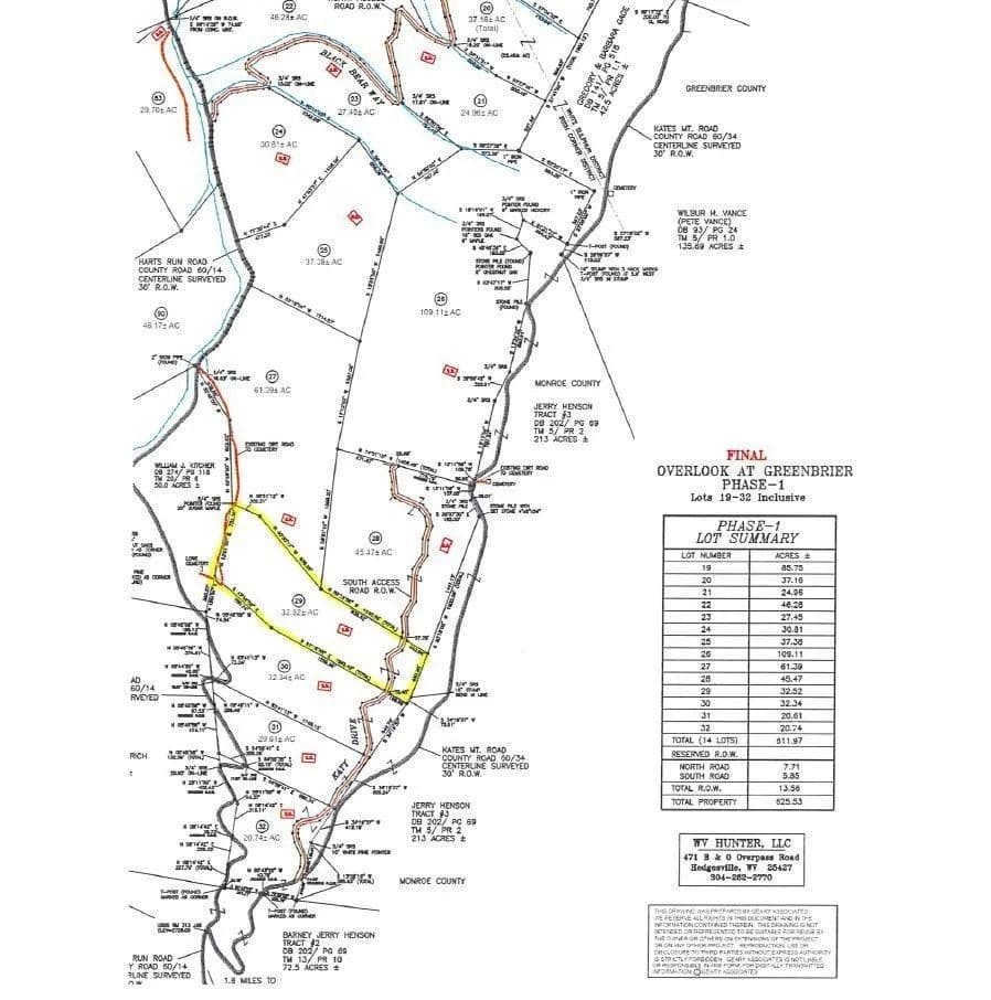 Overlook at the Greenbrier Lot 29 -Connect with nature on this 32.52 acre parcel offers long range views and great building sites for your new home in this gated community. Property provides privacy but close enough to the Greenbrier Hotel, White Sulphur Springs, Lewisburg and all the amenities these towns have to offer. Some restrictions do apply. There is also power close to the property. Very close to Gbr. State Forest, swimming pool, disc course, camping, Gbr River Trail. Owner financing available. The lot was recently marked with markers and ribbons so that it is easy to find the corners and boundaries. Mineral rights do not convey. Owner finance available-15% down, 5.25% with 10 year balloon pay out to qualified buyers.