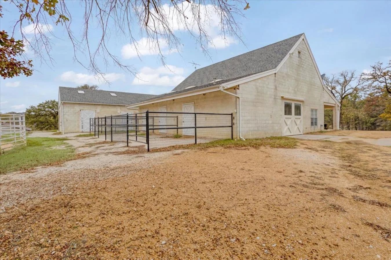 This 10 plus acre equestrian estate in Pilot Point is the kind of property buyers wait for. A ranch built with intention, quality craftsmanship and the true spirit of Texas horse country. Set among mature trees with a layout built for smooth daily operations, it offers a turnkey lifestyle for horse owners, trainers or anyone seeking space, privacy and a ranch that simply works from day one. The main residence features 3 bedrooms, 2 full baths and 2 half baths with warm inviting living spaces and wide views of the property. A covered breezeway leads to a private detached ensuite with its own garage ideal for guests extended family or a quiet office separate from the main home. Both the home and the barn are backed by dedicated Generac generators providing peace of mind during storms and guaranteeing horses stay comfortable year round. Reliability like this is rare and valuable in ranch ownership. The heated barn is built to professional standards with 10 double matted stalls with drainage, 6 oversized and 8 with no climb outdoor runs. Outfitted with Classic Equine Automatic Waterers and upgraded insulated plumbing. Plus a wash bay, med room, tack room, grooming area, fans and a barn office with private bath, every detail supports efficiency horse comfort and ease of management. A full 1 bedroom 1 bath barn apartment offers housing for staff guests or traveling trainers adding operational convenience and income potential. Outdoor features bring this ranch to an elite level. A custom 180 by 100 arena designed with wind screens, engineered drainage and multi discipline footing by Kiser allows dependable riding surfaces in all seasons. A 60 foot round pen with drainage quality footing and lighting ensures usability year round. Seven no climb turnout pens one with double loafing shed along with multiple large pastures and a tree lined riding trail surrounding the pens create an ideal environment for both training and relaxation. A spacious multipurpose equipment barn keeps the ranch running efficiently with room for tractors, implements, trailers, an enclosed shop, a separate workshop, and an optional bulk shavings bin all under one expansive roof. Organization saves time, reduces workload, and preserves sanity for any horse operation. Two private gated entries offer convenience, privacy, and smooth trailer flow. With Lake Ray Roberts equestrian trails less than five minutes away and approximately 45 minutes to Fort Worth, along with easy access to Oklahoma City, and major event arenas in-between, this location puts you in the center of top riding and competition country. This property blends lifestyle, capability, and long term value. It was built with intention, function and pride. A ranch designed for someone who wants the lifestyle now without years of infrastructure building and expense. A place you pull into and feel proud to call home.