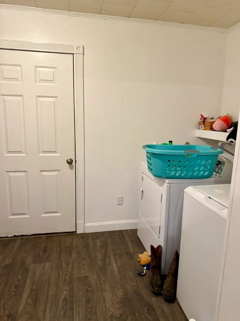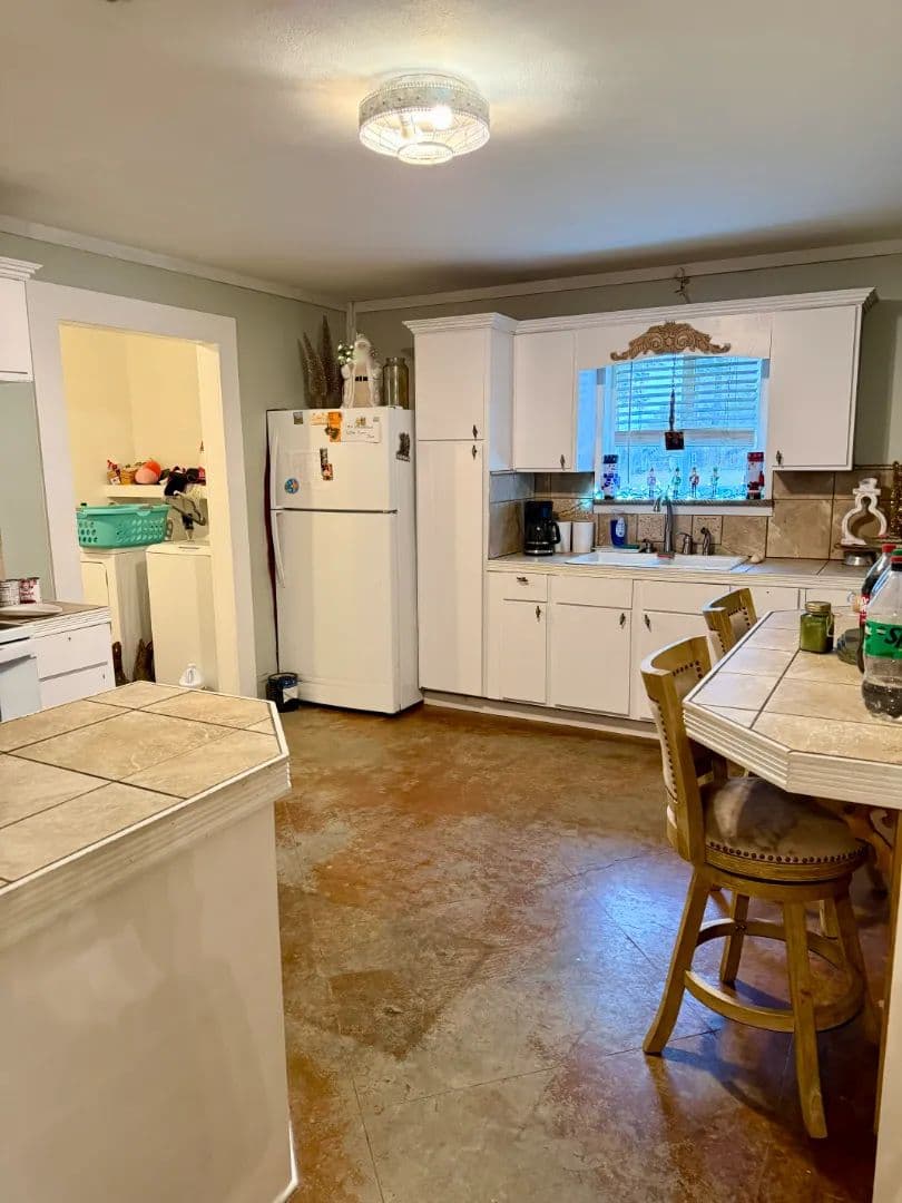 The kitchen is equipped with all-electric appliances and flows seamlessly into the dining and living areas, ideal for everyday meals or entertaining. A spacious laundry room with an additional utility area provides extra storage and convenience.