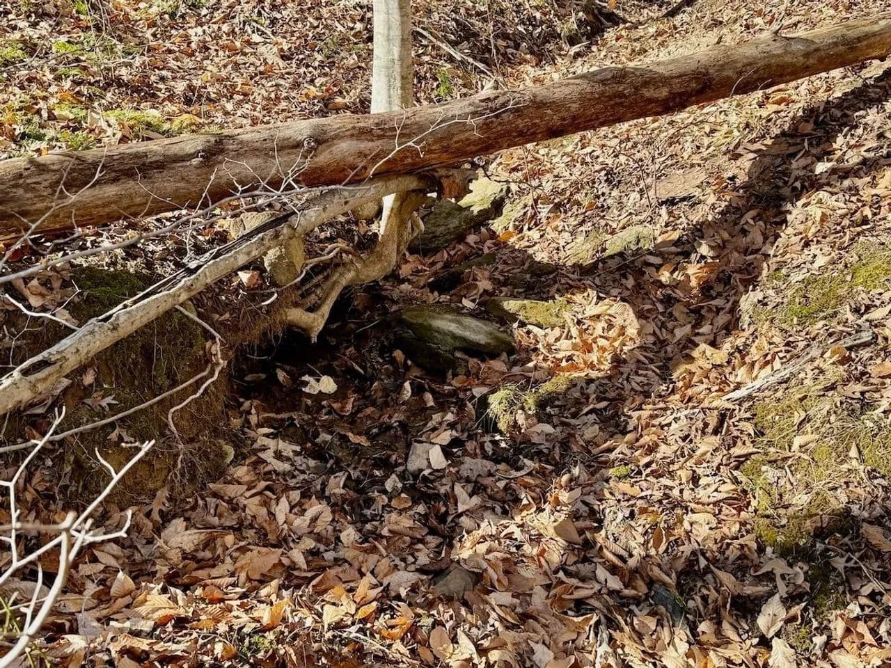 moving through towering beech, white oak, and other hardwood trees, creating a truly tranquil atmosphere. Rolling terrain and natural rock outcroppings add character and visual interest, while abundant deer sign and the creek corridor