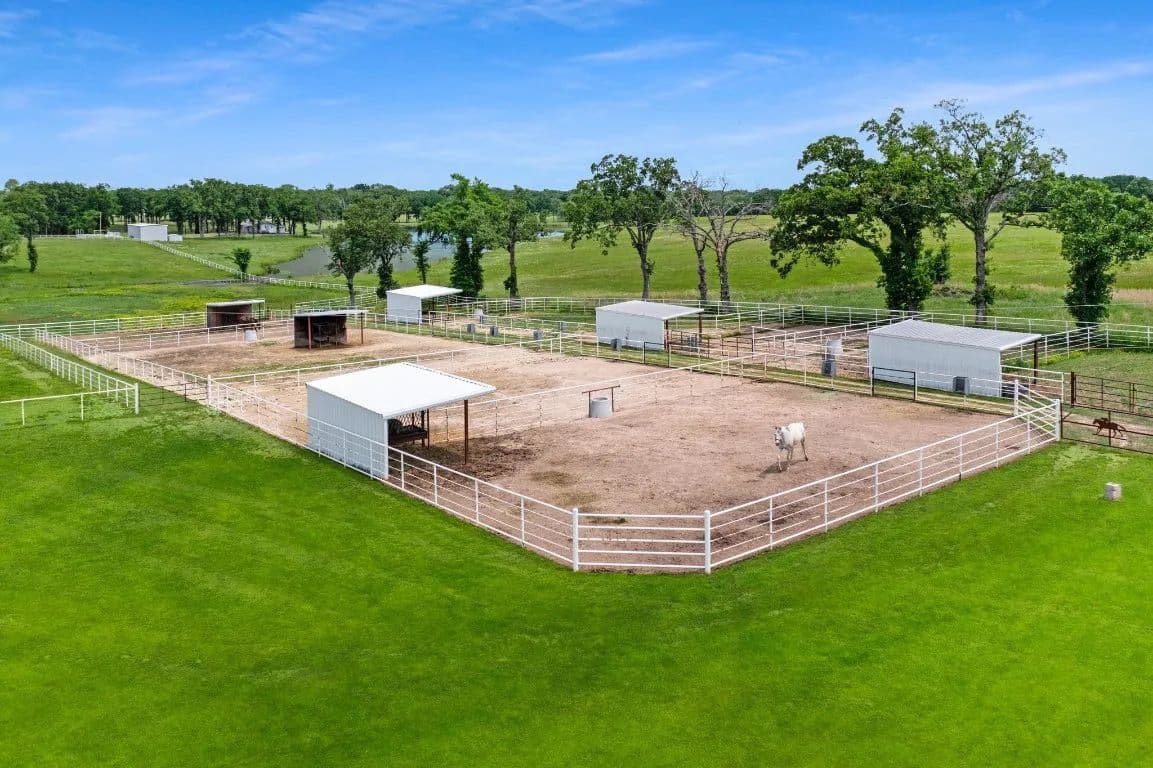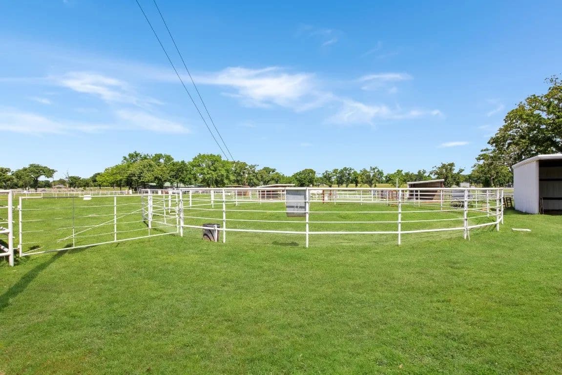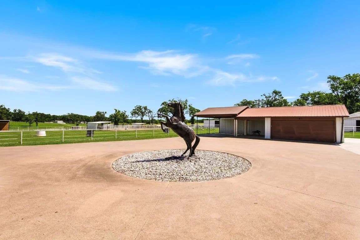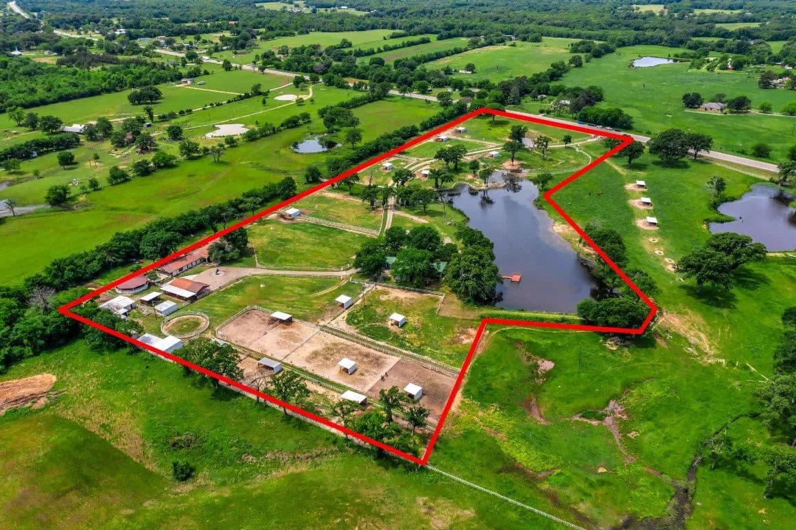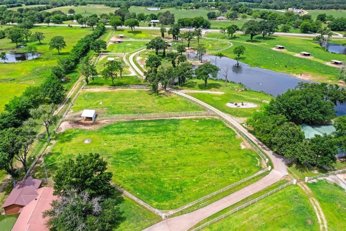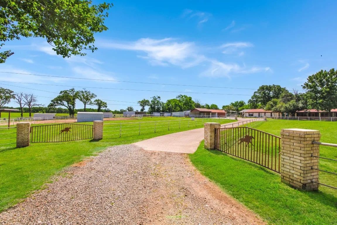 The Circle C Ranch, a 17-acre property, is now available for sale, perfect for horse enthusiasts seeking a profitable investment.The ranch welcomes visitors with a custom gate and a picturesque driveway, lined with top rail pipe fencing and two rock stone bridges. The main home is custom-built, featuring a metal roof, 3 bedrooms, 3.5 bathrooms, a garage, and a carport.The backyard is a recreational haven with a pool, outdoor grill, fireplace, putting green, and a dog run. The property's landscape boasts 2 ponds and a lake, with facilities for horses including a covered round pen, a main barn with 4 stalls, wash rack, tack room, 3 open barns, open round pen, 14 loafing sheds, and 18 paddocks with automatic city water sources.The ranch also features an RV hookup, equipment shed, hay barn, and a chicken coop. A dock overlooking the lake caters to fishing enthusiasts. The ranch offers ample amenities and income opportunities, making it an ideal investment for horse lovers and competitors.
