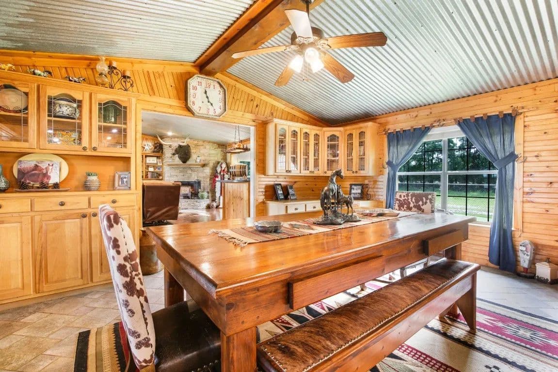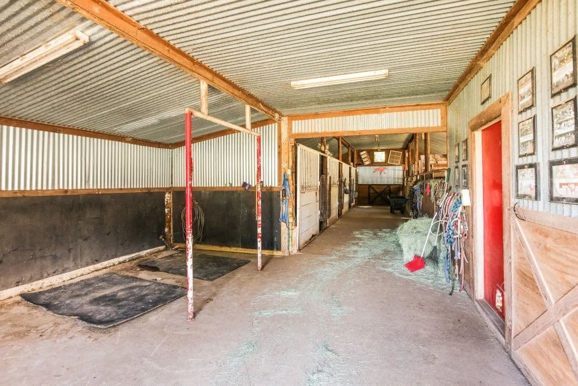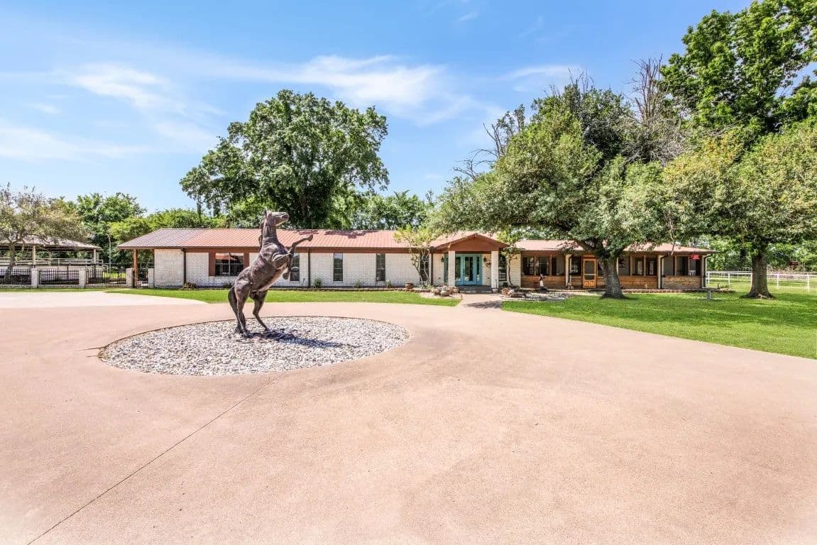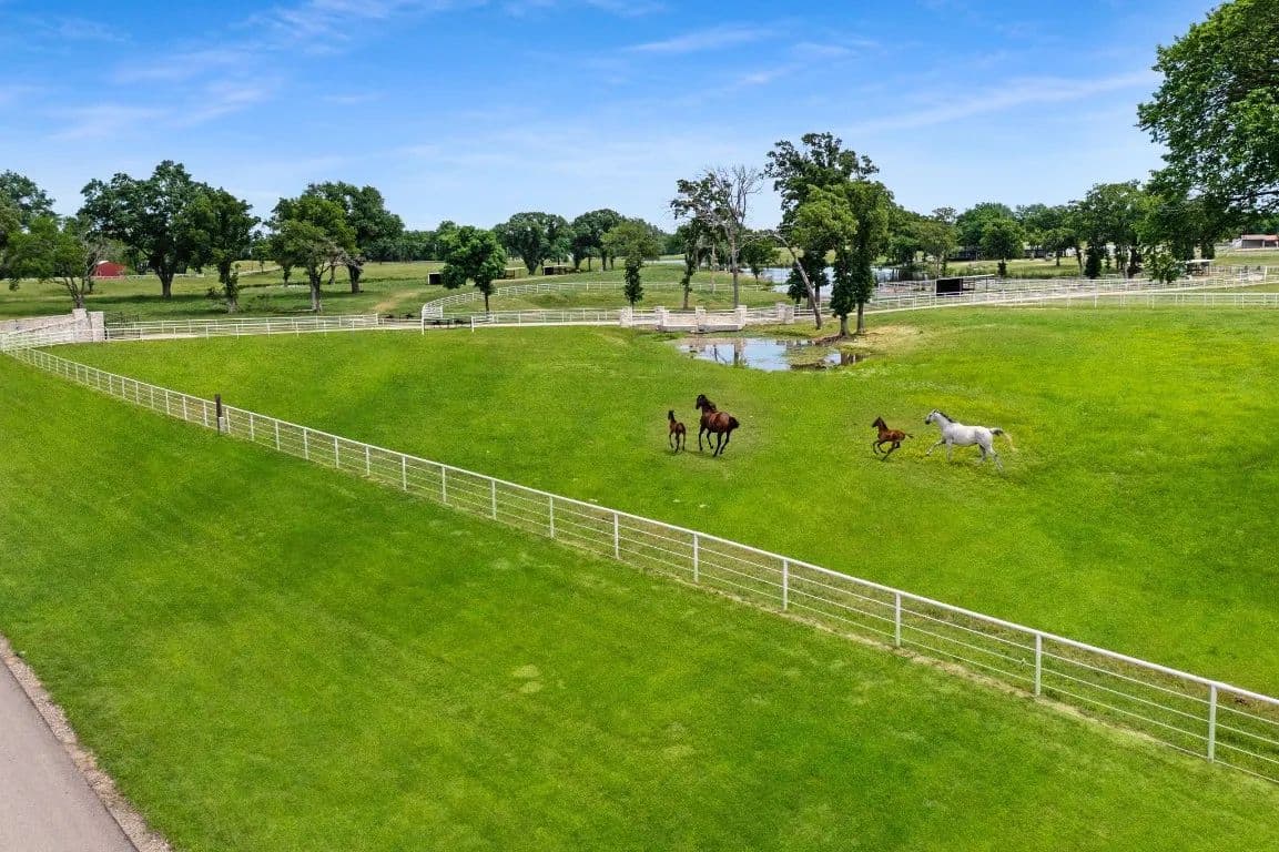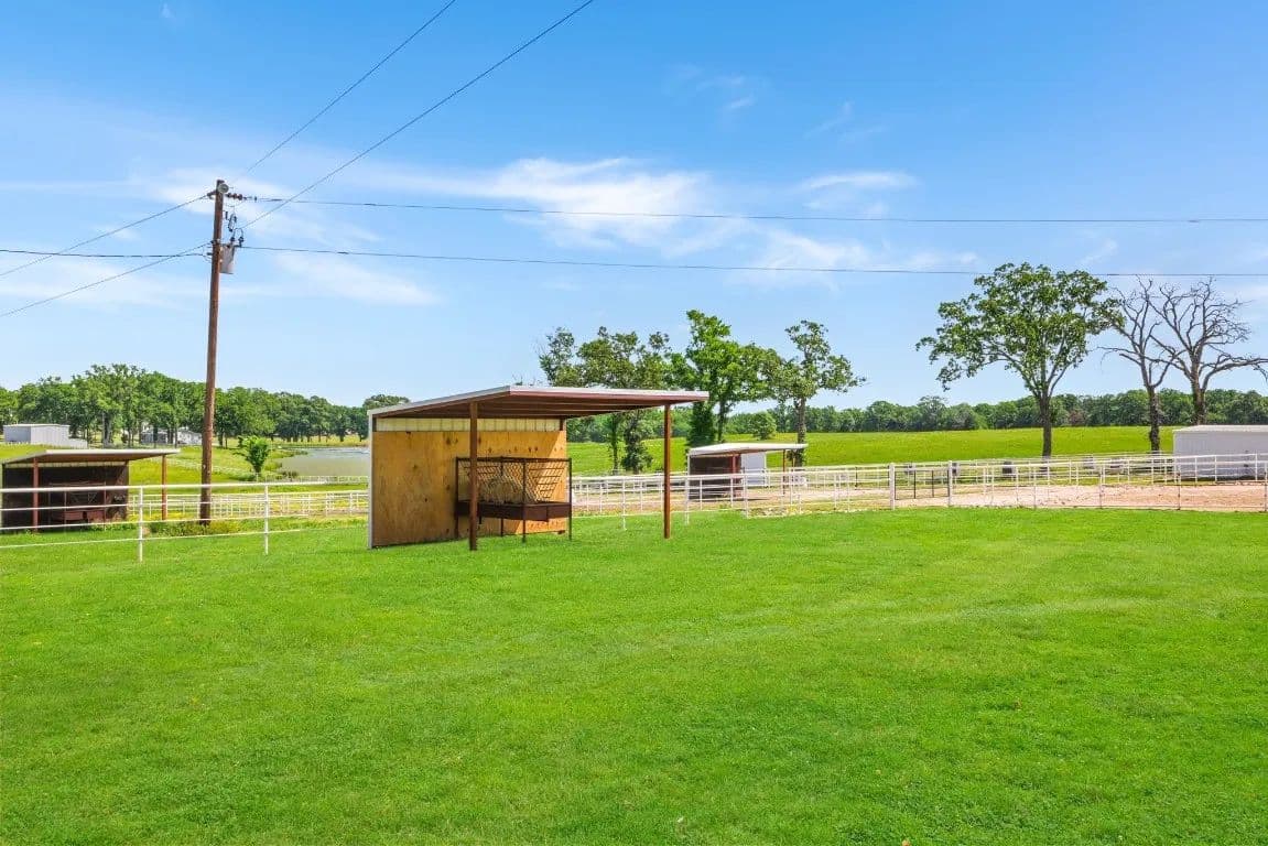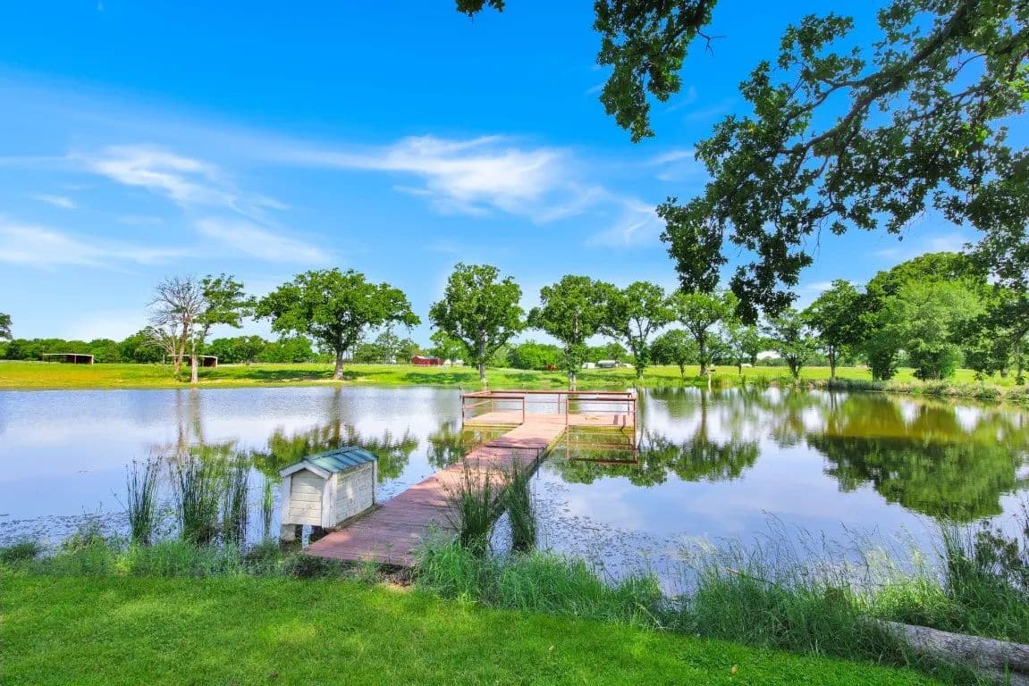 The Circle C Ranch, a 17-acre property, is now available for sale, perfect for horse enthusiasts seeking a profitable investment.The ranch welcomes visitors with a custom gate and a picturesque driveway, lined with top rail pipe fencing and two rock stone bridges. The main home is custom-built, featuring a metal roof, 3 bedrooms, 3.5 bathrooms, a garage, and a carport.The backyard is a recreational haven with a pool, outdoor grill, fireplace, putting green, and a dog run. The property's landscape boasts 2 ponds and a lake, with facilities for horses including a covered round pen, a main barn with 4 stalls, wash rack, tack room, 3 open barns, open round pen, 14 loafing sheds, and 18 paddocks with automatic city water sources.The ranch also features an RV hookup, equipment shed, hay barn, and a chicken coop. A dock overlooking the lake caters to fishing enthusiasts. The ranch offers ample amenities and income opportunities, making it an ideal investment for horse lovers and competitors.