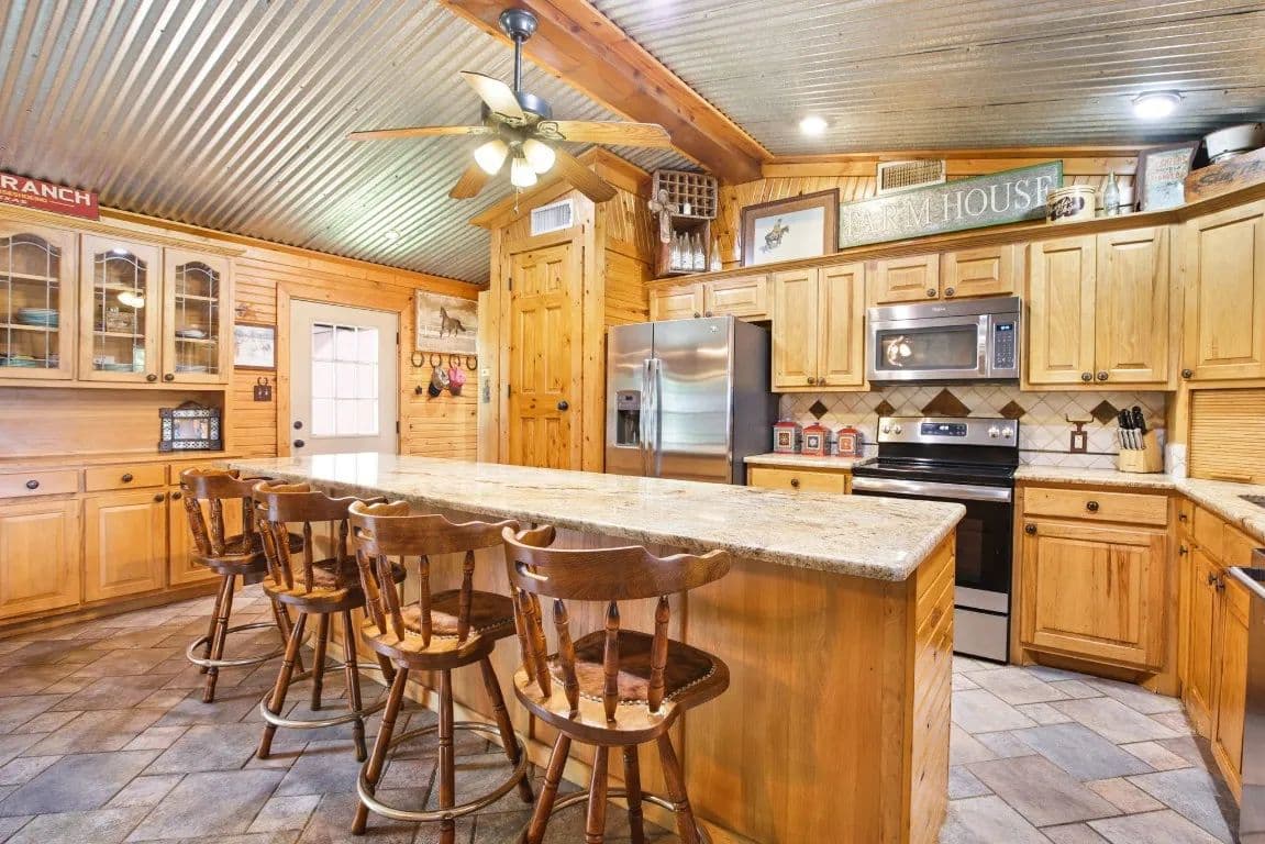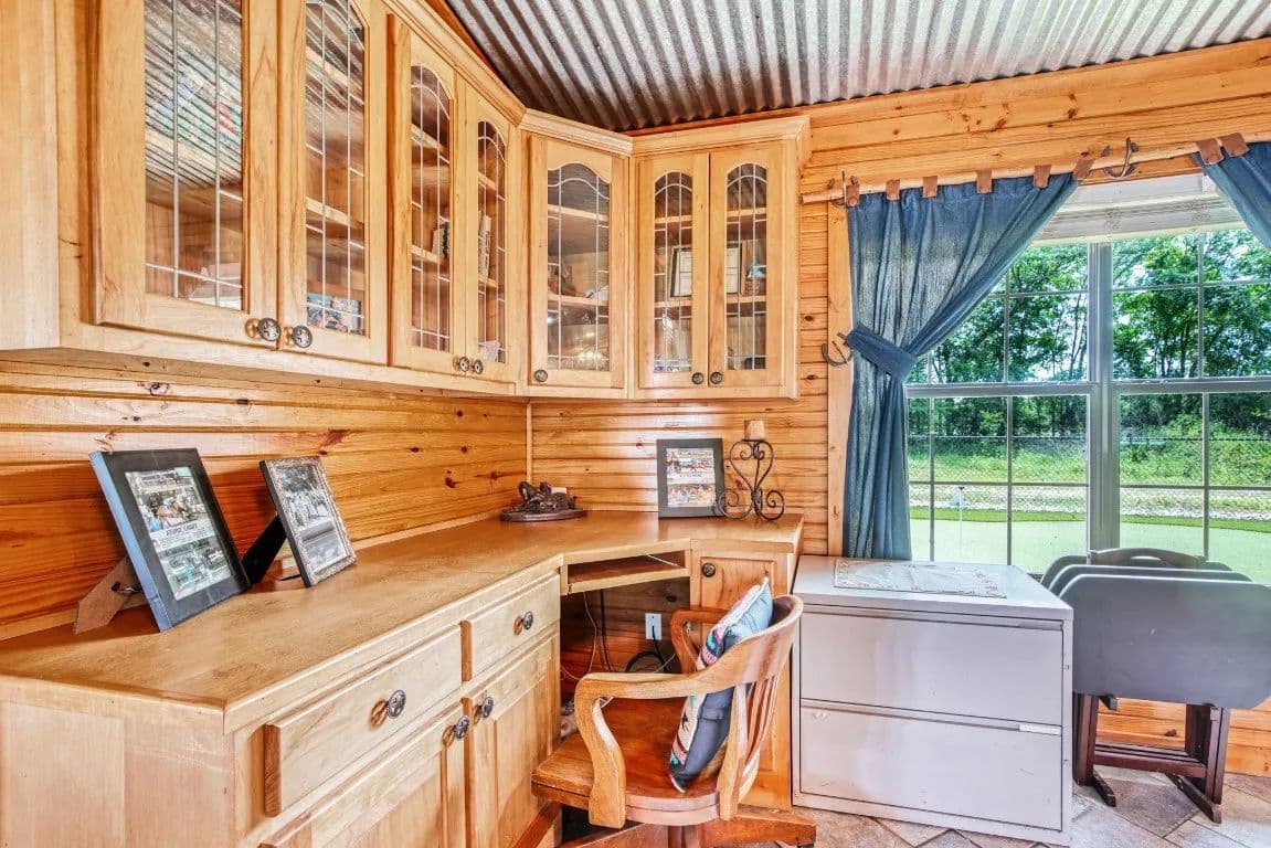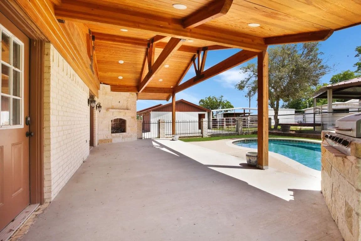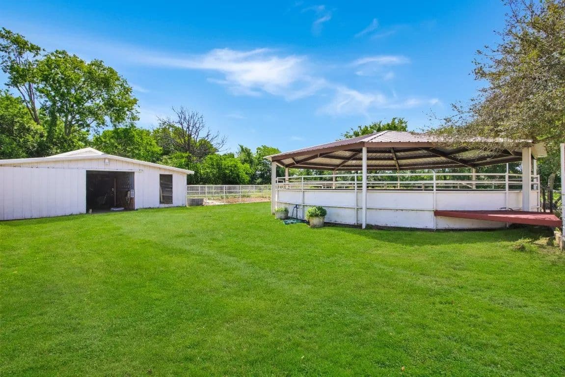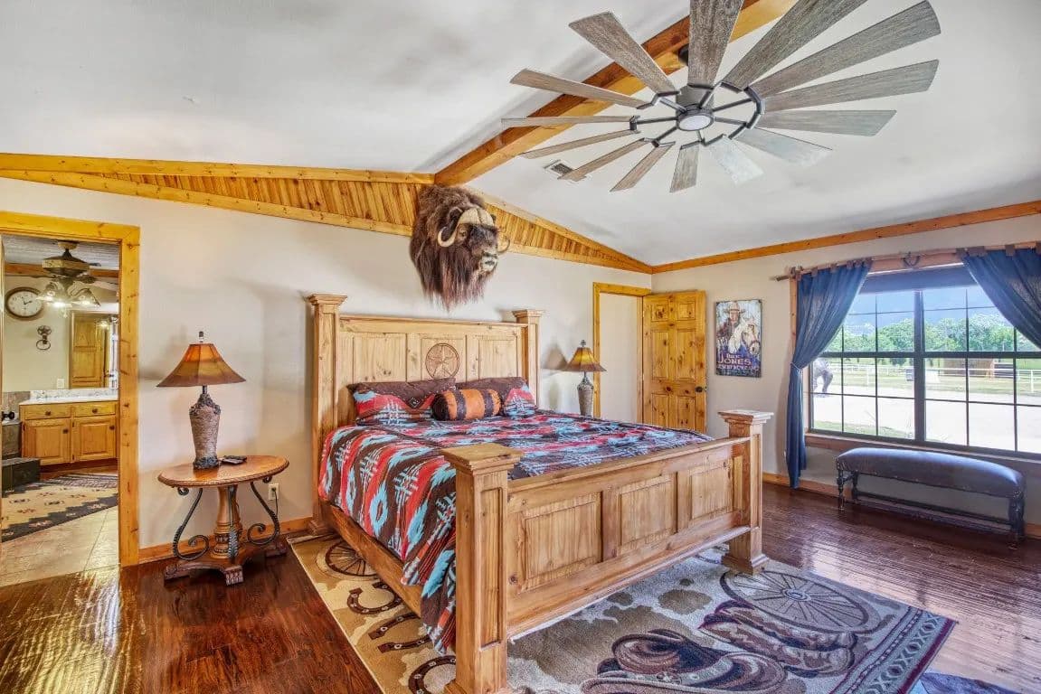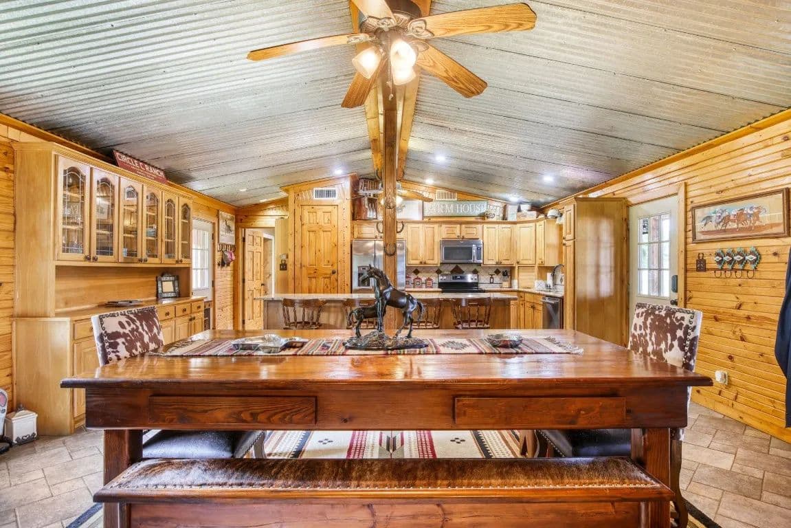 The Circle C Ranch, a 17-acre property, is now available for sale, perfect for horse enthusiasts seeking a profitable investment.The ranch welcomes visitors with a custom gate and a picturesque driveway, lined with top rail pipe fencing and two rock stone bridges. The main home is custom-built, featuring a metal roof, 3 bedrooms, 3.5 bathrooms, a garage, and a carport.The backyard is a recreational haven with a pool, outdoor grill, fireplace, putting green, and a dog run. The property's landscape boasts 2 ponds and a lake, with facilities for horses including a covered round pen, a main barn with 4 stalls, wash rack, tack room, 3 open barns, open round pen, 14 loafing sheds, and 18 paddocks with automatic city water sources.The ranch also features an RV hookup, equipment shed, hay barn, and a chicken coop. A dock overlooking the lake caters to fishing enthusiasts. The ranch offers ample amenities and income opportunities, making it an ideal investment for horse lovers and competitors.