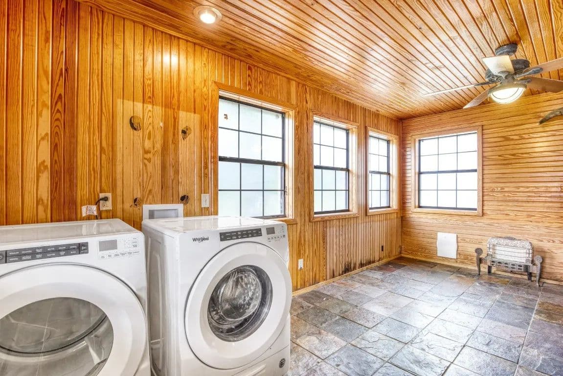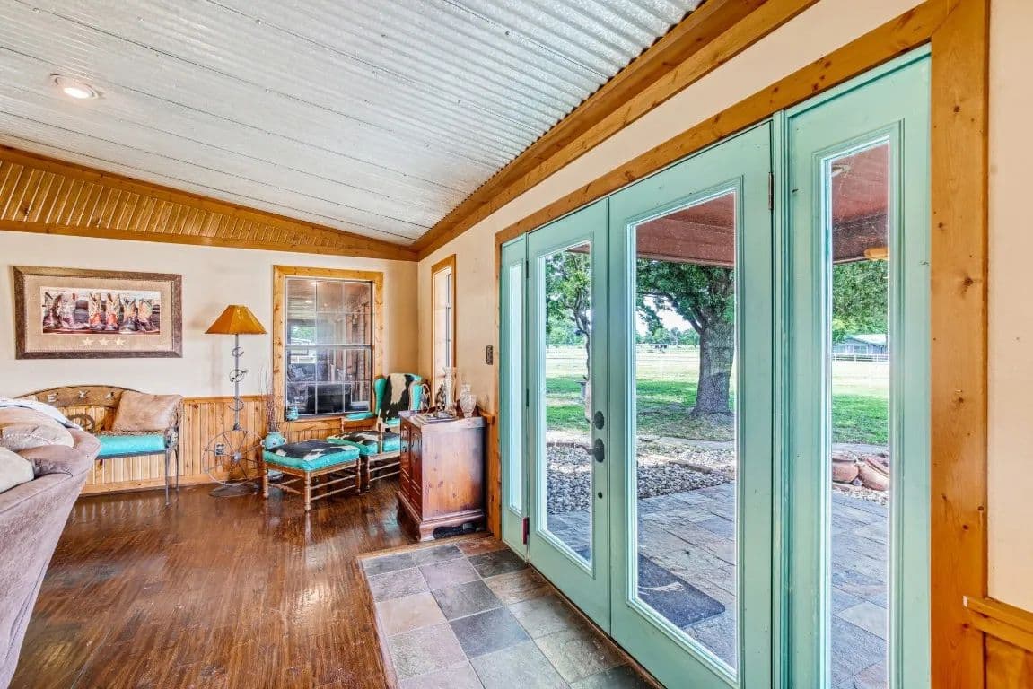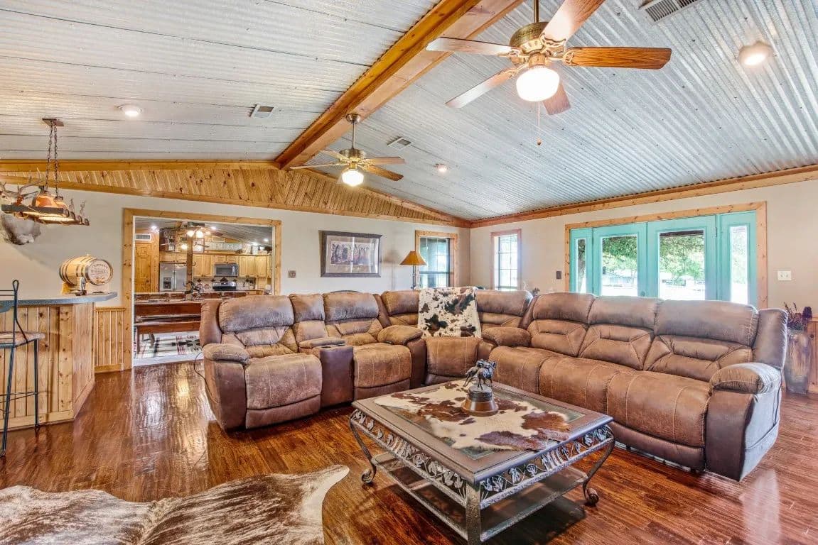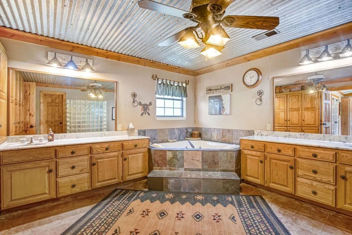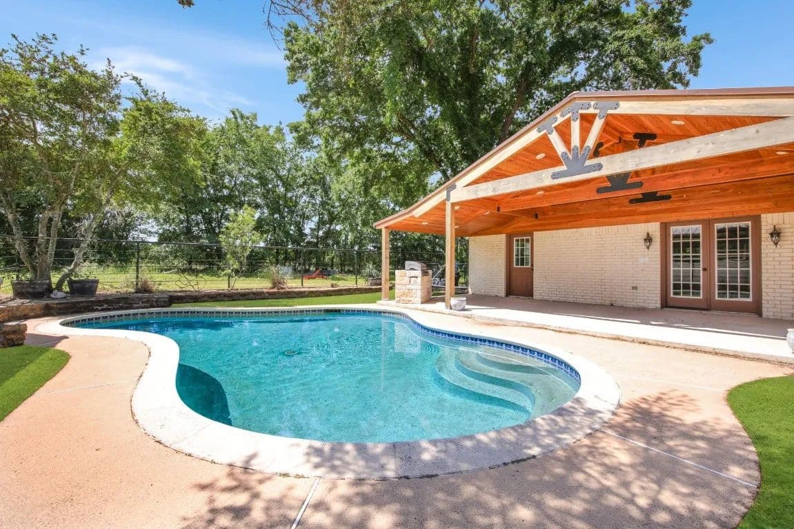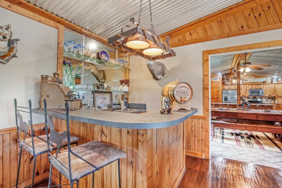The Circle C Ranch, a 17-acre property, is now available for sale, perfect for horse enthusiasts seeking a profitable investment.The ranch welcomes visitors with a custom gate and a picturesque driveway, lined with top rail pipe fencing and two rock stone bridges. The main home is custom-built, featuring a metal roof, 3 bedrooms, 3.5 bathrooms, a garage, and a carport.The backyard is a recreational haven with a pool, outdoor grill, fireplace, putting green, and a dog run. The property's landscape boasts 2 ponds and a lake, with facilities for horses including a covered round pen, a main barn with 4 stalls, wash rack, tack room, 3 open barns, open round pen, 14 loafing sheds, and 18 paddocks with automatic city water sources.The ranch also features an RV hookup, equipment shed, hay barn, and a chicken coop. A dock overlooking the lake caters to fishing enthusiasts. The ranch offers ample amenities and income opportunities, making it an ideal investment for horse lovers and competitors.