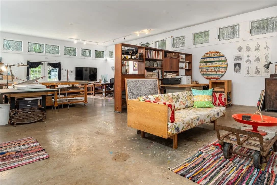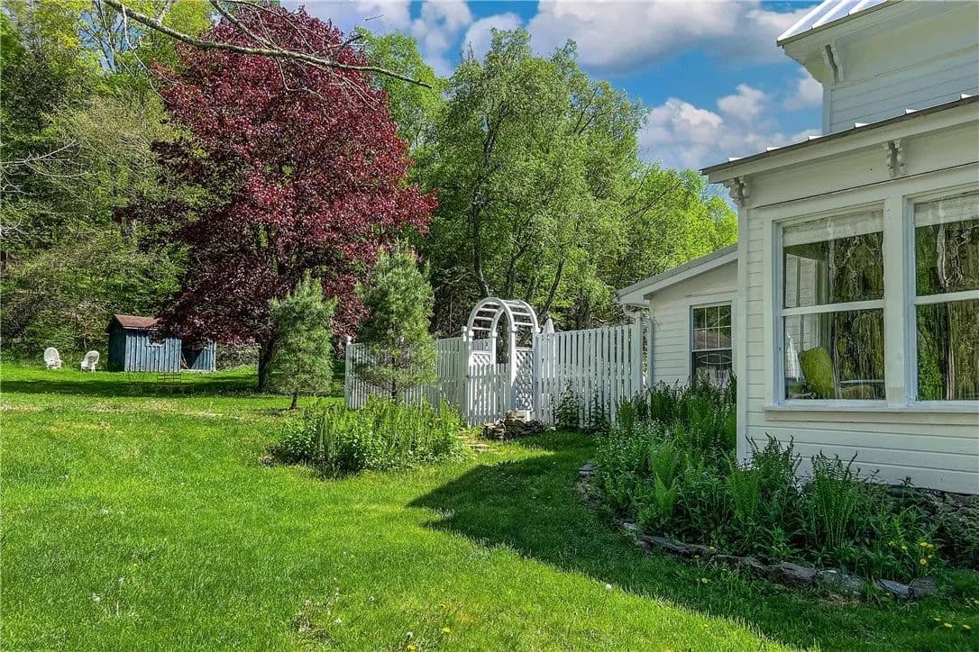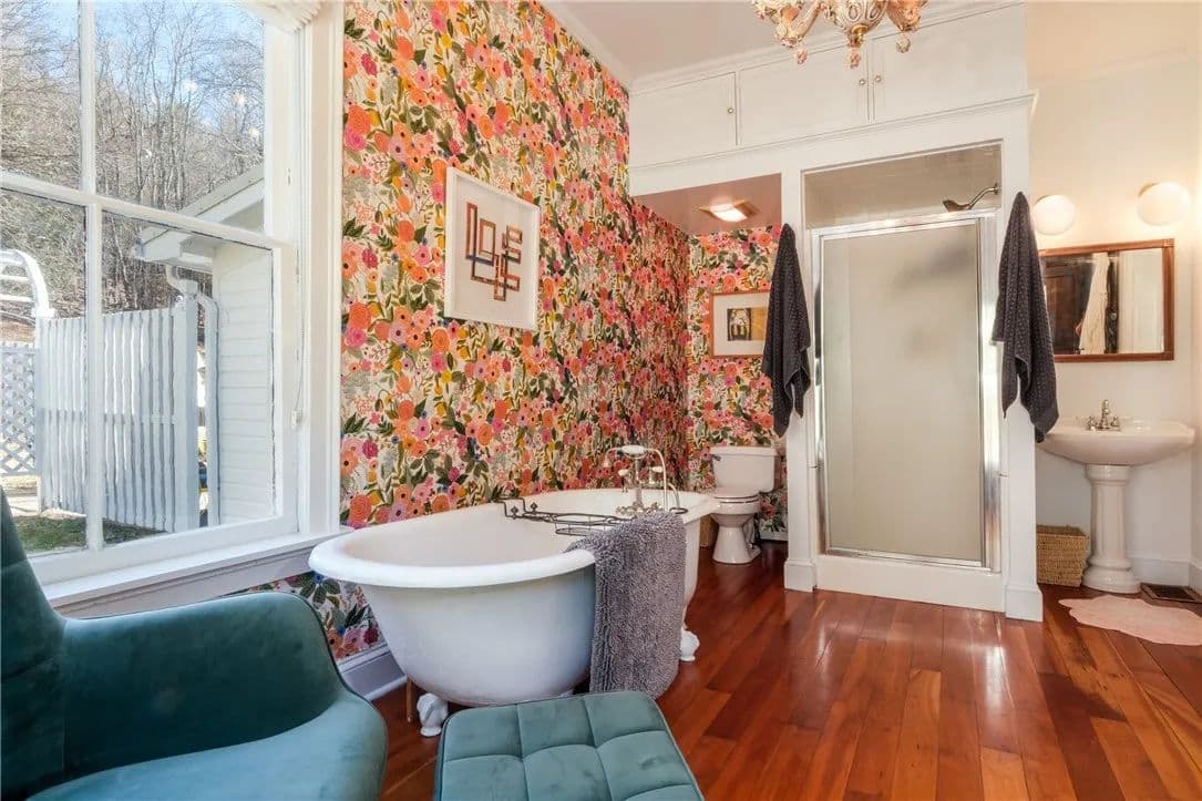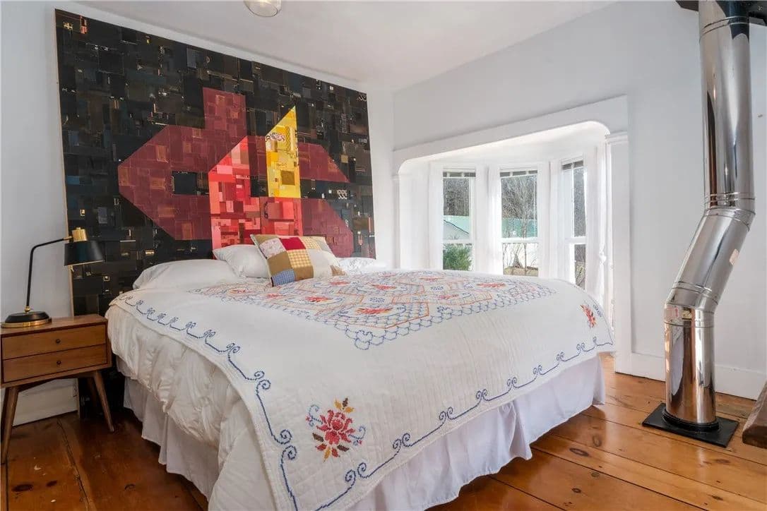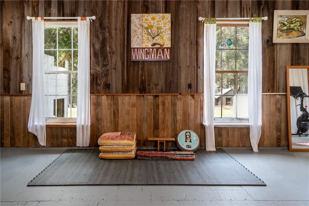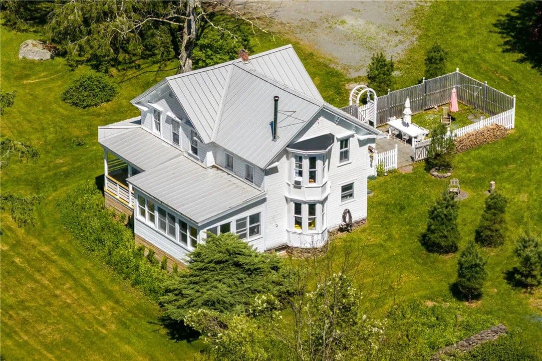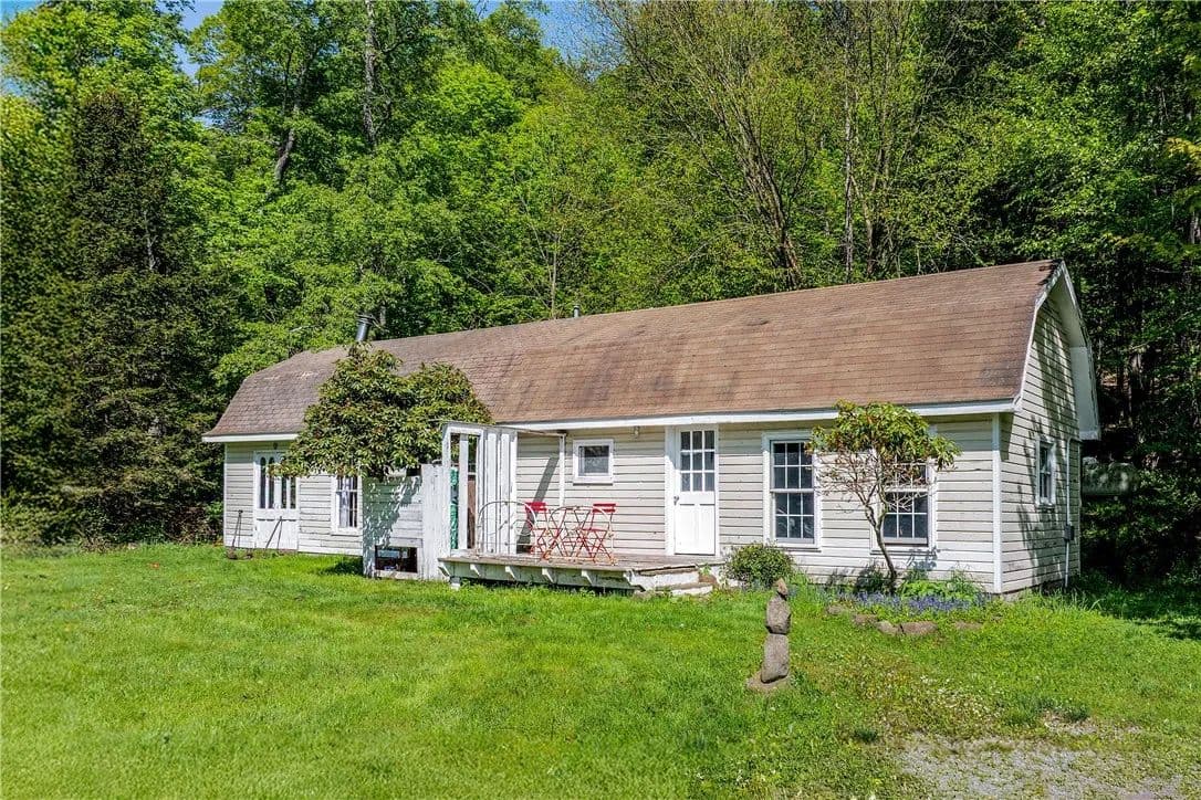 Main house (circa 1860), exudes timeless charm w grand 2-story design, covered rocking chair porch, and stunning period Victorian details like the striking 2-story bay windows. Anchoring the open-air kitchen, these windows light the space, reflecting off cherrywood floors. Attached glassed-in summer room makes a wonderful family room. A modern kitchen w large center island for advanced culinary creations & easy entertaining. A new Jotul wood-burning stove. A convenient half-bath, and a mud-room/pantry which opens onto a fenced stone patio.1st floor bedroom w 3 windows, plus a private palatial lavatory w arched-glass windows & clawfoot tub. Classic center-hall stairs secured by a robust yet elegant carved baluster to 2nd floor’s 3 additional bedrooms (one w hidden stained-glass pocket door) and nice-sized central full bath. Custom-made 30x70 art studio, a haven for creativity, w full electrical, a wood stove, a workshop area, a full bath, and a kitchenette. High ceilings, open floorplan and smooth radiant heat concrete floor, and even a roll up door in the back. The charming guest cottage, w sloped Gambrel roof & clapboard siding offers a single bedroom w its own full bath, and kitchen space. 2nd half of the cottage is currently workout space – think yoga, meditation, TRX and Peloton – wrapped in walls of reclaimed barn wood.