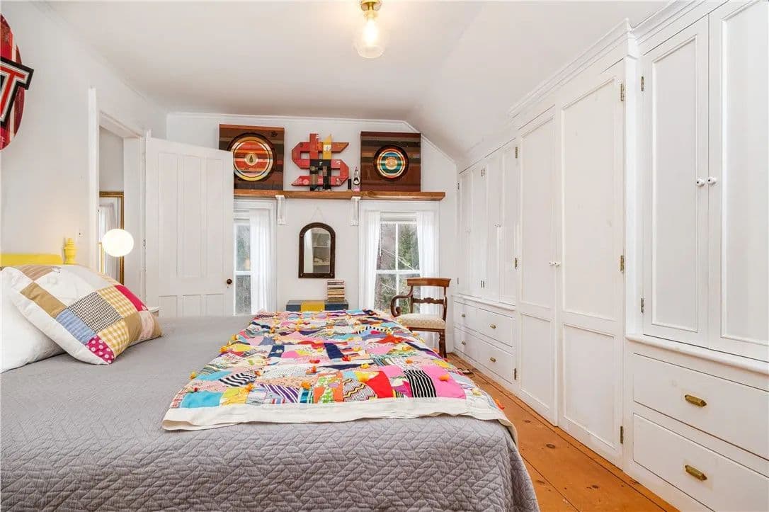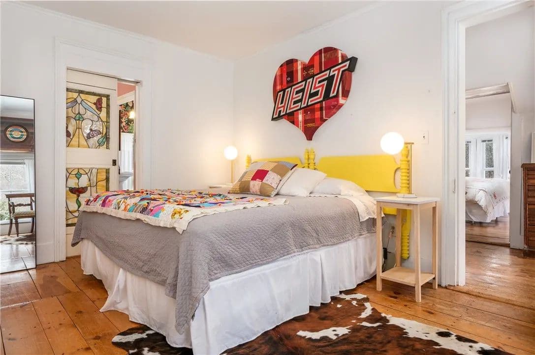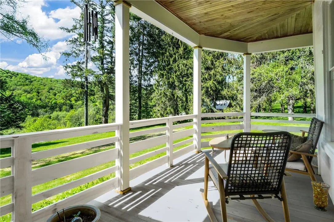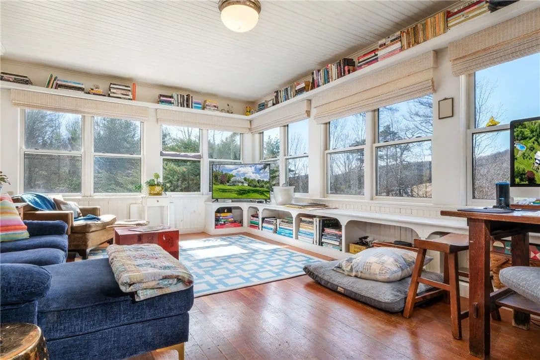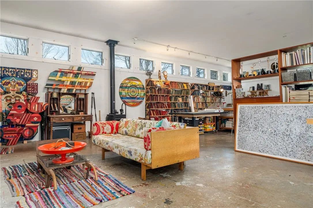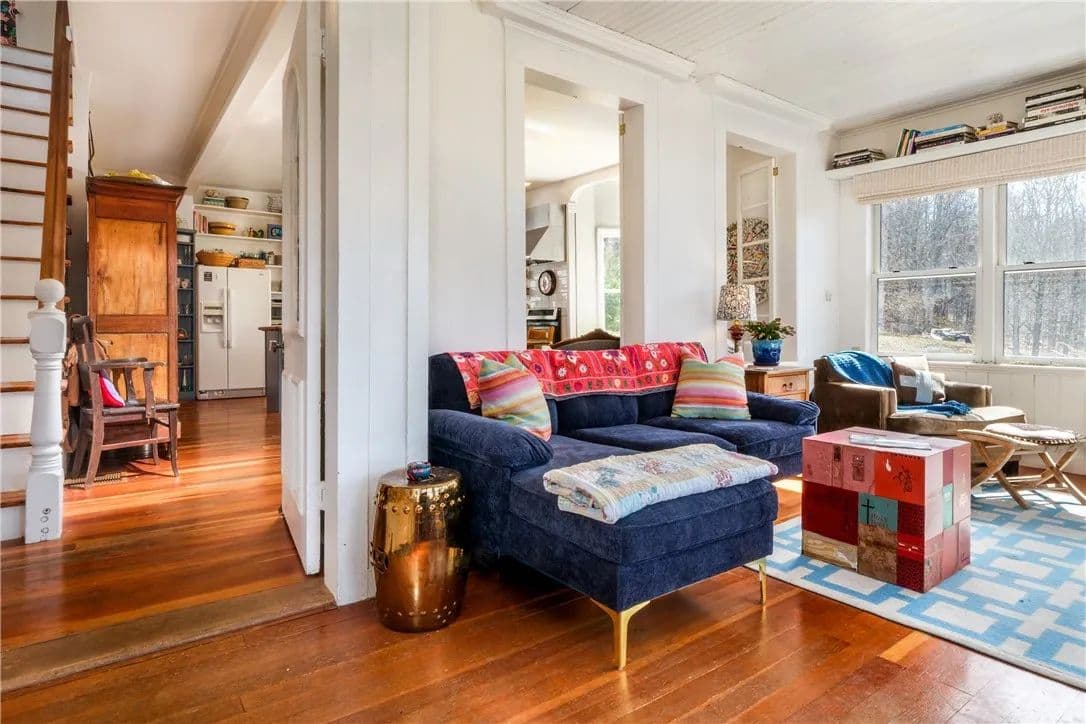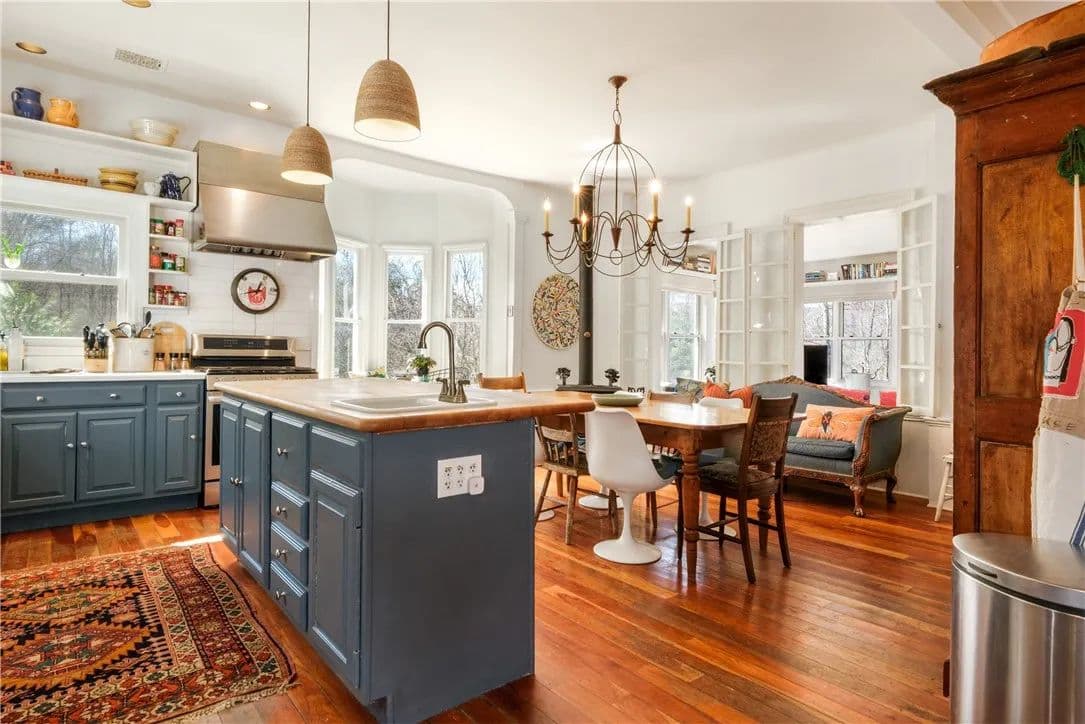 Main house (circa 1860), exudes timeless charm w grand 2-story design, covered rocking chair porch, and stunning period Victorian details like the striking 2-story bay windows. Anchoring the open-air kitchen, these windows light the space, reflecting off cherrywood floors. Attached glassed-in summer room makes a wonderful family room. A modern kitchen w large center island for advanced culinary creations & easy entertaining. A new Jotul wood-burning stove. A convenient half-bath, and a mud-room/pantry which opens onto a fenced stone patio.1st floor bedroom w 3 windows, plus a private palatial lavatory w arched-glass windows & clawfoot tub. Classic center-hall stairs secured by a robust yet elegant carved baluster to 2nd floor’s 3 additional bedrooms (one w hidden stained-glass pocket door) and nice-sized central full bath. Custom-made 30x70 art studio, a haven for creativity, w full electrical, a wood stove, a workshop area, a full bath, and a kitchenette. High ceilings, open floorplan and smooth radiant heat concrete floor, and even a roll up door in the back. The charming guest cottage, w sloped Gambrel roof & clapboard siding offers a single bedroom w its own full bath, and kitchen space. 2nd half of the cottage is currently workout space – think yoga, meditation, TRX and Peloton – wrapped in walls of reclaimed barn wood.