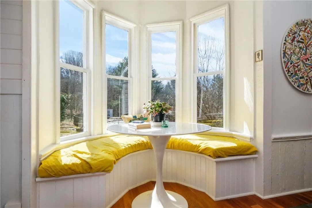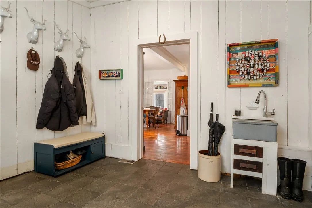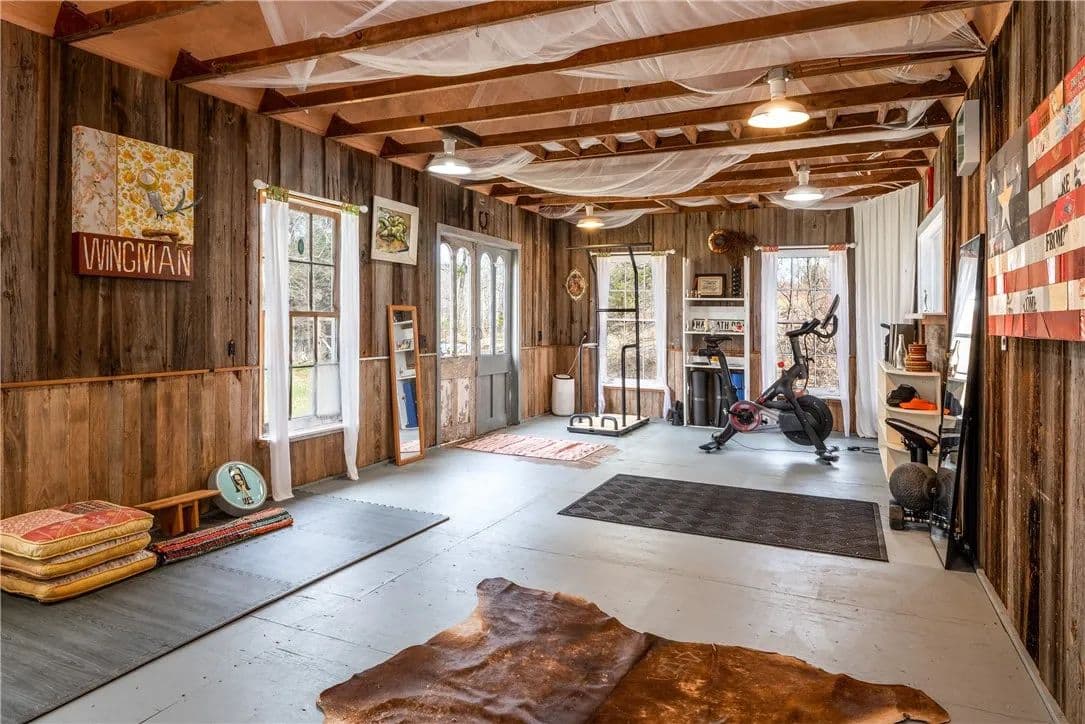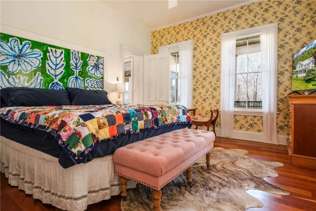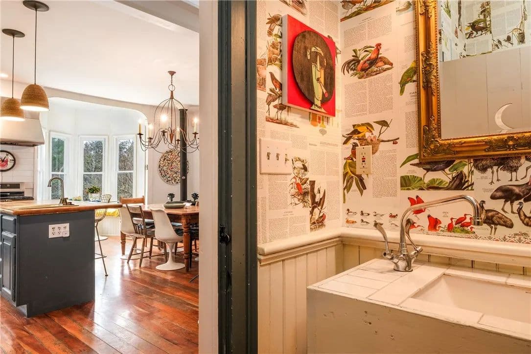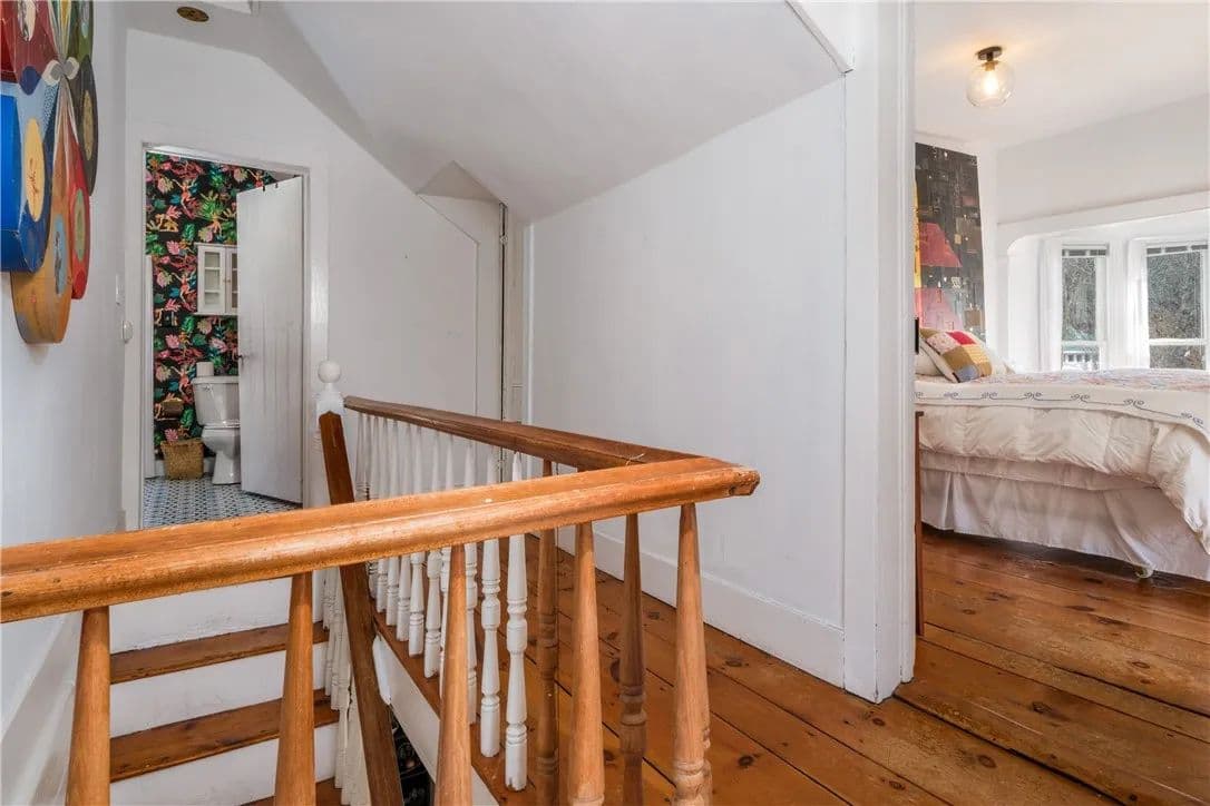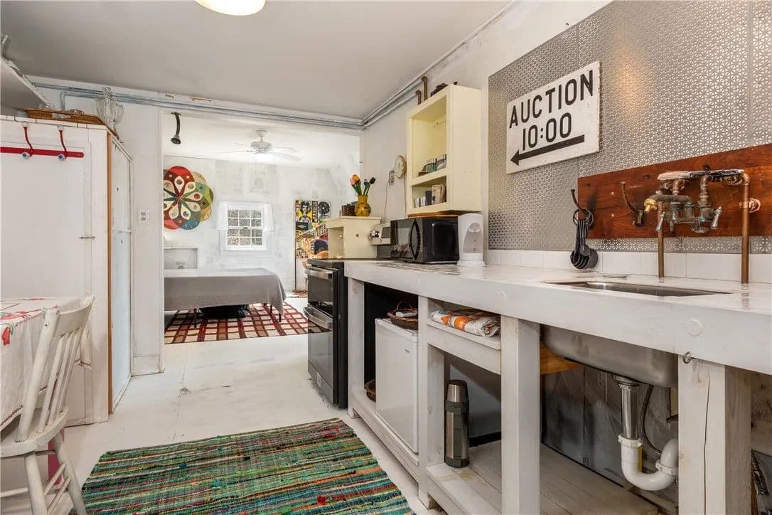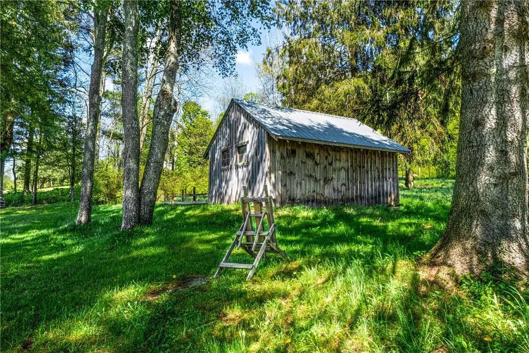 Main house (circa 1860), exudes timeless charm w grand 2-story design, covered rocking chair porch, and stunning period Victorian details like the striking 2-story bay windows. Anchoring the open-air kitchen, these windows light the space, reflecting off cherrywood floors. Attached glassed-in summer room makes a wonderful family room. A modern kitchen w large center island for advanced culinary creations & easy entertaining. A new Jotul wood-burning stove. A convenient half-bath, and a mud-room/pantry which opens onto a fenced stone patio.1st floor bedroom w 3 windows, plus a private palatial lavatory w arched-glass windows & clawfoot tub. Classic center-hall stairs secured by a robust yet elegant carved baluster to 2nd floor’s 3 additional bedrooms (one w hidden stained-glass pocket door) and nice-sized central full bath. Custom-made 30x70 art studio, a haven for creativity, w full electrical, a wood stove, a workshop area, a full bath, and a kitchenette. High ceilings, open floorplan and smooth radiant heat concrete floor, and even a roll up door in the back. The charming guest cottage, w sloped Gambrel roof & clapboard siding offers a single bedroom w its own full bath, and kitchen space. 2nd half of the cottage is currently workout space – think yoga, meditation, TRX and Peloton – wrapped in walls of reclaimed barn wood.