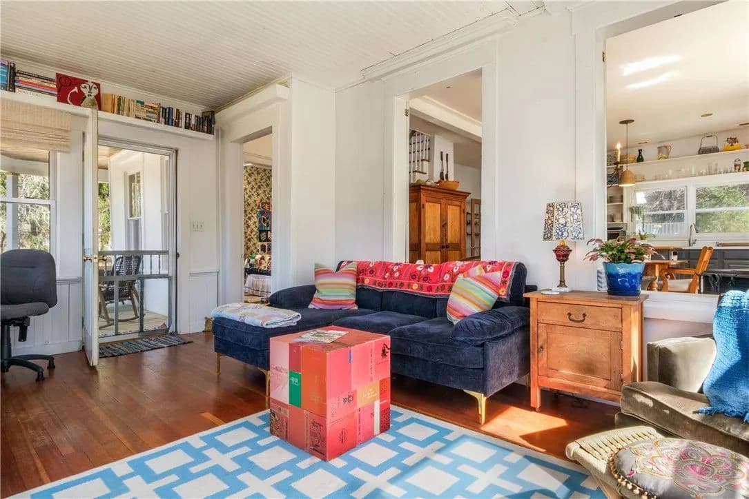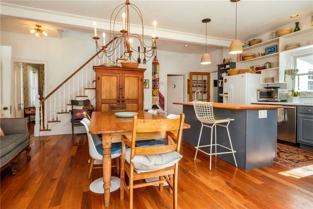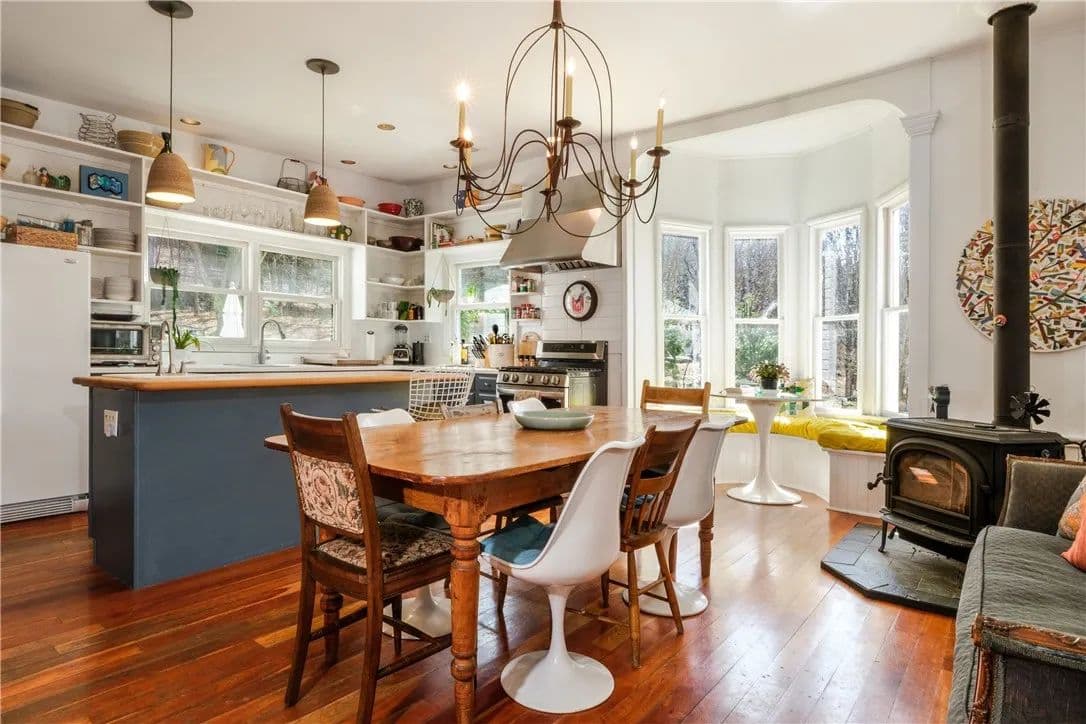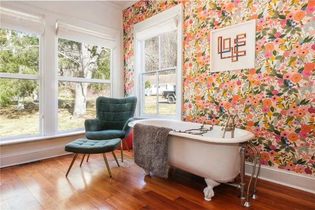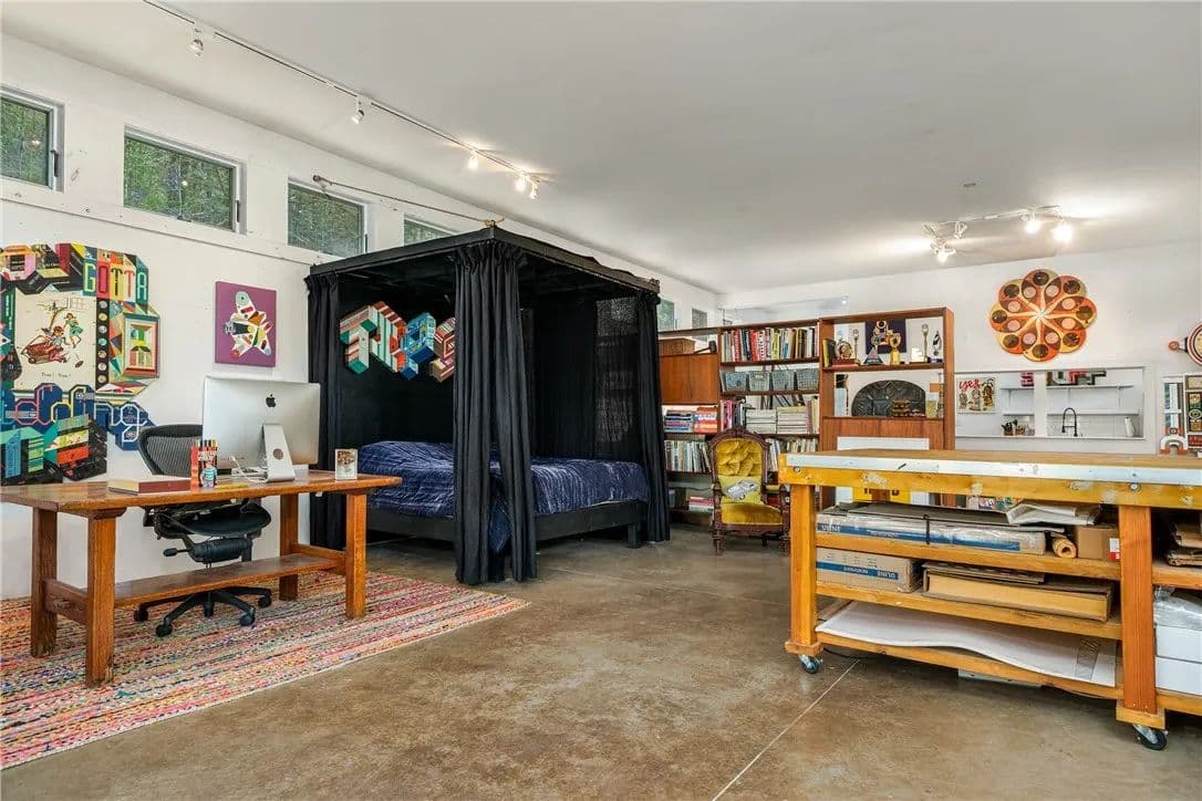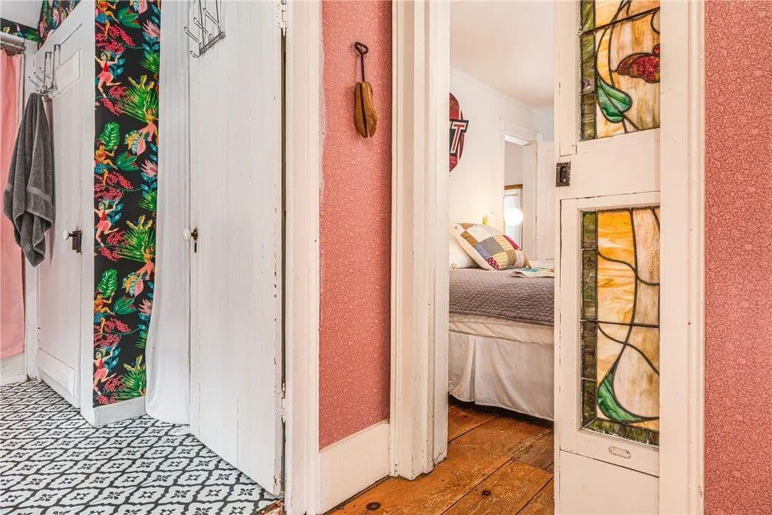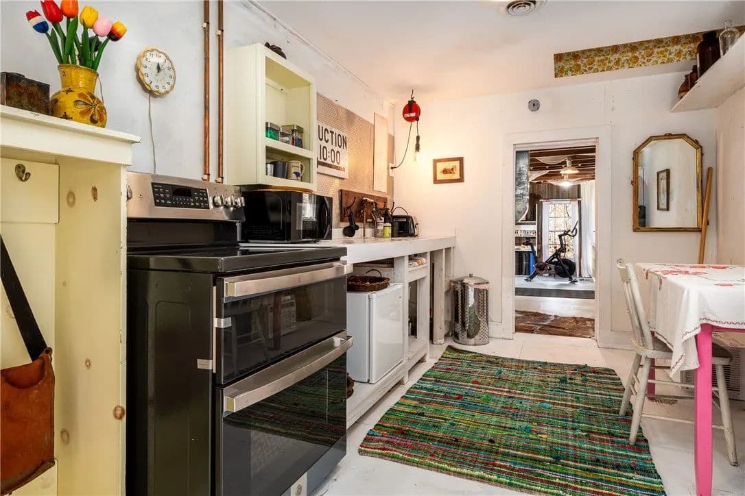 Main house (circa 1860), exudes timeless charm w grand 2-story design, covered rocking chair porch, and stunning period Victorian details like the striking 2-story bay windows. Anchoring the open-air kitchen, these windows light the space, reflecting off cherrywood floors. Attached glassed-in summer room makes a wonderful family room. A modern kitchen w large center island for advanced culinary creations & easy entertaining. A new Jotul wood-burning stove. A convenient half-bath, and a mud-room/pantry which opens onto a fenced stone patio.1st floor bedroom w 3 windows, plus a private palatial lavatory w arched-glass windows & clawfoot tub. Classic center-hall stairs secured by a robust yet elegant carved baluster to 2nd floor’s 3 additional bedrooms (one w hidden stained-glass pocket door) and nice-sized central full bath. Custom-made 30x70 art studio, a haven for creativity, w full electrical, a wood stove, a workshop area, a full bath, and a kitchenette. High ceilings, open floorplan and smooth radiant heat concrete floor, and even a roll up door in the back. The charming guest cottage, w sloped Gambrel roof & clapboard siding offers a single bedroom w its own full bath, and kitchen space. 2nd half of the cottage is currently workout space – think yoga, meditation, TRX and Peloton – wrapped in walls of reclaimed barn wood.