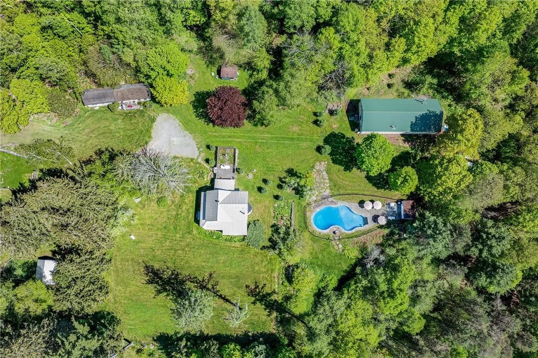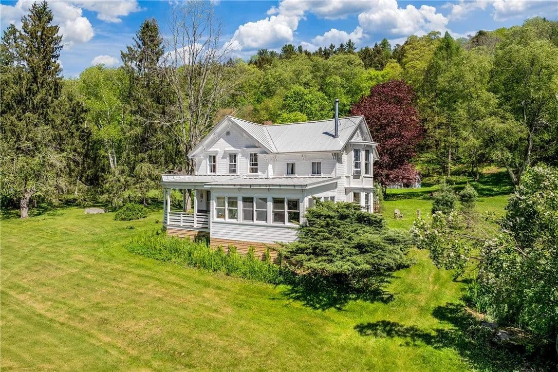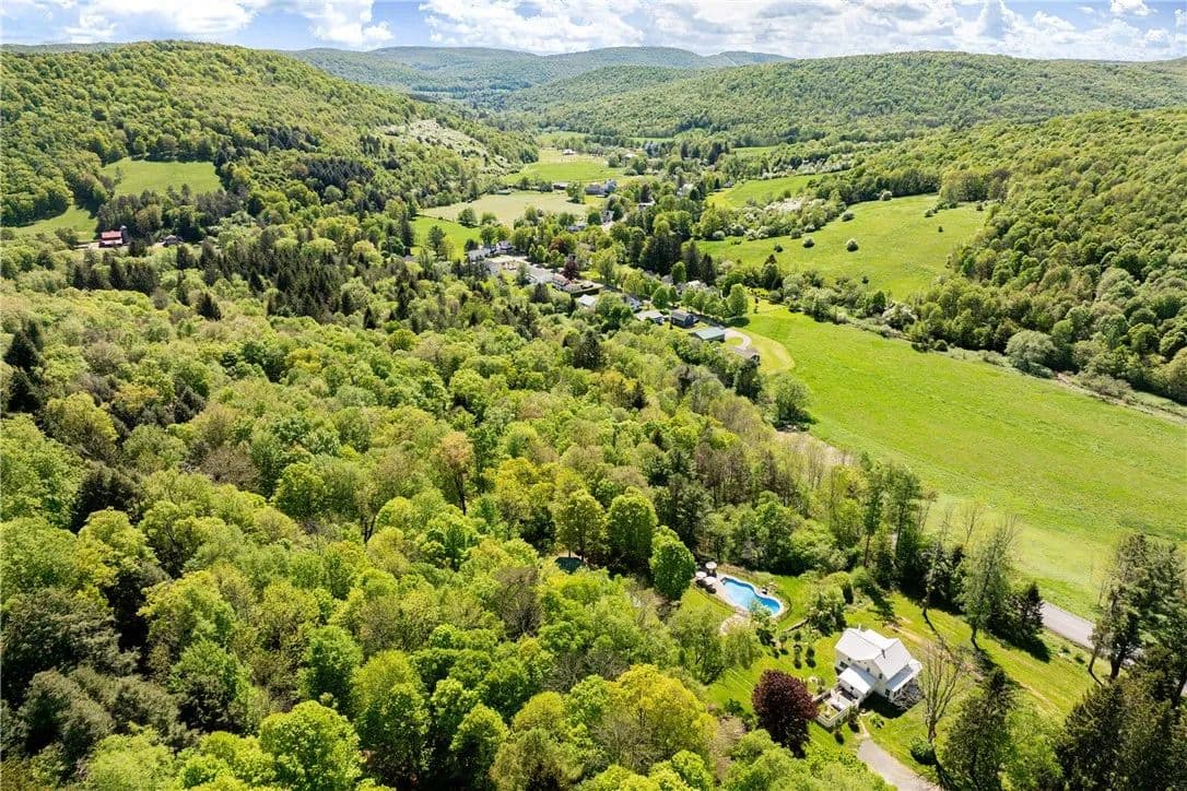 Imagine days creating in a private art studio, evenings surrounded by friends & family & warm summer afternoons poolside as hawks & eagles drift above.A live/work estate tailor-made for artists, entertainers, or anyone seeking a peaceful yet vibrant lifestyle. Walking distance to a picturesque village, this property offers country living w options --3 livable buildings, incl 1860 Classic American Farmhouse, a Gambrel-roofed Shotgun Guest House, and Modern 37x70 Art Studio (w ba & ktchn), on 15 acres of “Gin Hill” just outside Bovina Center NY.