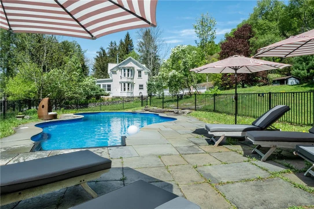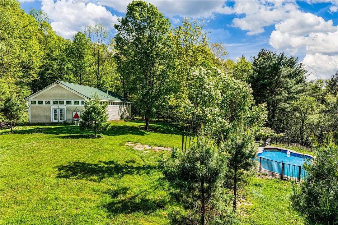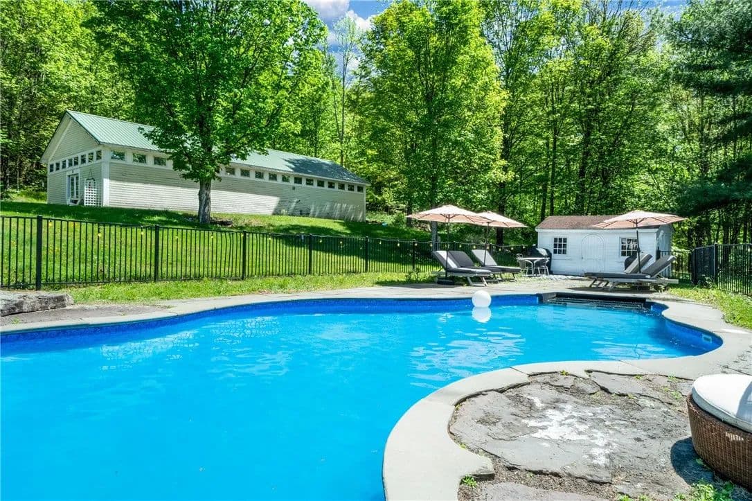Animal barn w paddock, and space for garden tractor. Vegetable garden w small greenhouse. Separate potting shed. Finally, the beautifully shaped swimming pool, w pool house & cozy sitting areas -- unwind and soak in the serene surroundings.Your enchanting retreat awaits—come and make it your own!