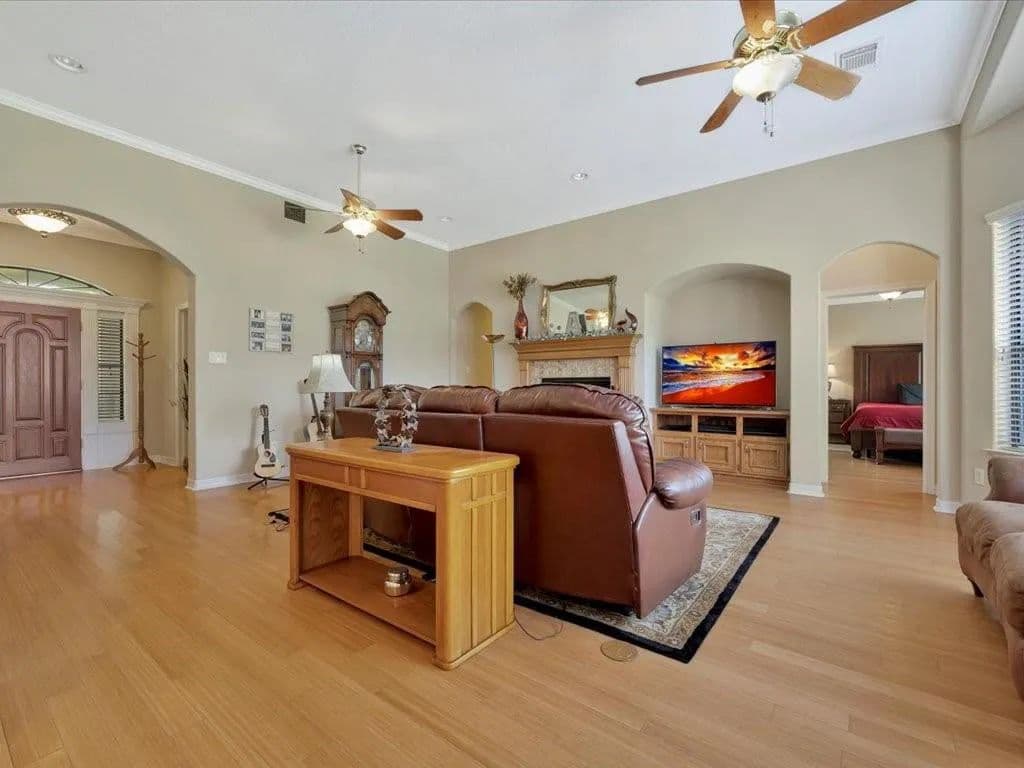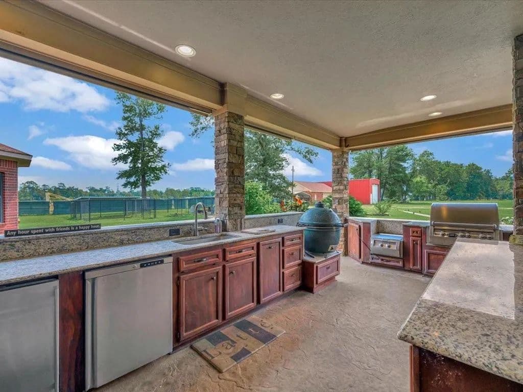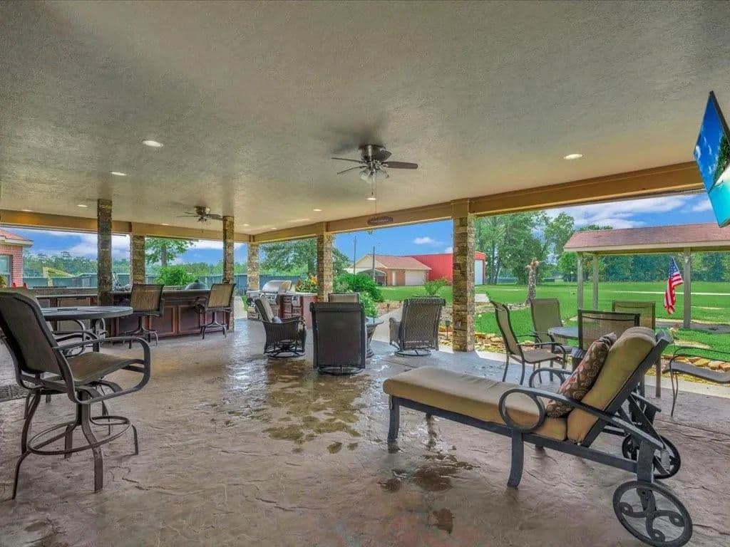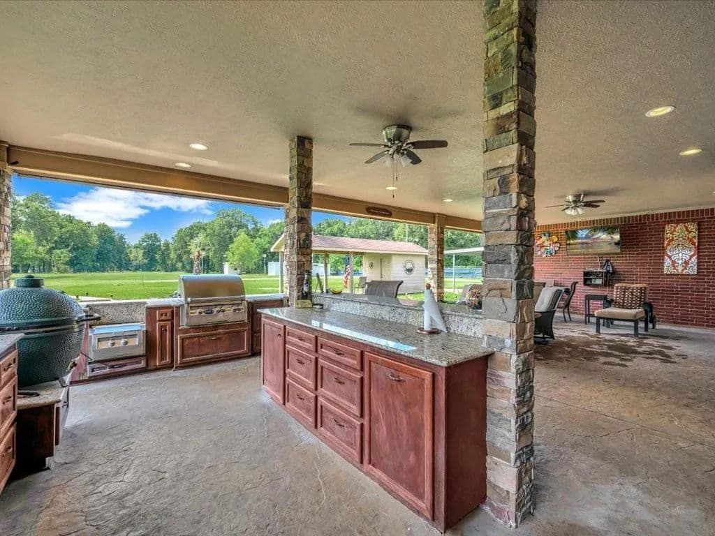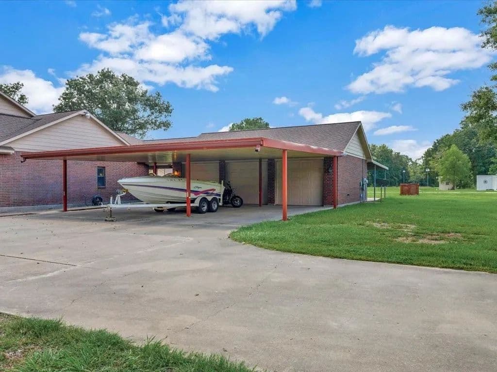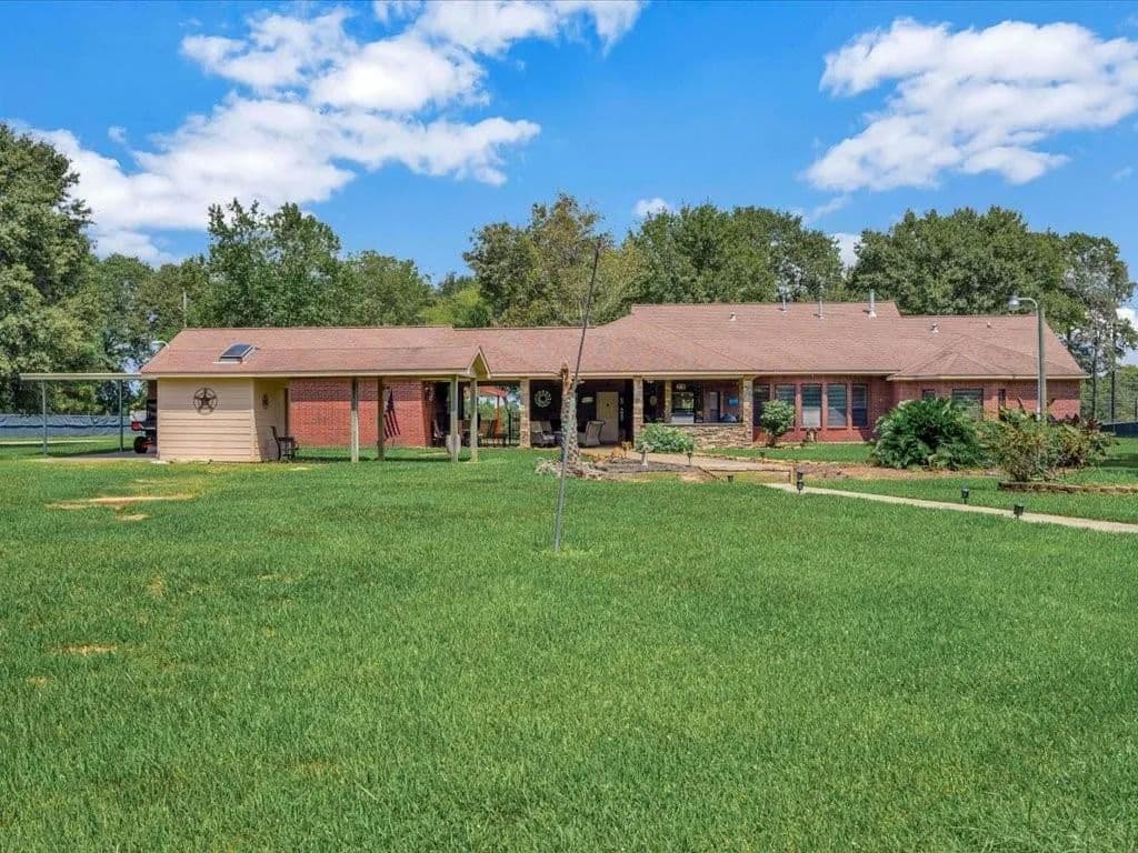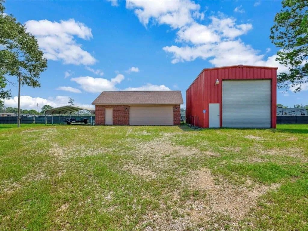 This property truly is a MUST SEE! So many amenities available. 3 Bedroom, plus Study, 3 Bath, all Brick home offering Bamboo & Tile flooring, high ceilings, Granite counters open to the family room, 3 bay windows to view wildlife in your back acreage. All stainless steel appliances and refrigerator stays! Large primary closet with build-ins & jetted tub in Primary bath. 3-car garage, Attached 3-car Carport, Golf Cart bay with attached Carport, TWO Additional Oversized 2 Car Garage/Workshops behind the house and a Climate Controlled RV storage building. HUGE back patio with fully-loaded outdoor kitchen! ALL THIS ON 10 PRIME ACRES, partially wooded. This beautiful land/home package is located in a growing area with easy access to Beltway 8 & US-90! Come check out this One-of-a-Kind property today!