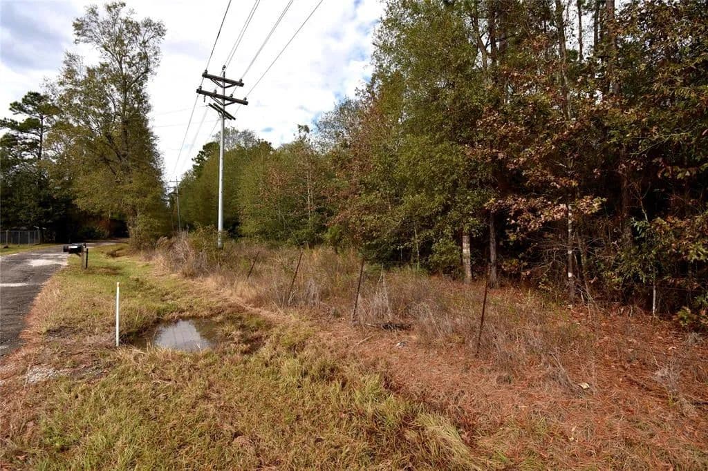 15.7 Acres of Wooded Land which is fairly level Portions of the property have tall mature trees and portions of regrowth vegetation/trees after foresting appearing to be 10+ years old. Lots of frontage on CR 2172 and only short distance to FM 787 and close proximity to Cleveland/North Houston. Large Forested tracts behind this property could make for great hunting. There are 2 or more abandoned structures on this property. They are in a near state of collapse and need to be torn down (do not enter those structures). There is a powerline easement across a portion of the front of this property near CR 2172.