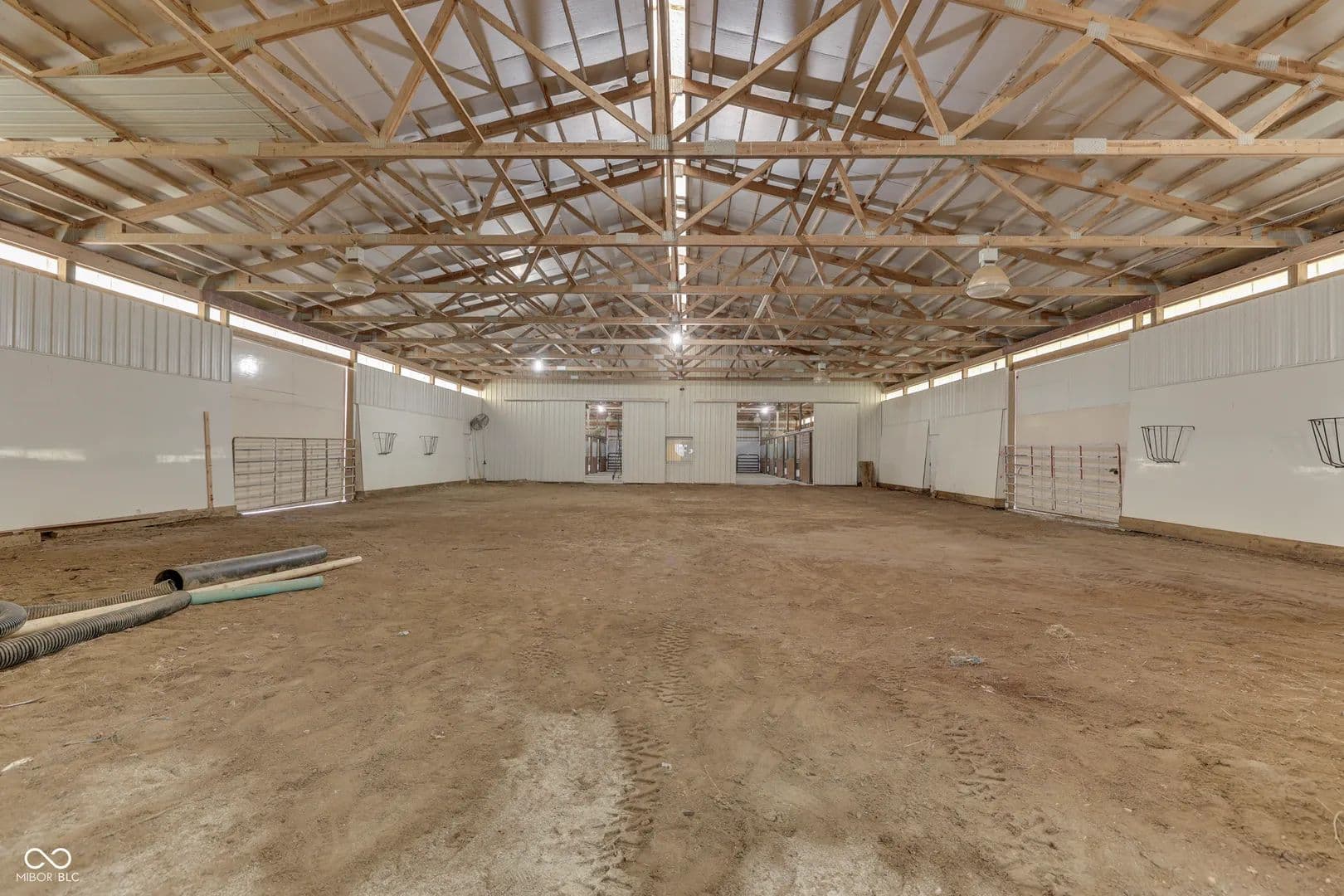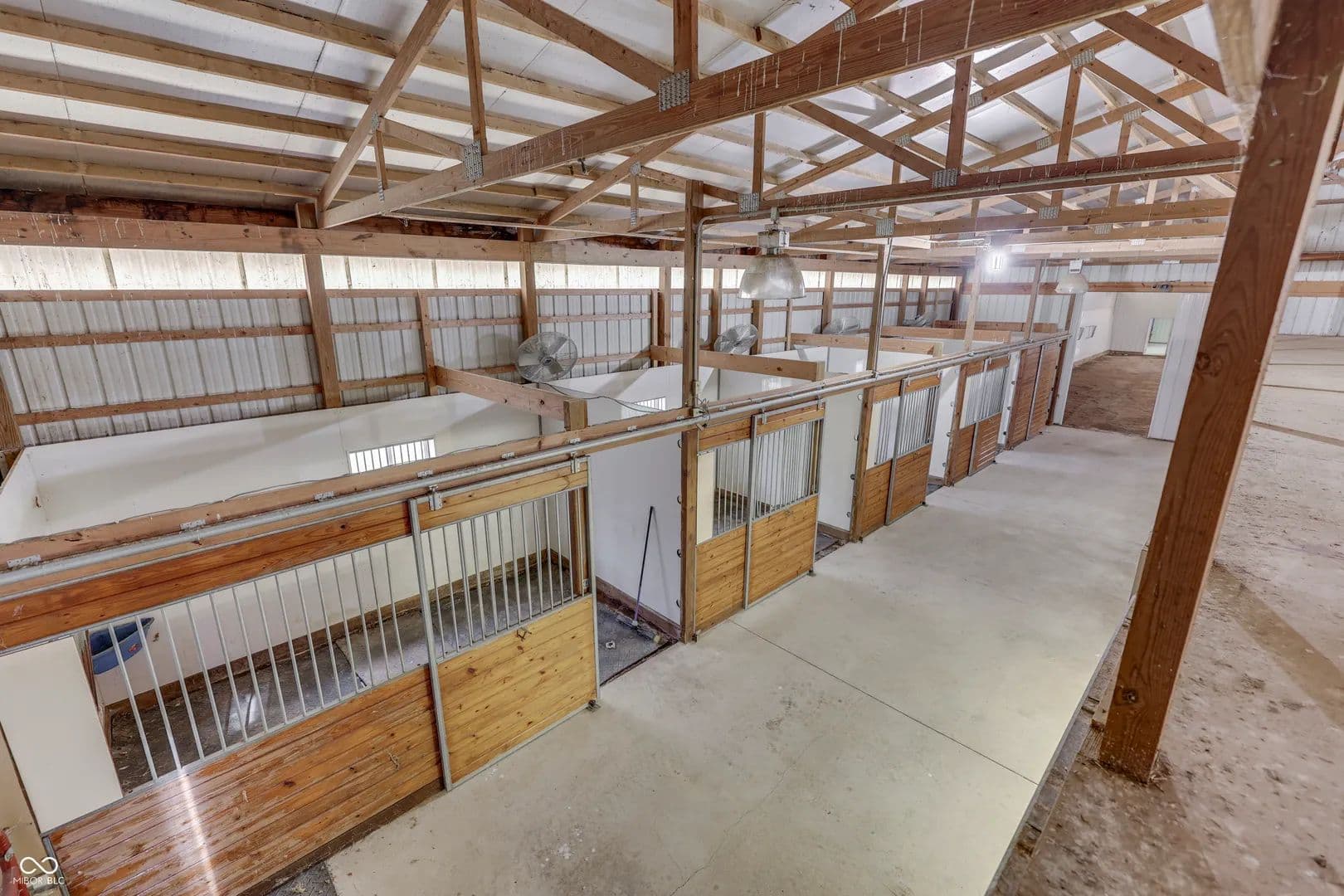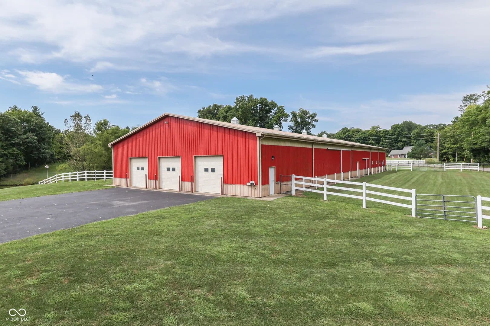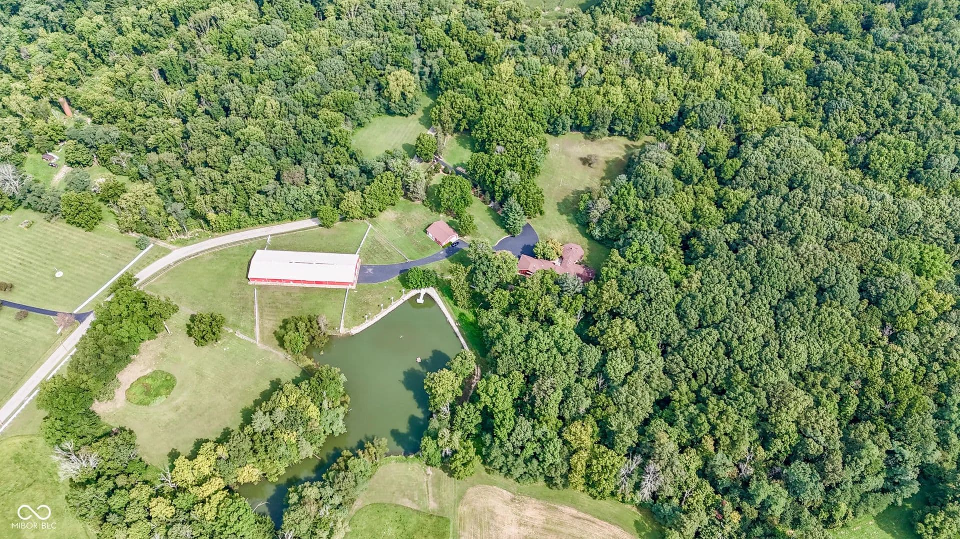Nestled on over 33 acres of breathtaking countryside, this expansive farm residence offers a rare opportunity for you to own property that features 5,000+ square foot ranch home, located on beautiful rolling topography. 1.5 acre pond with peaceful water views. Exceptional 10 stall horse barn fully equipped with indoor arena, birthing stall, giant hayloft, tack room, wash rack room, AND Stablehand's ensuite. 1,800 sq. ft. heated outbuilding, as well as horse pastures which makes this farm a true escape into tranquility! This property lends itself to a variety of uses whether you're looking for a serene retreat, aspiring to own a farm, or embracing an equestrian lifestyle with all the amenities, or countless creative possibilities inspired by your imagination!! The home is designed with both comfort and entertaining in mind. You will be greeted by a spacious foyer that leads into the unique hearth room created for overall atmosphere and camaraderie. The primary suite is a retreat unto itself with separate walk-in closets, and separate cedar closets for storing. The remaining bedrooms could serve the family, guests, office, or hobby rooms. The basement family room with fireplace provides additional living space and a perfect spot for movie nights, or simply relaxing. Owning this home and driving up your picturesque, tree-lined driveway will feel like owning your own slice of paradise! It is a great location just minutes from Brown County, Greenwood, and I69. Seller is willing to divide land into separate parcels w/reasonable offer. Schedule your showing today!!